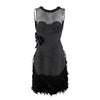 to be discovered by customers with The Compact dress from ‘00, an explosion of femininity with feathers and rhinestone embellishment, the contrast between wool and mesh texture, pleated panel and corset design.
