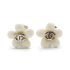 Chanel CC Rhinestone Logo Four Leaf Clover Clip Earrings