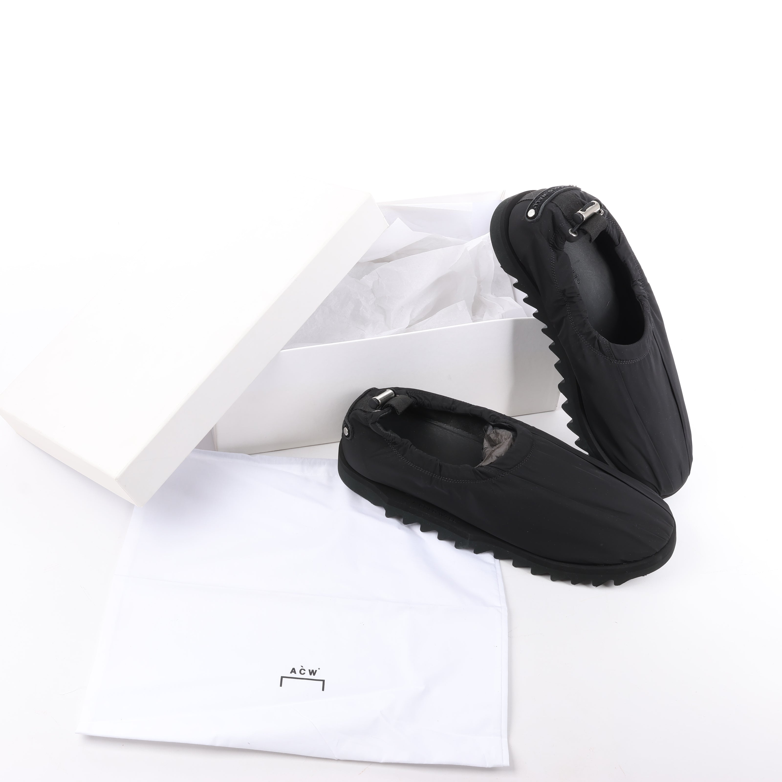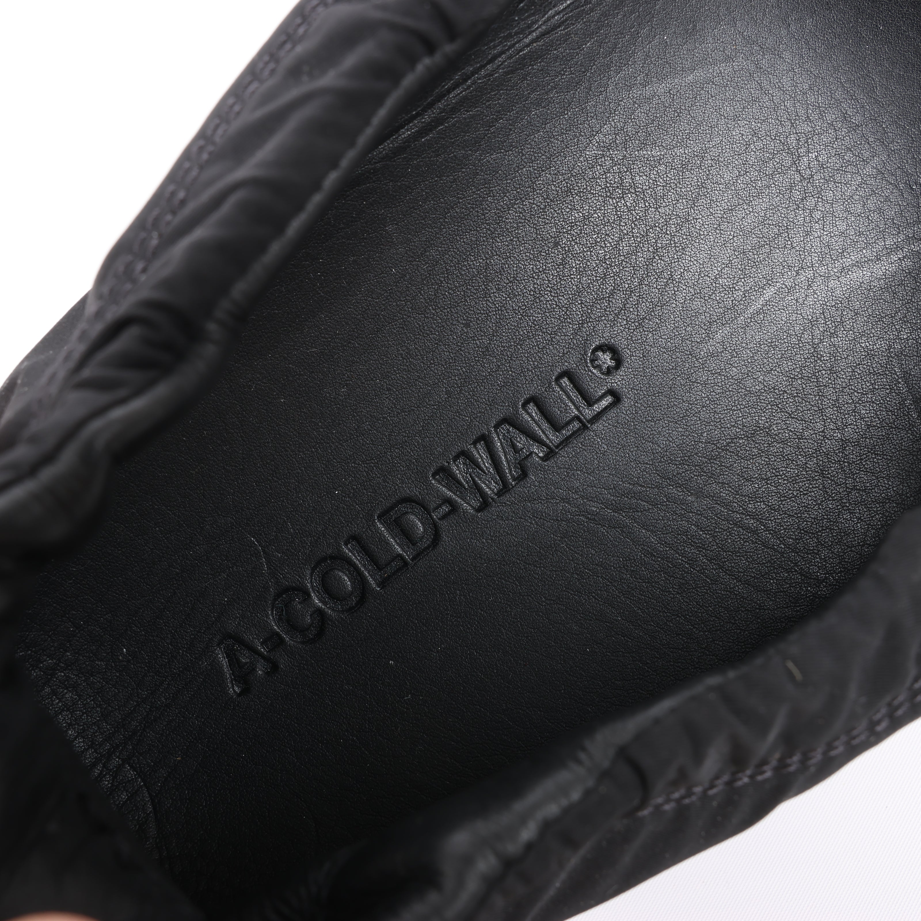 Brand: A-COLD-WALL*Size: EU 45Condition: Never wornCondition Details: -Main Colour: BlackColours: -Main material: Polymers (Nylon)Materials: LeatherProduct Code: -Manufactured In: ItalyComes With: Dustbag, Box