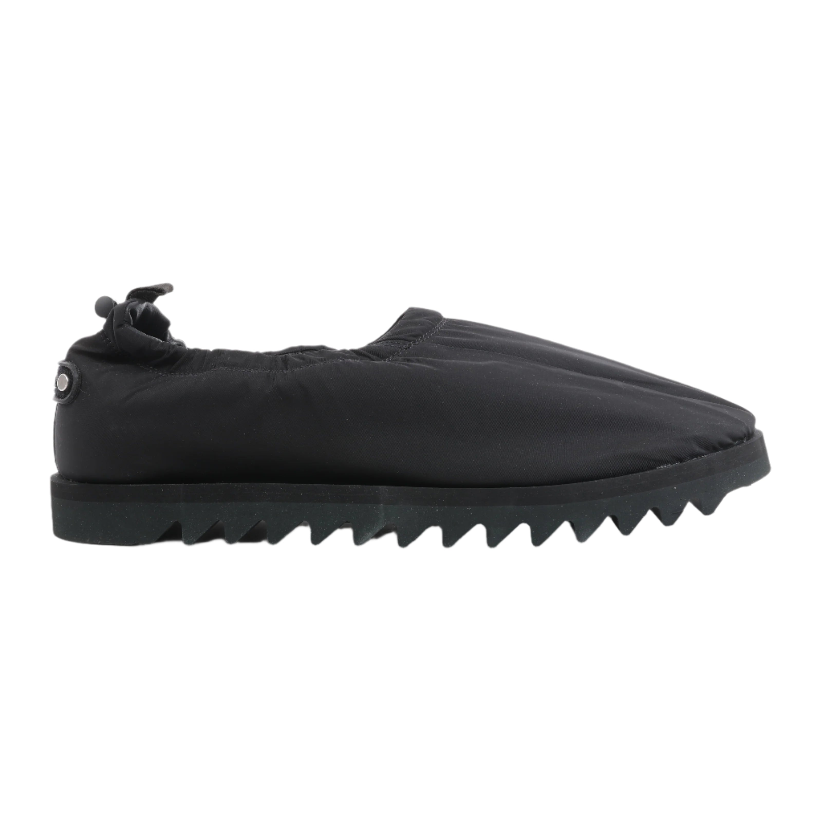 A-COLD-WALL\* drawstring slip-on sneakers in black blend utilitarian design with avant-garde edge. Featuring a padded upper and rugged serrated sole, these size 45 EU shoes offer bold, modern streetwear appeal with effortless comfort.