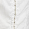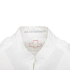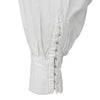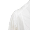 White cotton shirt by A.F. Vandevorst with band collar, pleated front, hook-button closure, and gathered pleated sleeves with cuffs at the hem.