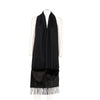 A.N.G.E.L.O. Vintage cult 2020s black cashmere blend scarf. Black mink patch pocket hem with fringes.