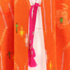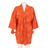 A.N.G.E.L.O. Vintage Cult orange wool japanese upcycled kimono with floral pattern. Shawl collar and 3/4 sleeves. Fuchsia inner drawstring. The item has been shortened.