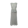 This Alberta Ferretti top and skirt set is made of lightweight and soft virgin wool. The flowy yet fitted long skirt and boatneck, sleeveless top offer a muted soft grey color. Perfect for a day wear with its comfortable and high-quality material.