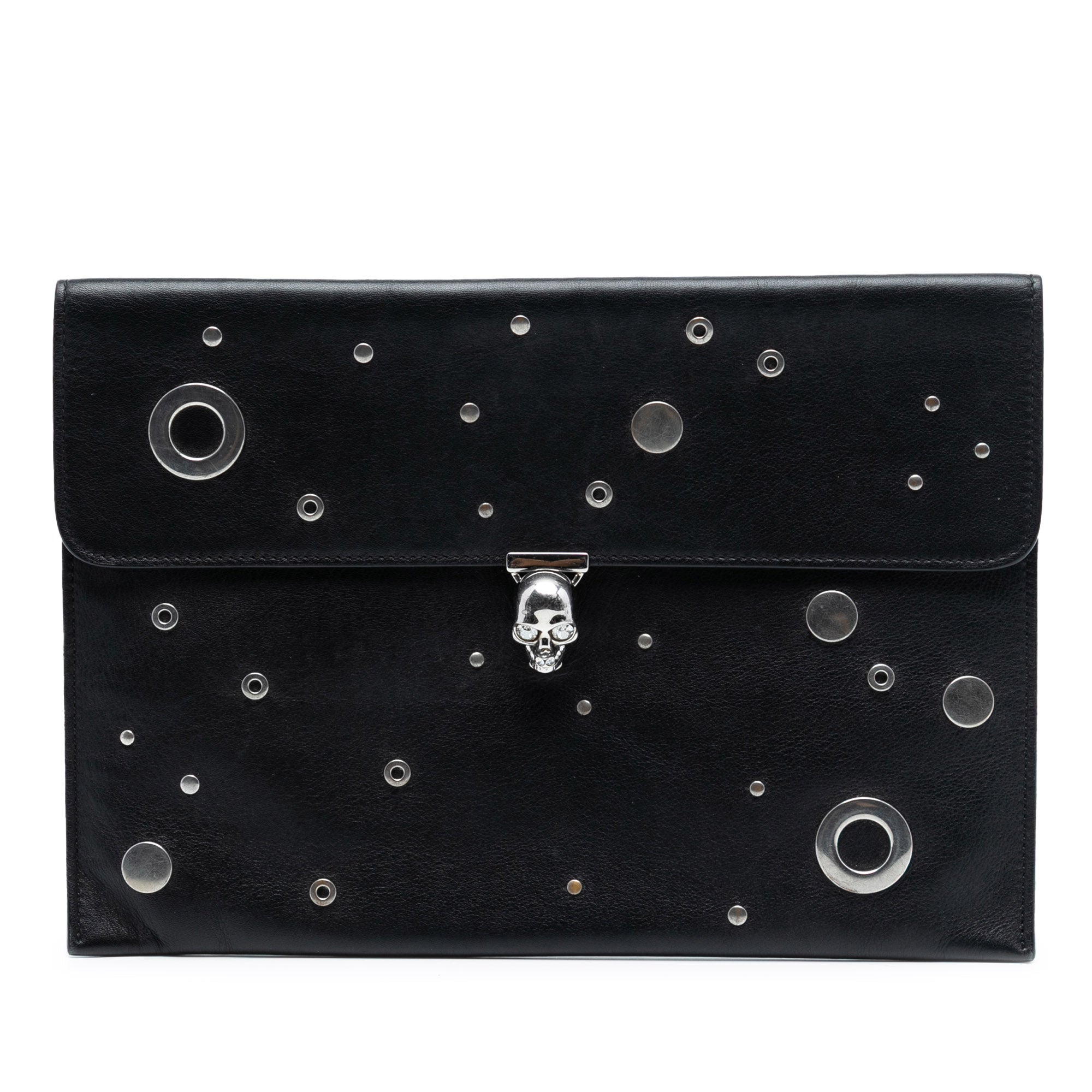 Alexander McQueen Leather Grommet Studded Skull Clutch