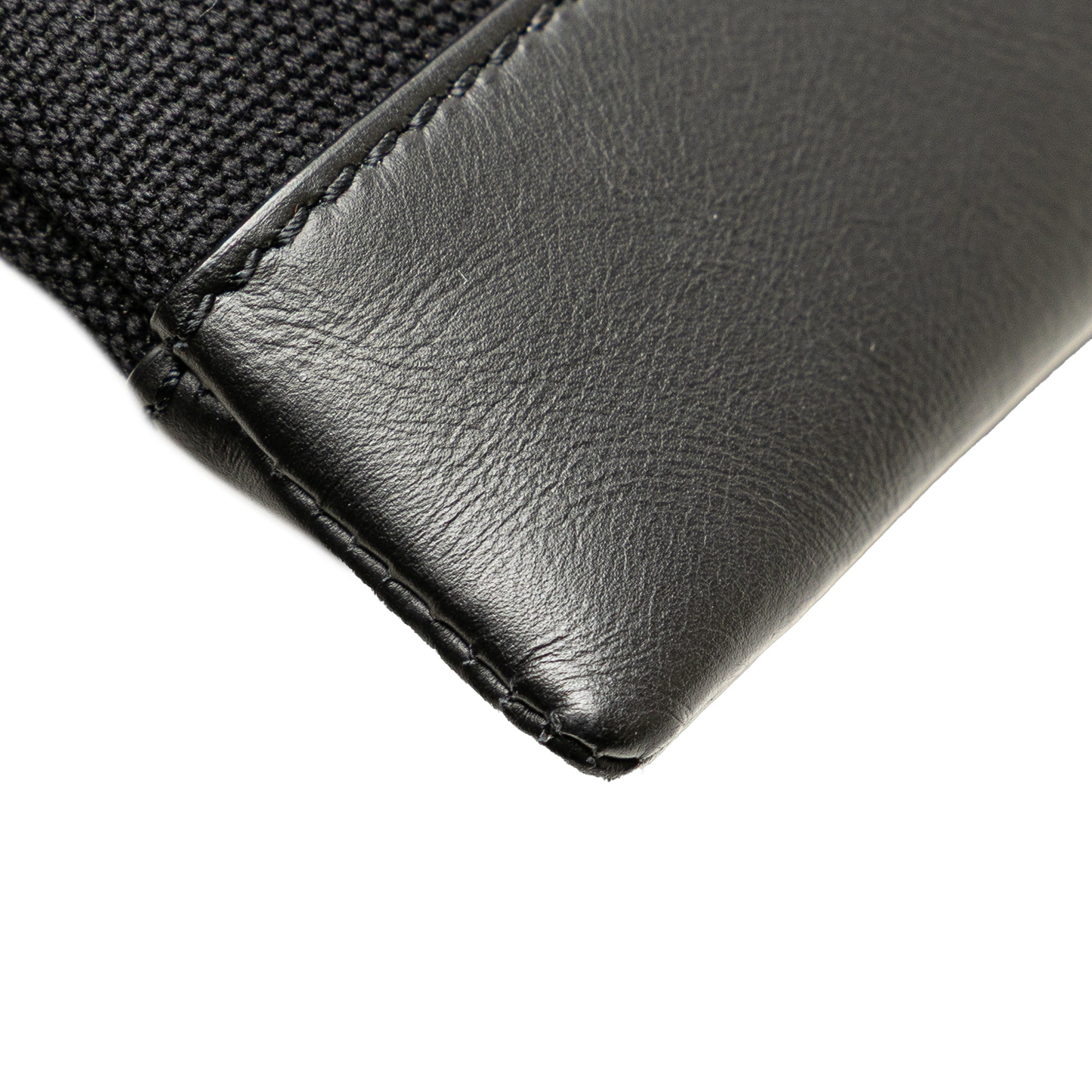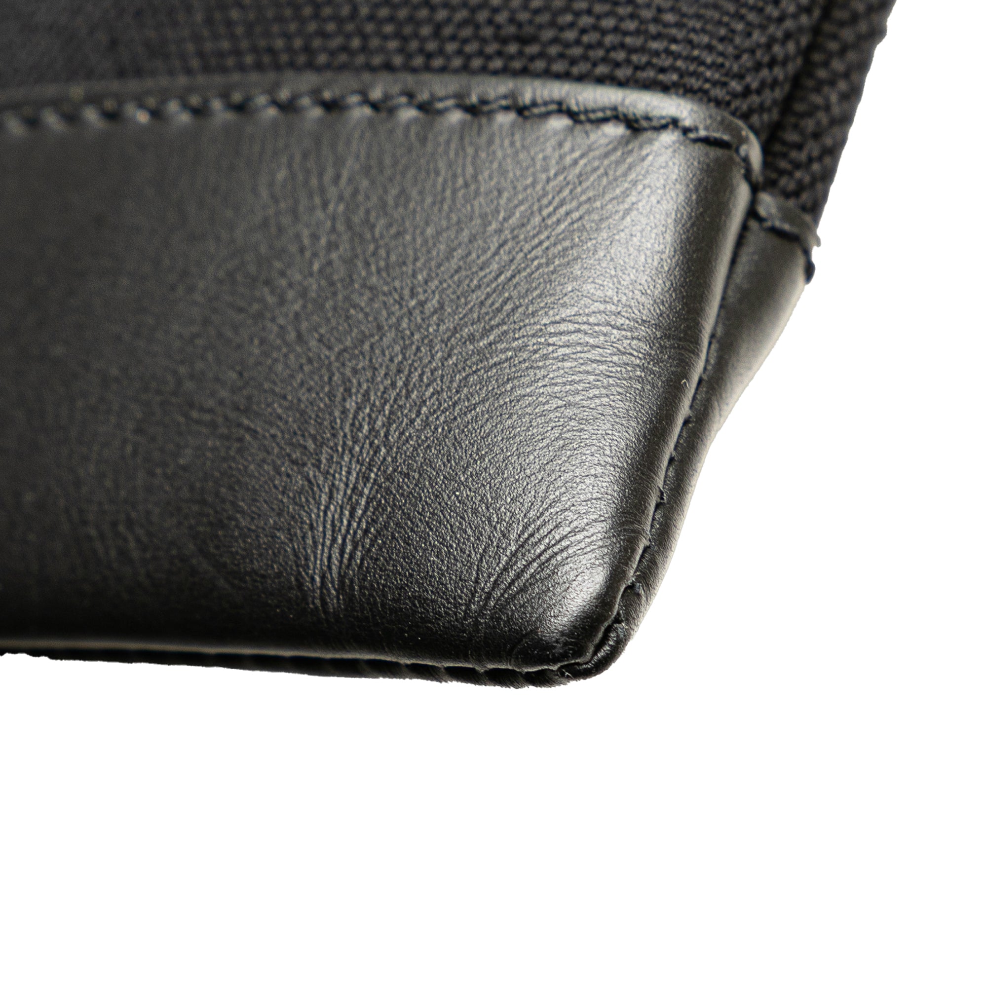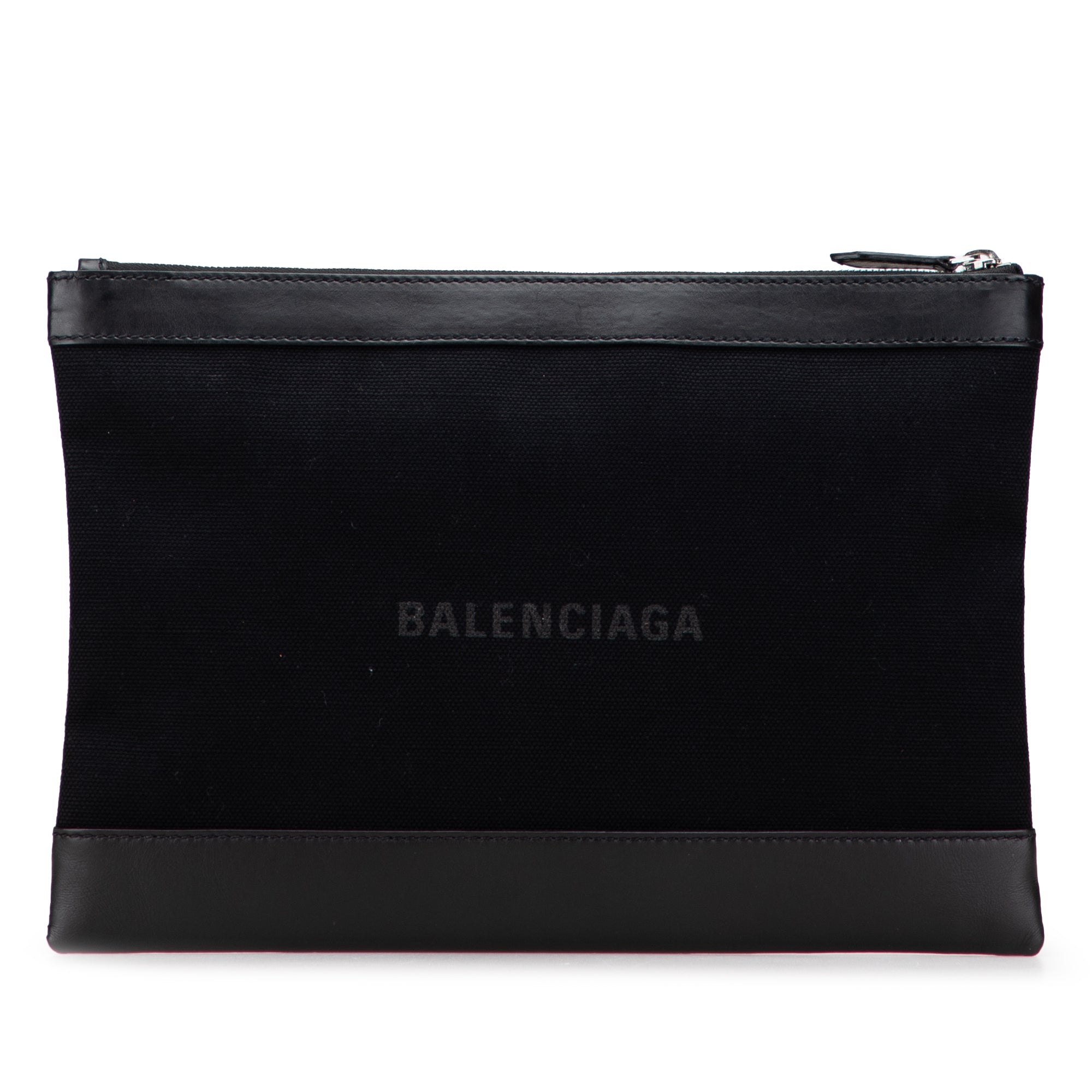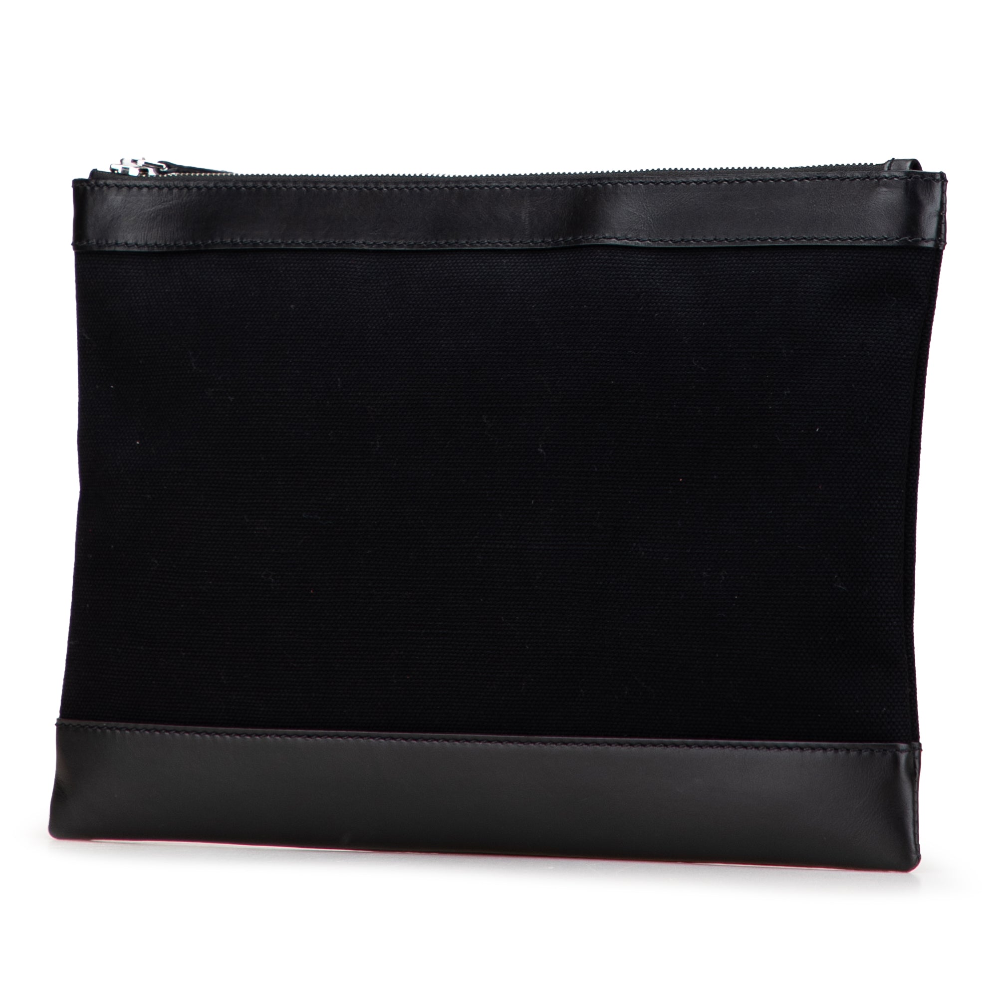 The Navy Clip M features a canvas body with leather trim, a top zip closure, and an interior slip pocket. Retail Price: 880.00
