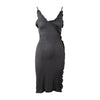 This two-piece Balenciaga set is the ideal wear for comfort and style. Crafted from a blend of silk and linen, the set features a fitted sleeveless dress and a wrap cardigan with ruffle details. The faded dark grey hue is perfect for a sophisticated yet casual look. Perfect as a loungewear.