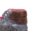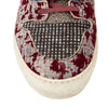 Elevate your shoe game with Balenciaga's High Top Sneakers. A unique mix of suede, fabric, and leather patterns in dark maroon with grey accents create a subtle yet statement-making silhouette.
