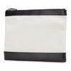 The Navy Clip clutch features a canvas body with leather trim, and a top zip closure. Inclusion: Dust bag. Retail Price: 595.00