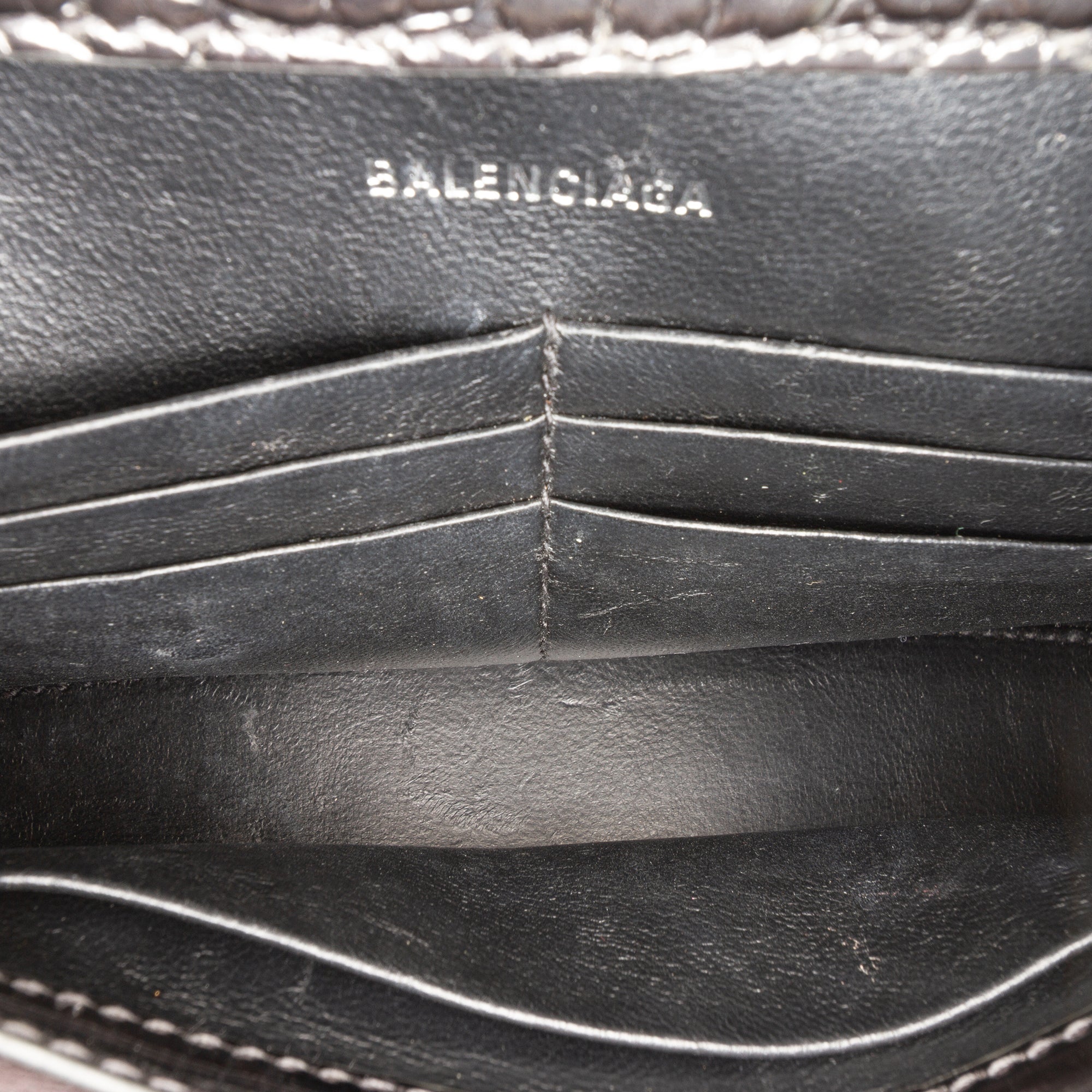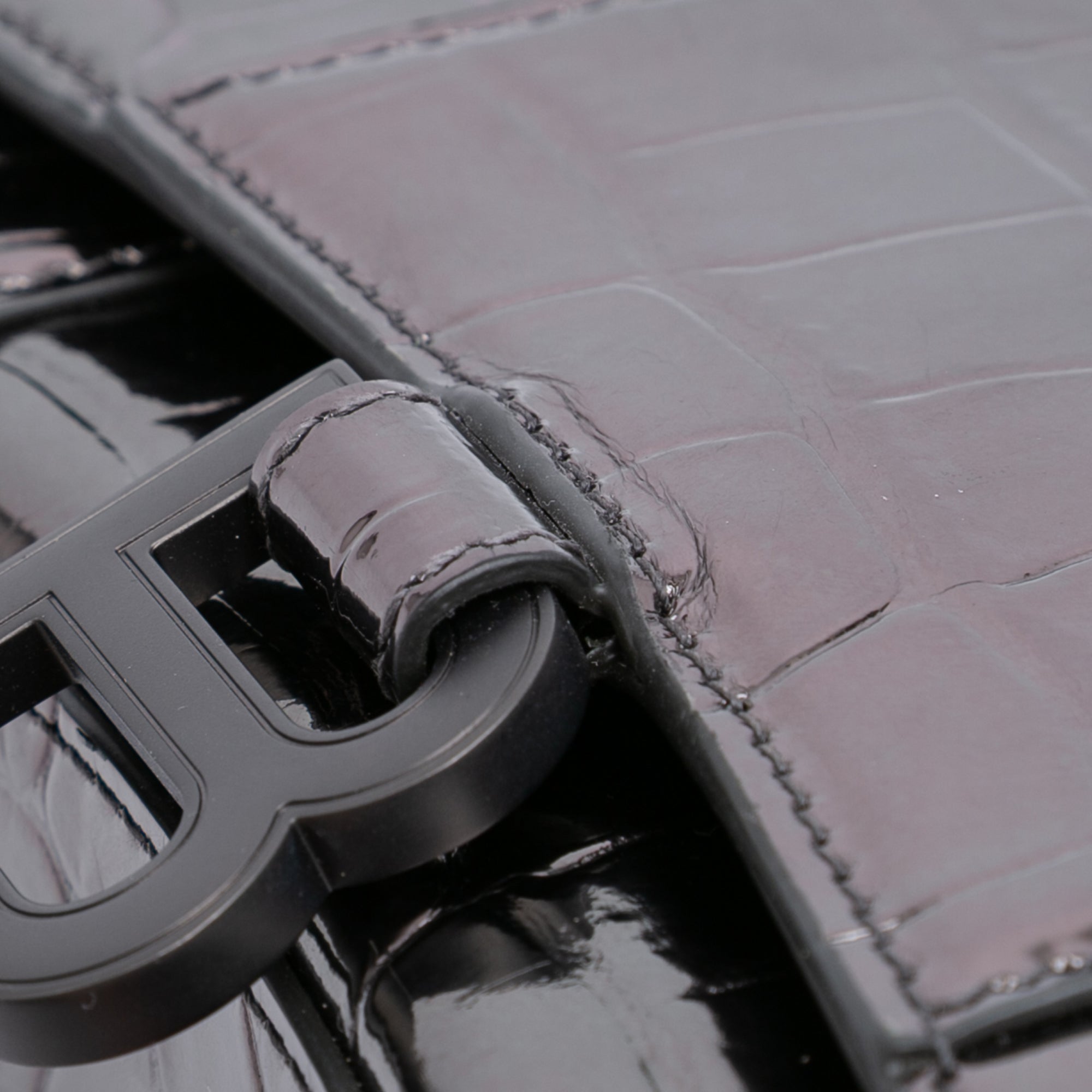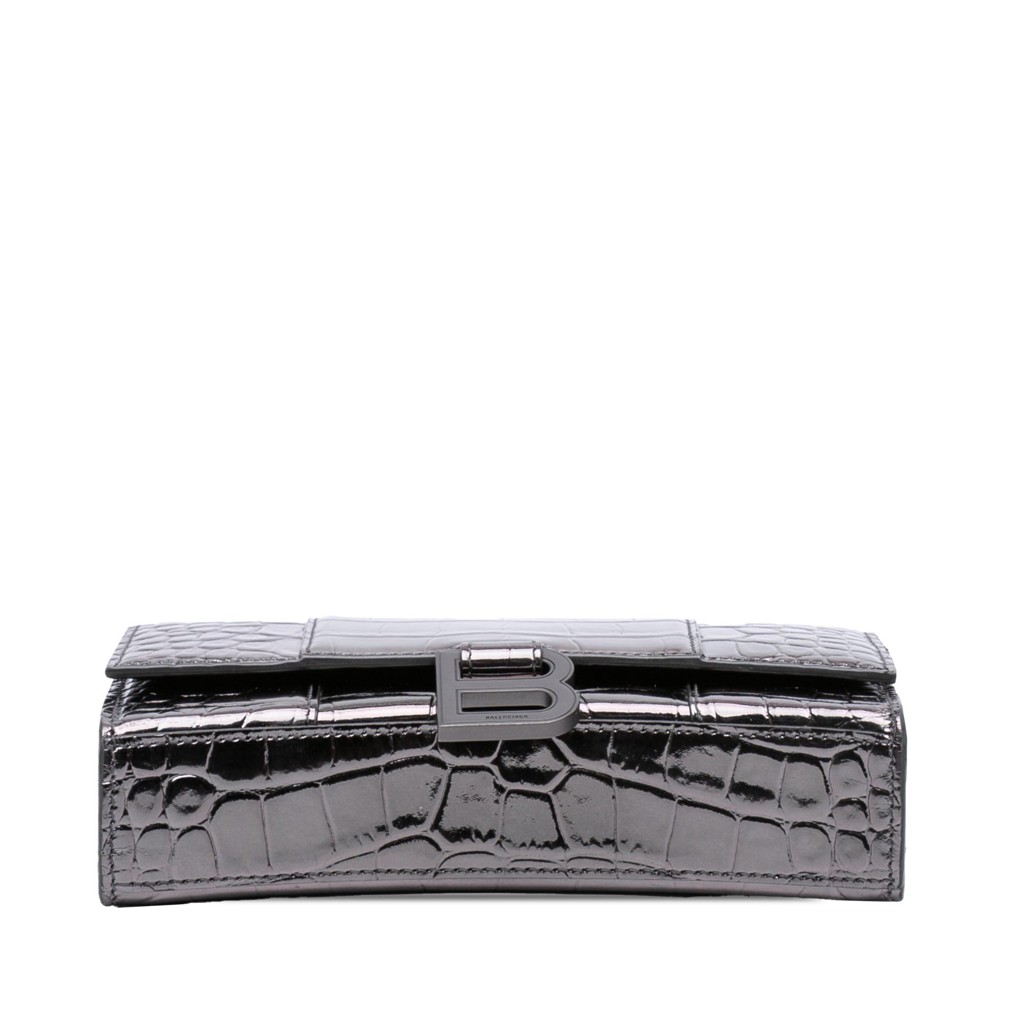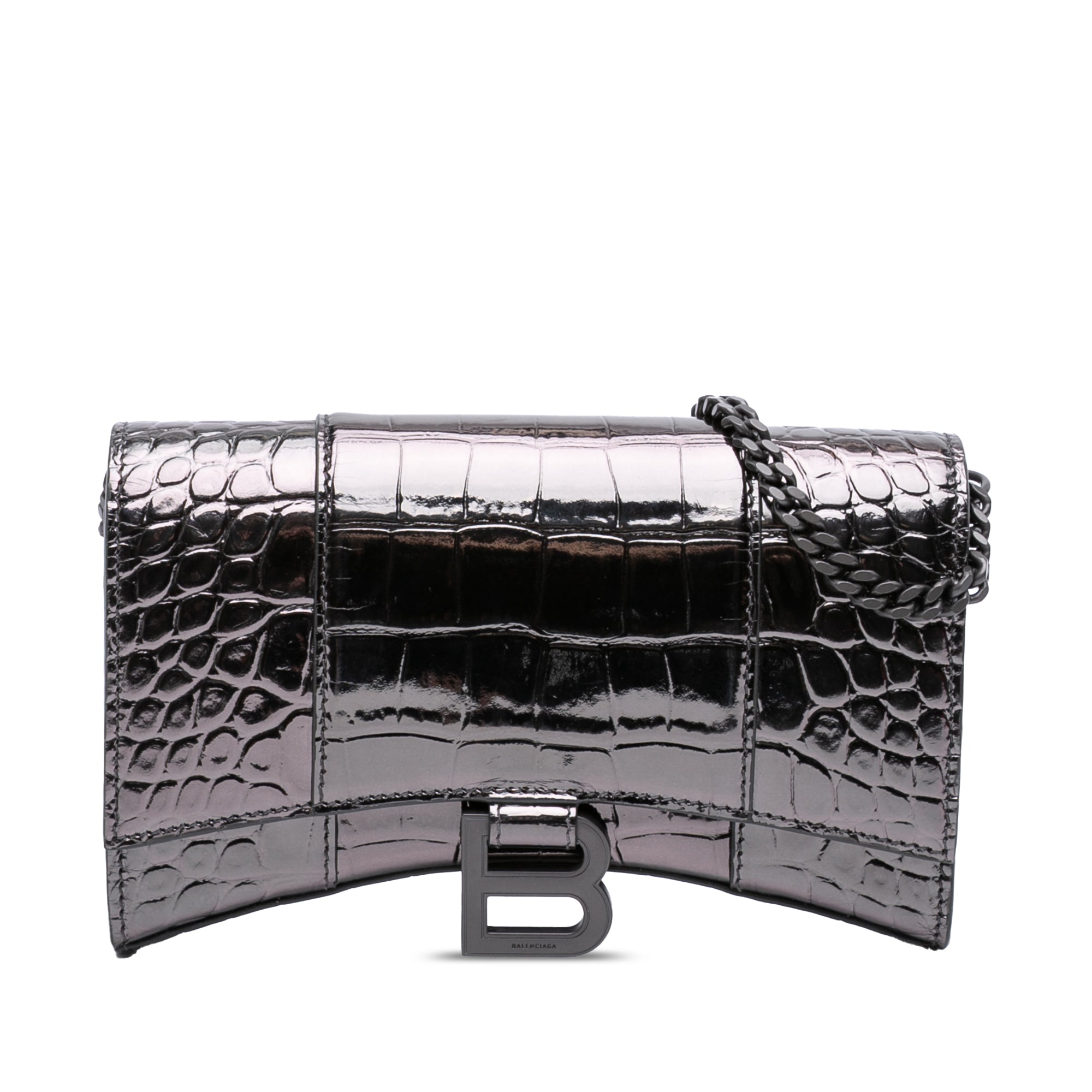 Balenciaga Shiny Calfskin Crocodile Embossed Hourglass Wallet On Chain