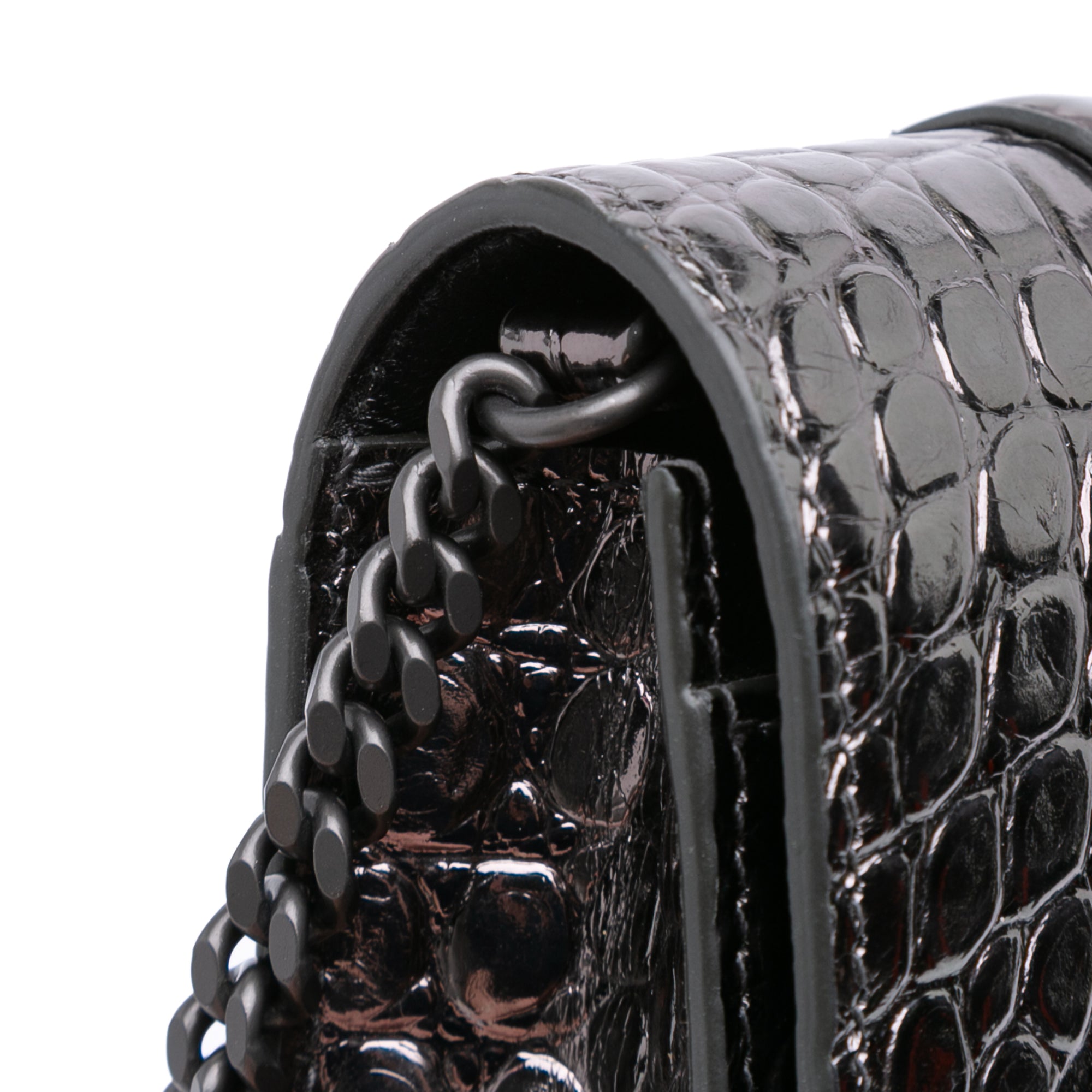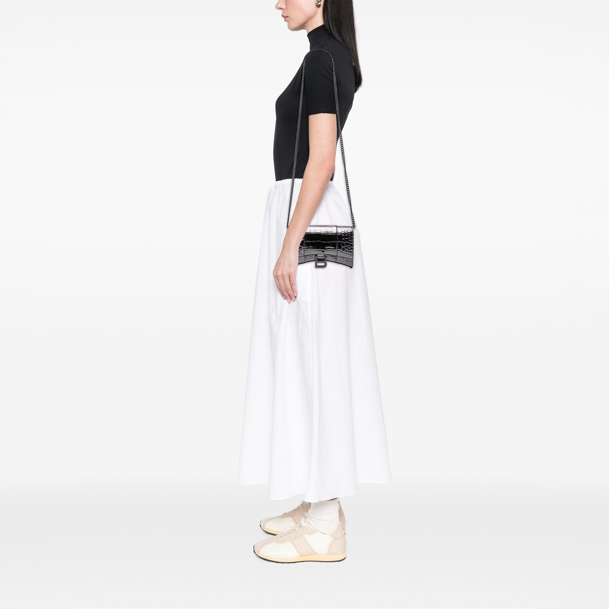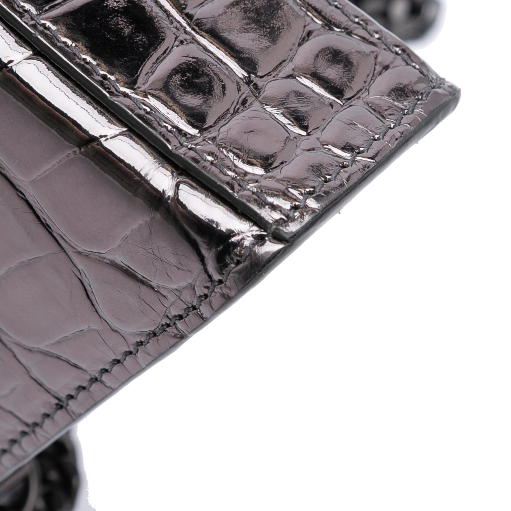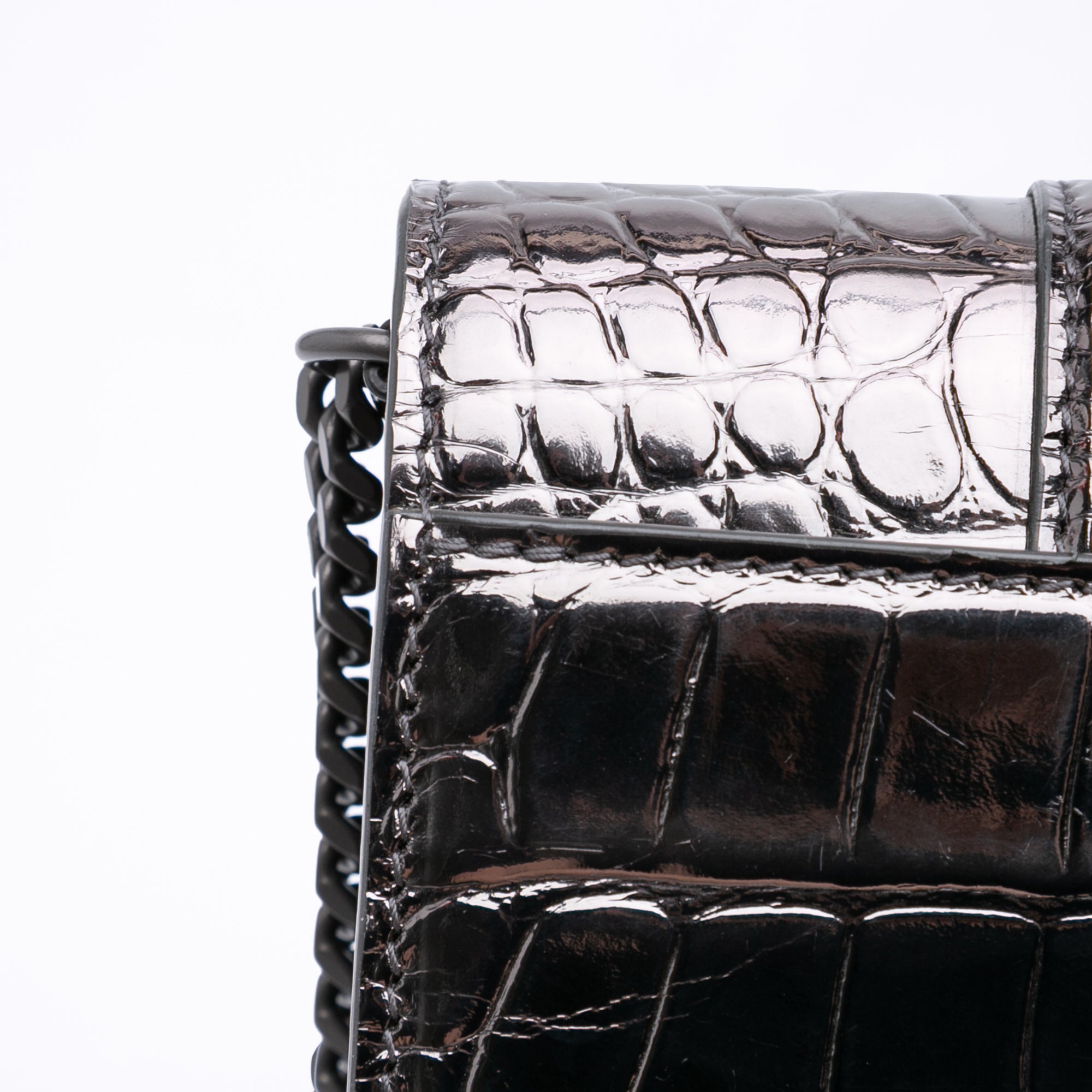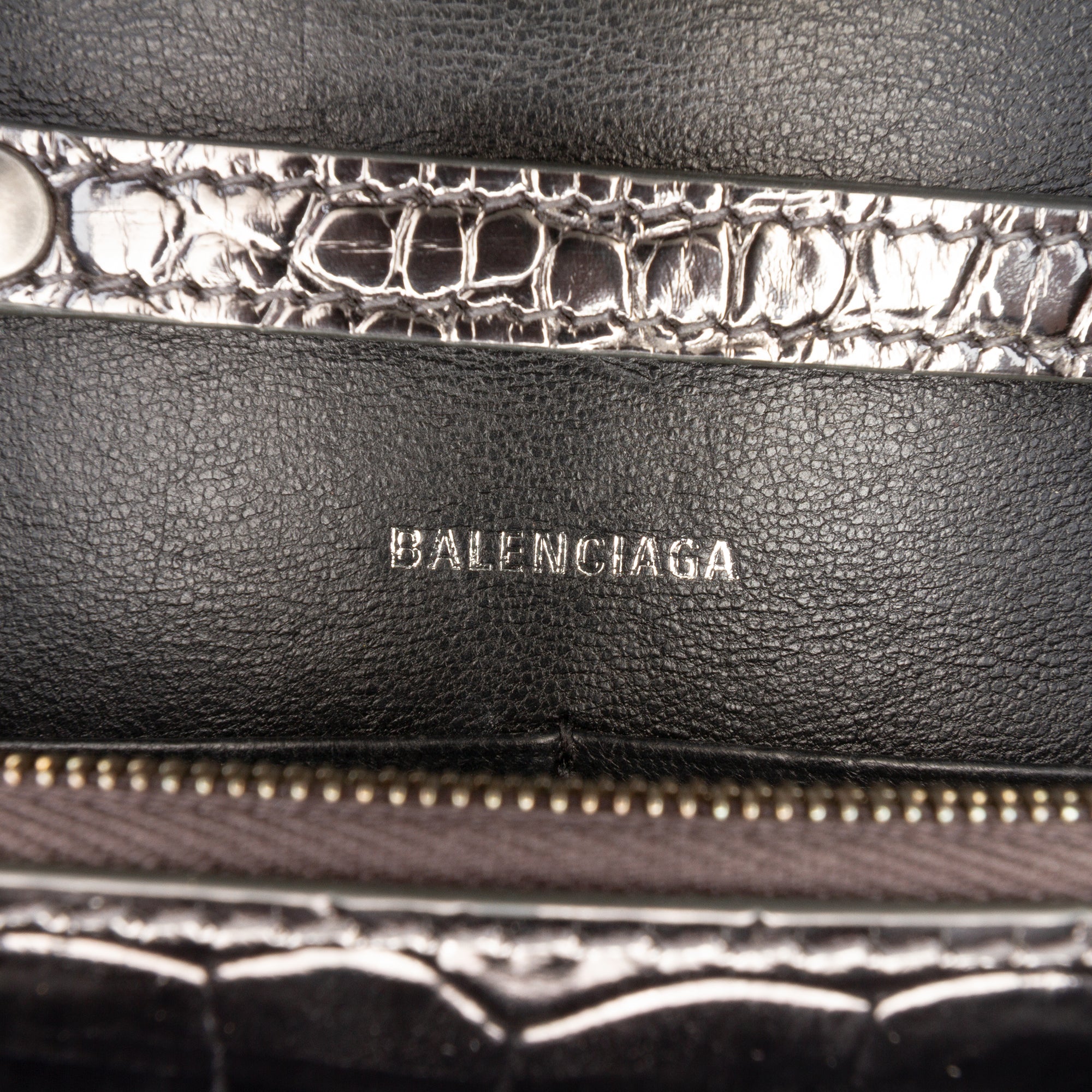 Balenciaga Shiny Calfskin Crocodile Embossed Hourglass Wallet On Chain