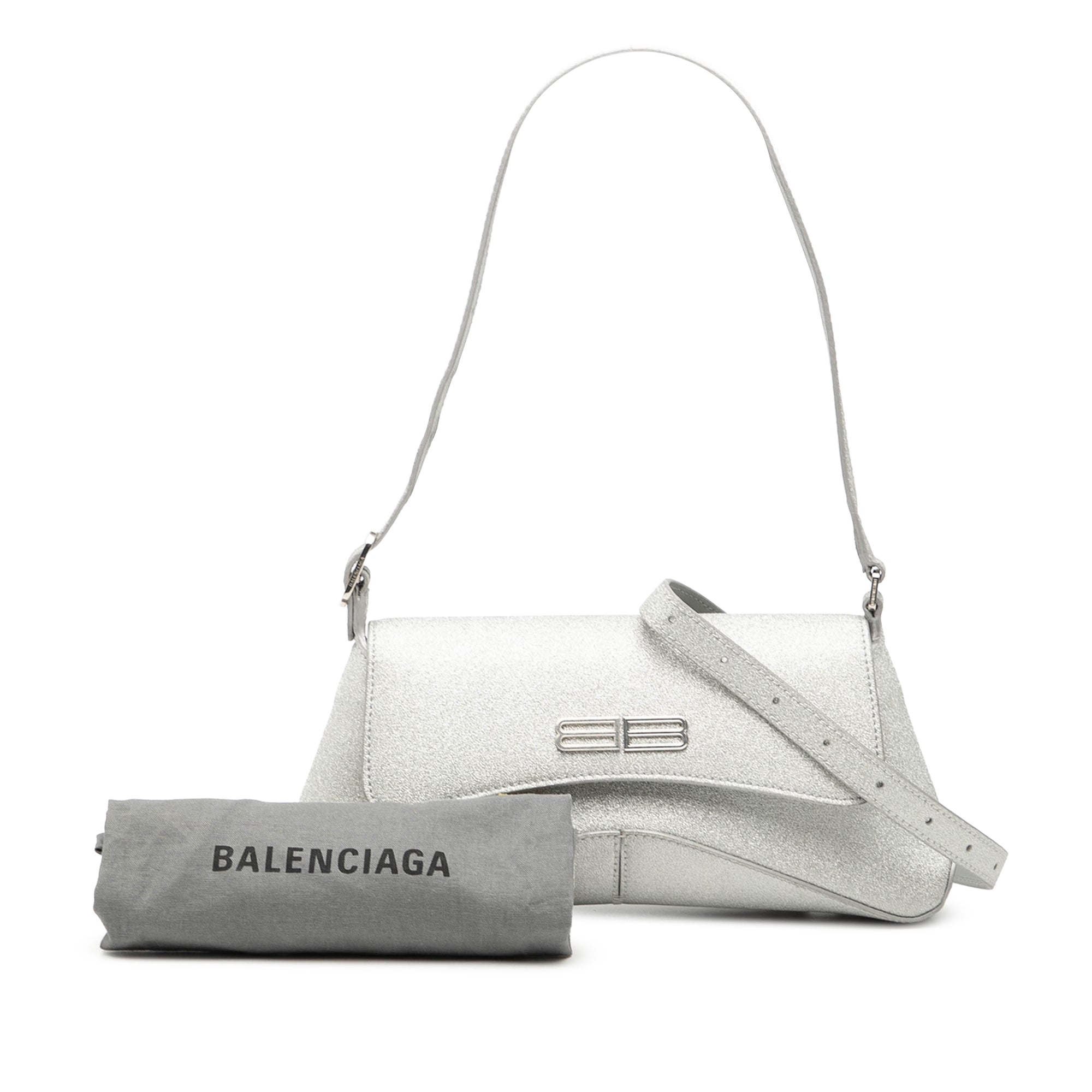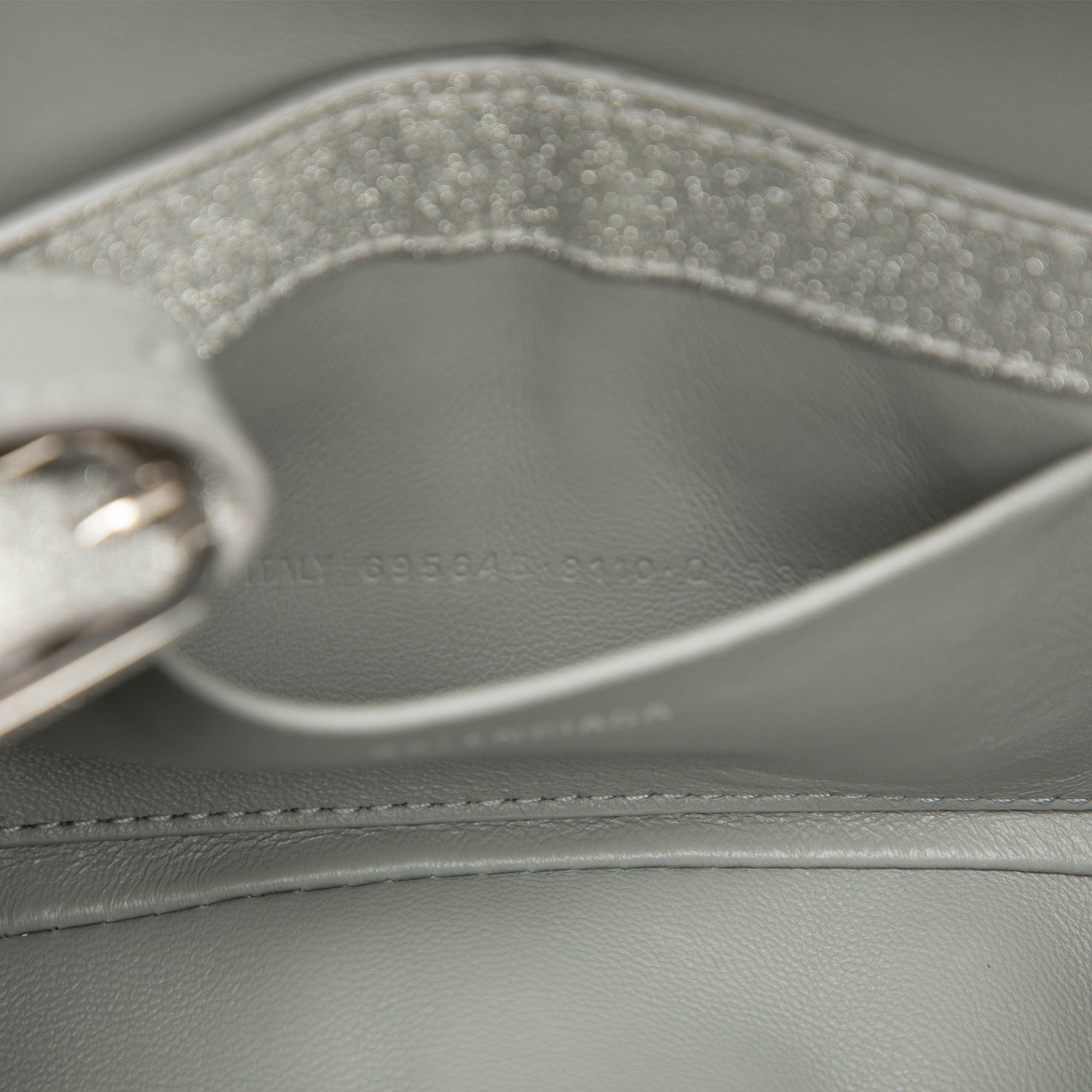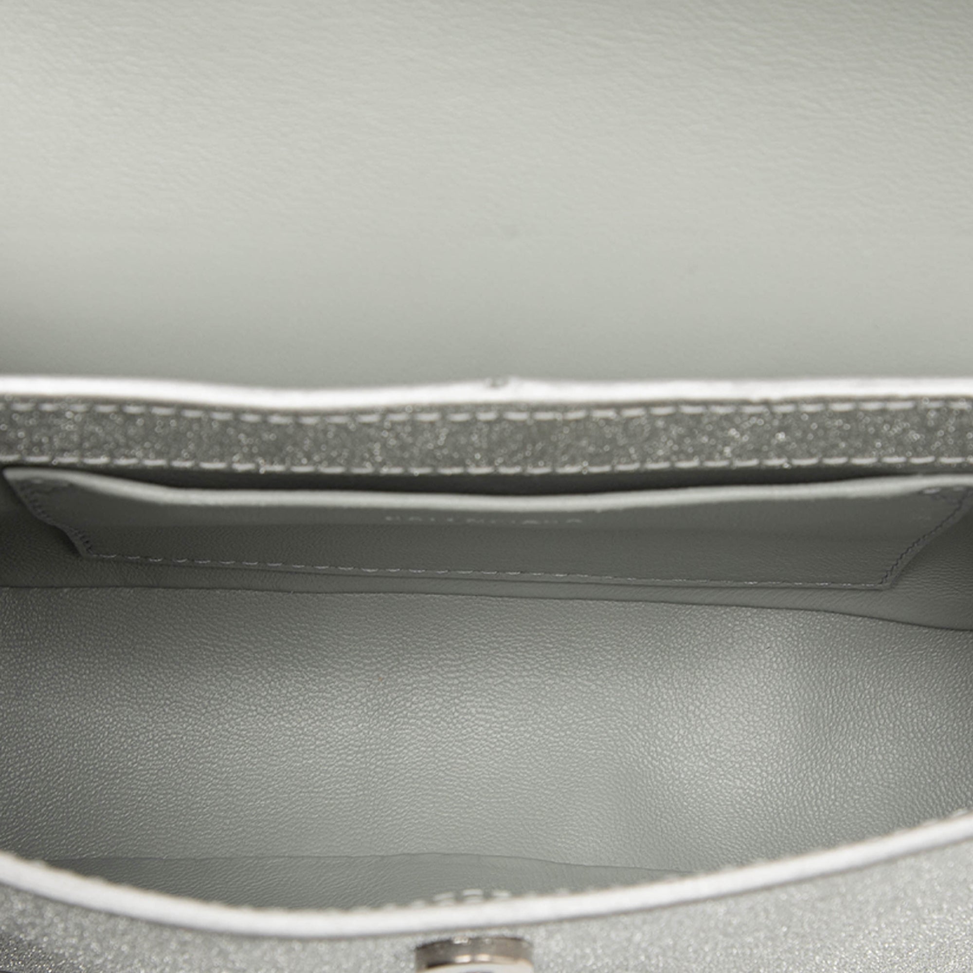 This crossbody bag features a sparkling fabric body, an adjustable flat strap, a detachable strap extender, a front flap with magnetic snap closure, and an interior slip pocket. Inclusion: Dust bag. Retail Price: 2390.00