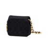 Chanel black satin micro bag. Diamond quilted, gold details, pressure flap closure decorated with crossed CC logo, chain shoulder strap, leather and satin lined interior with logo.