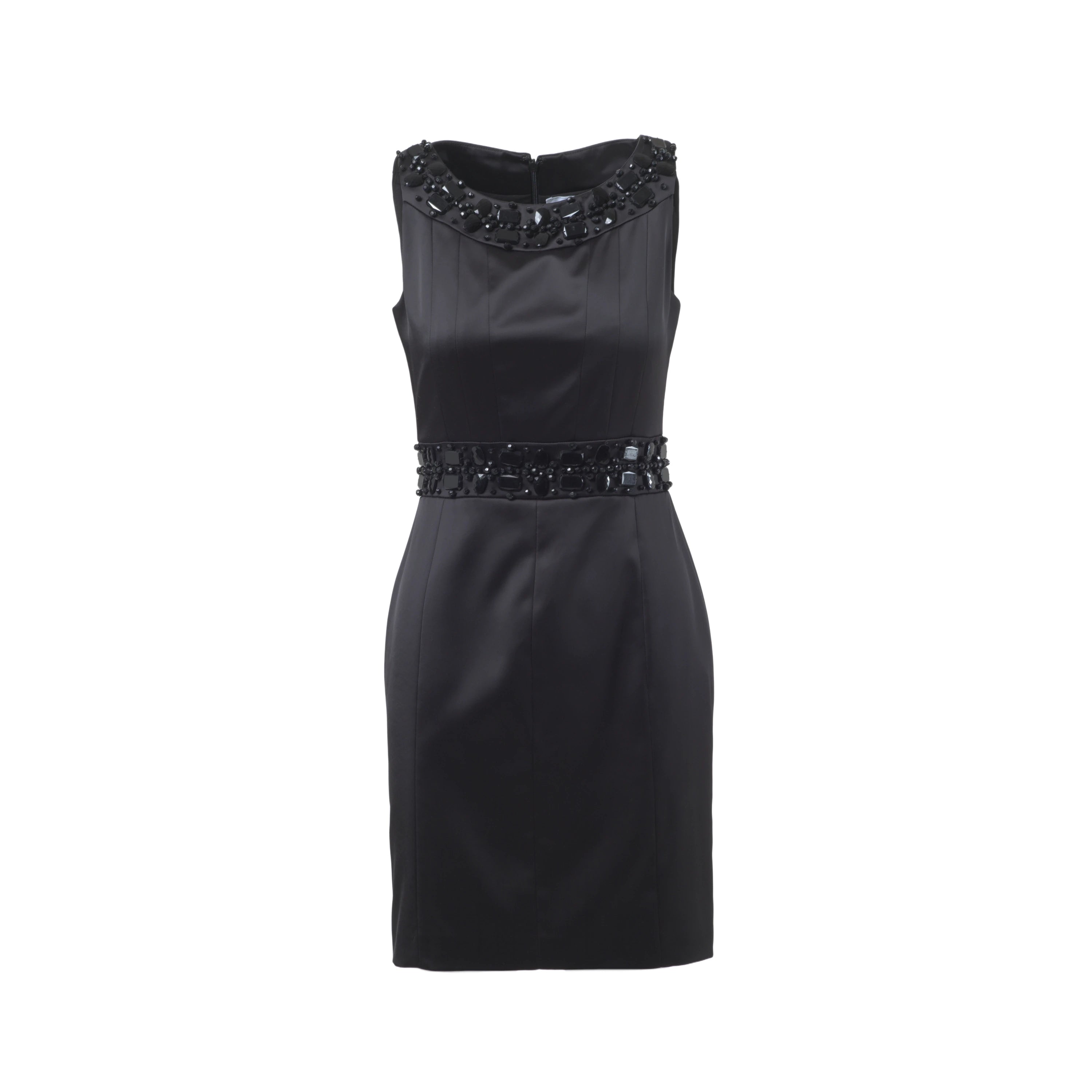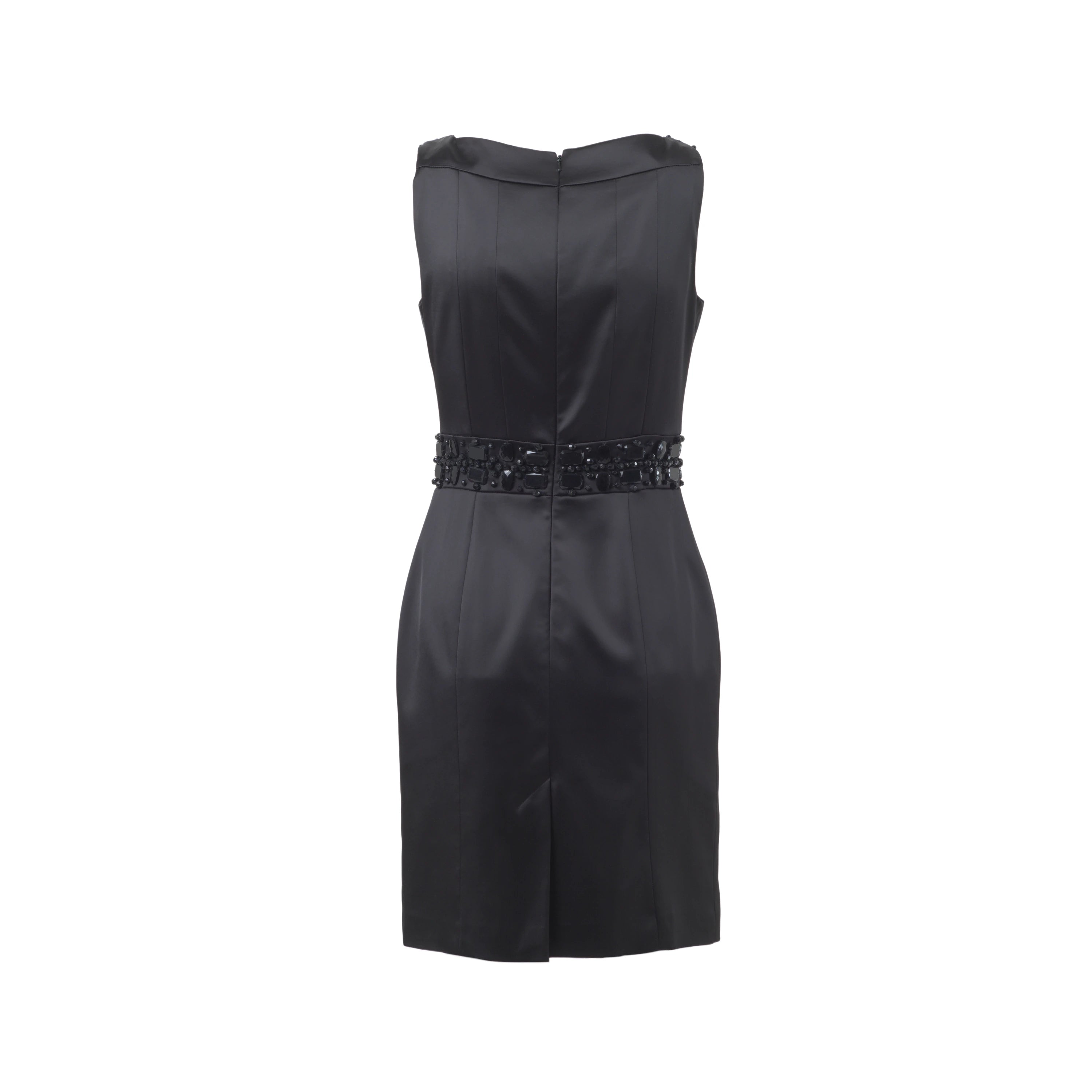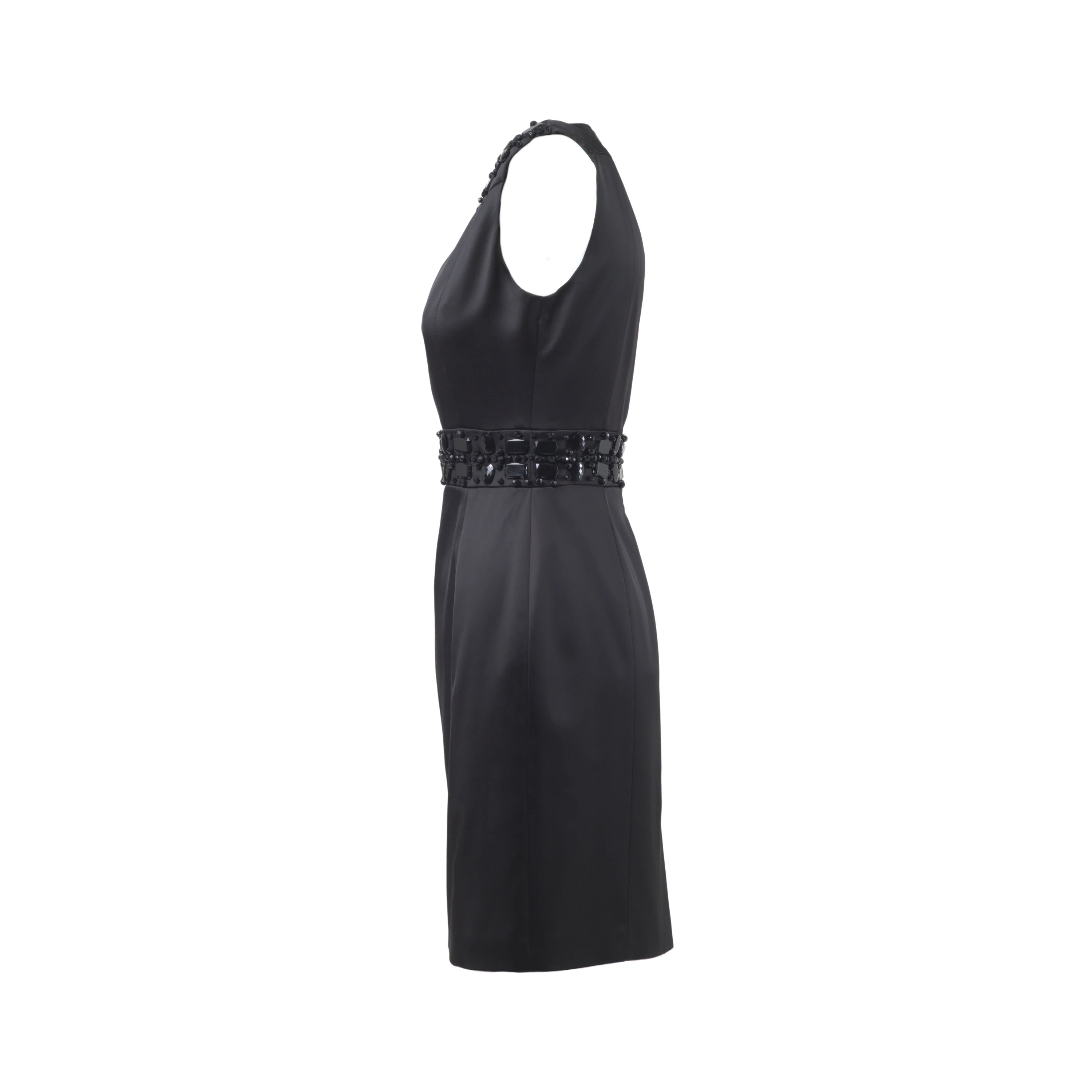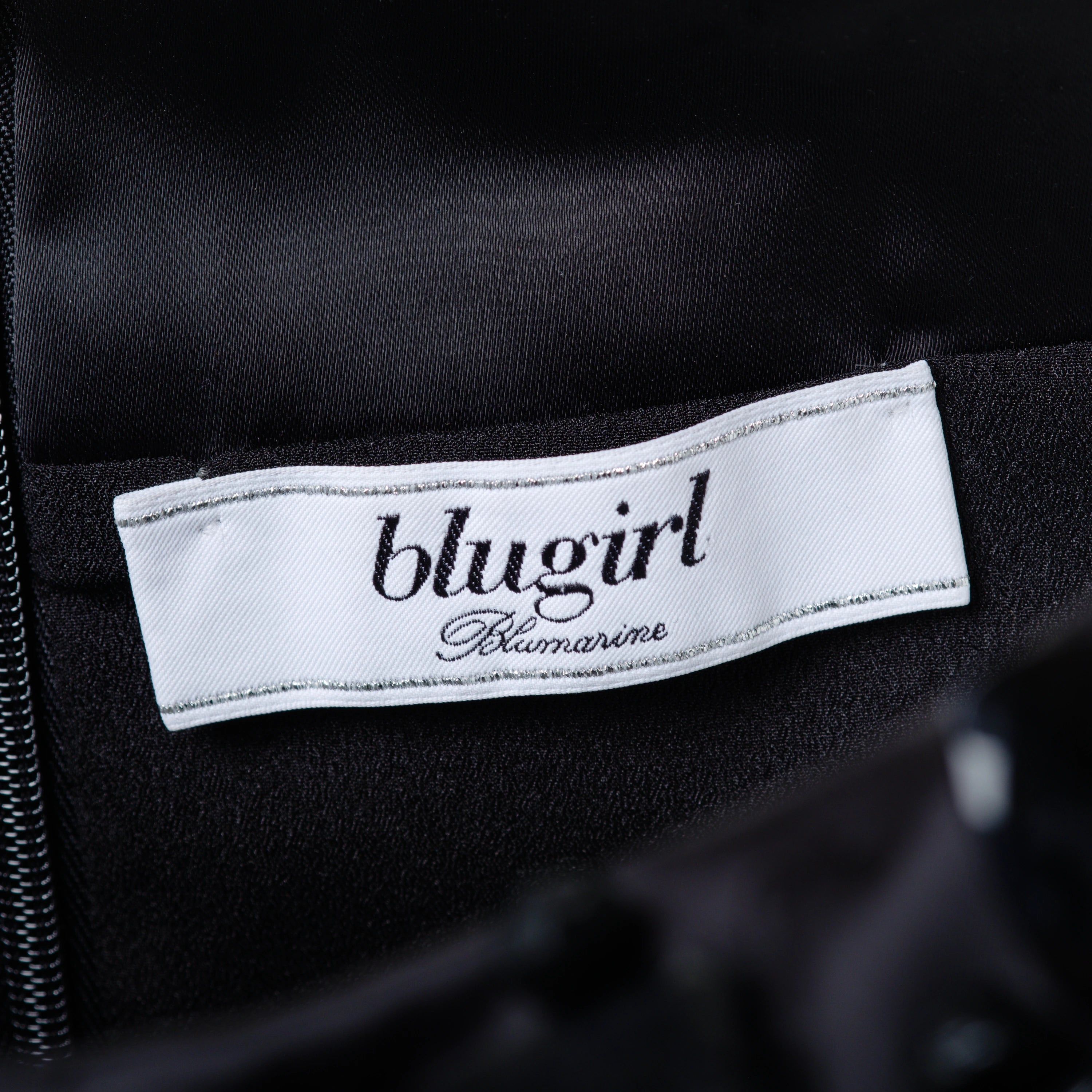 This Blugirl Blumarine dress represents a perfect balance between grace and femininity. It is crafted from smooth black fabric and embellished with tone-on-tone jewel appliqués at the neckline and waist, adding luminosity and a refined sense of importance to the design.