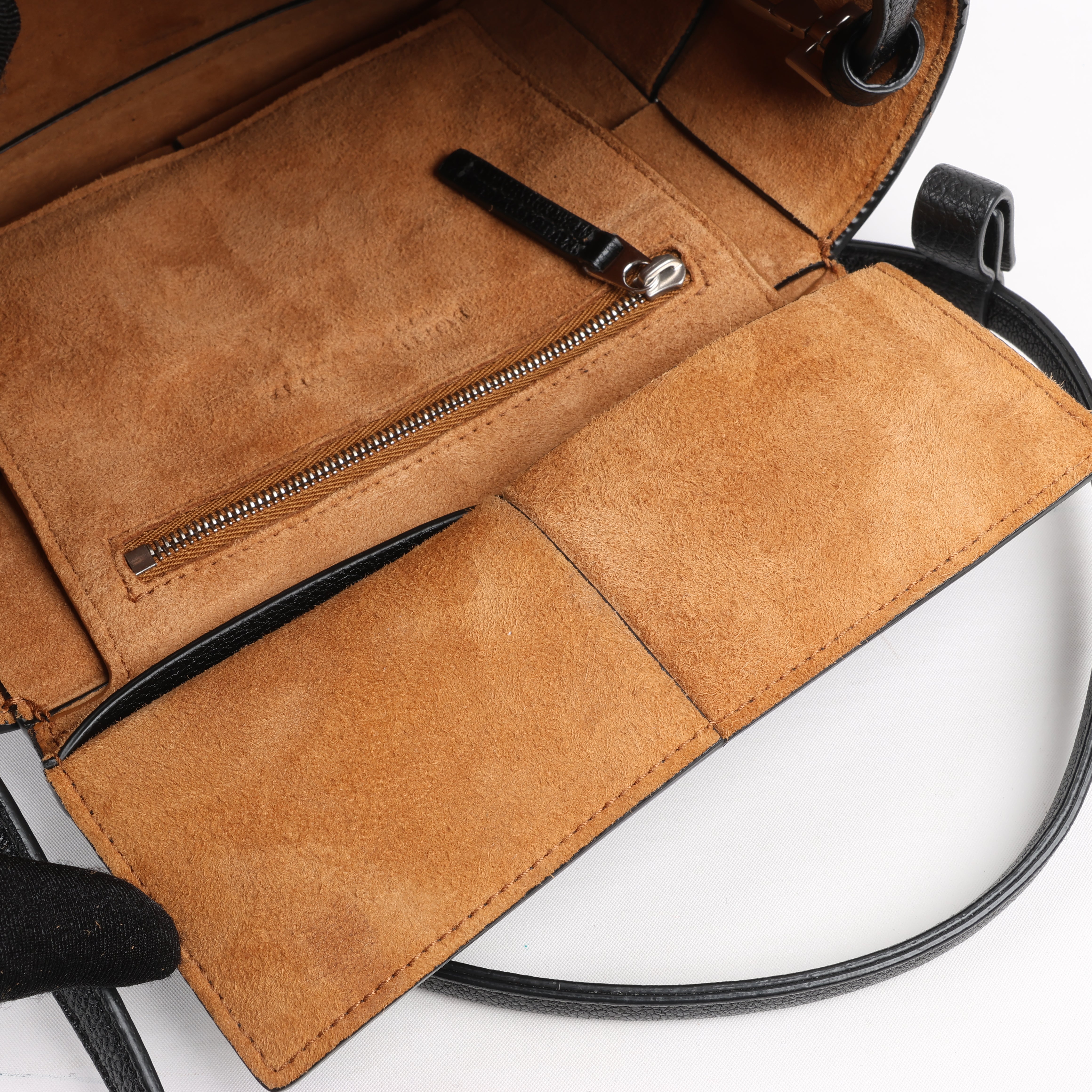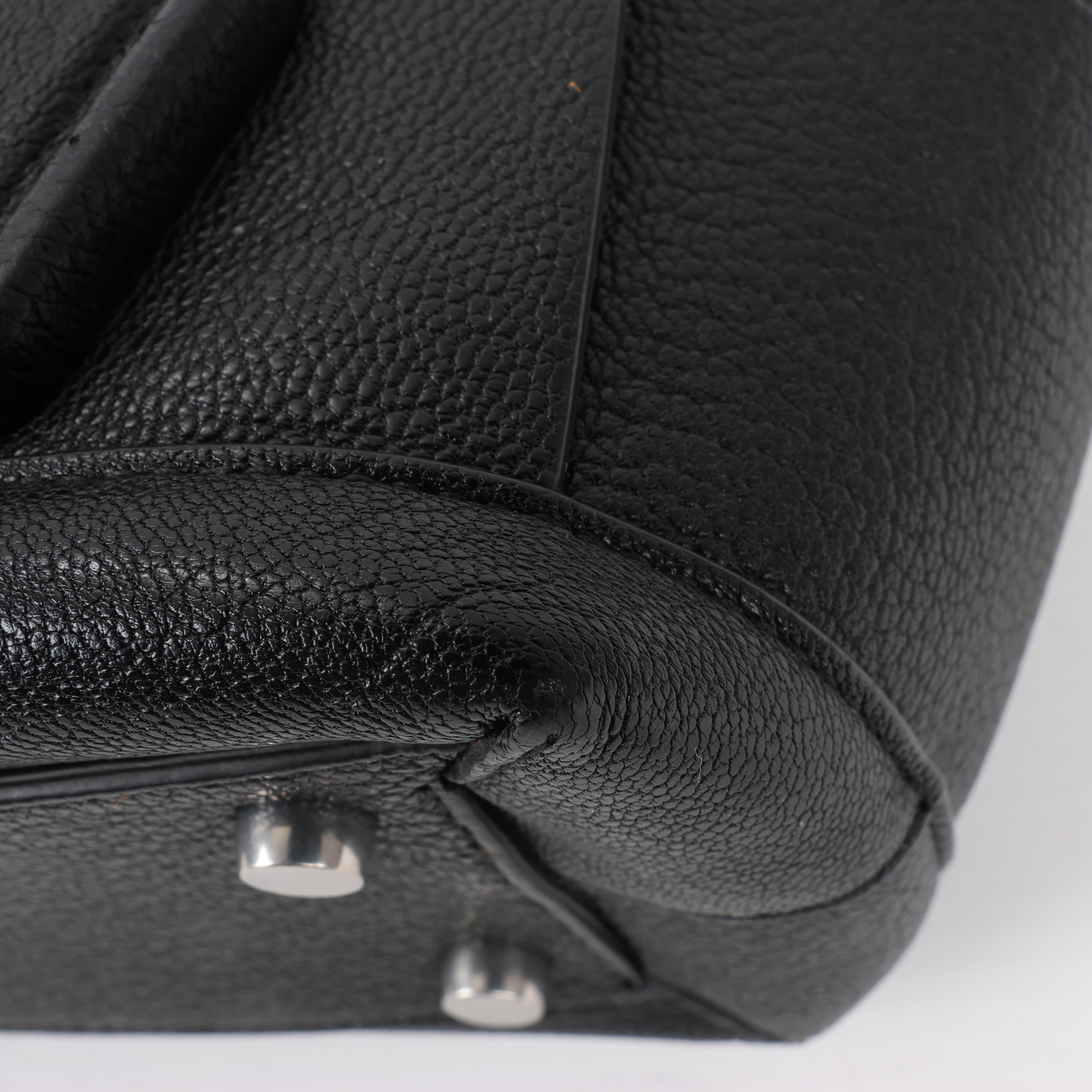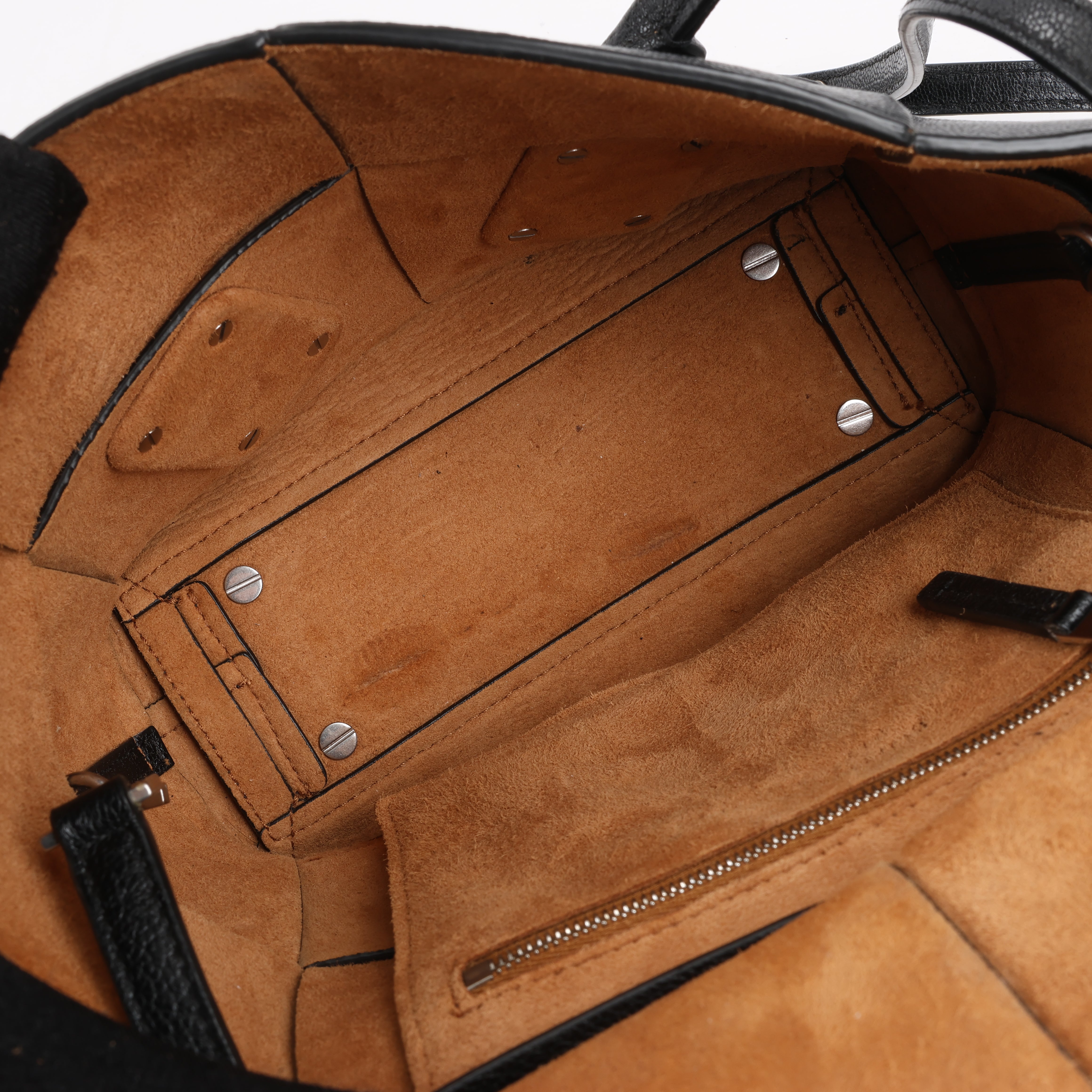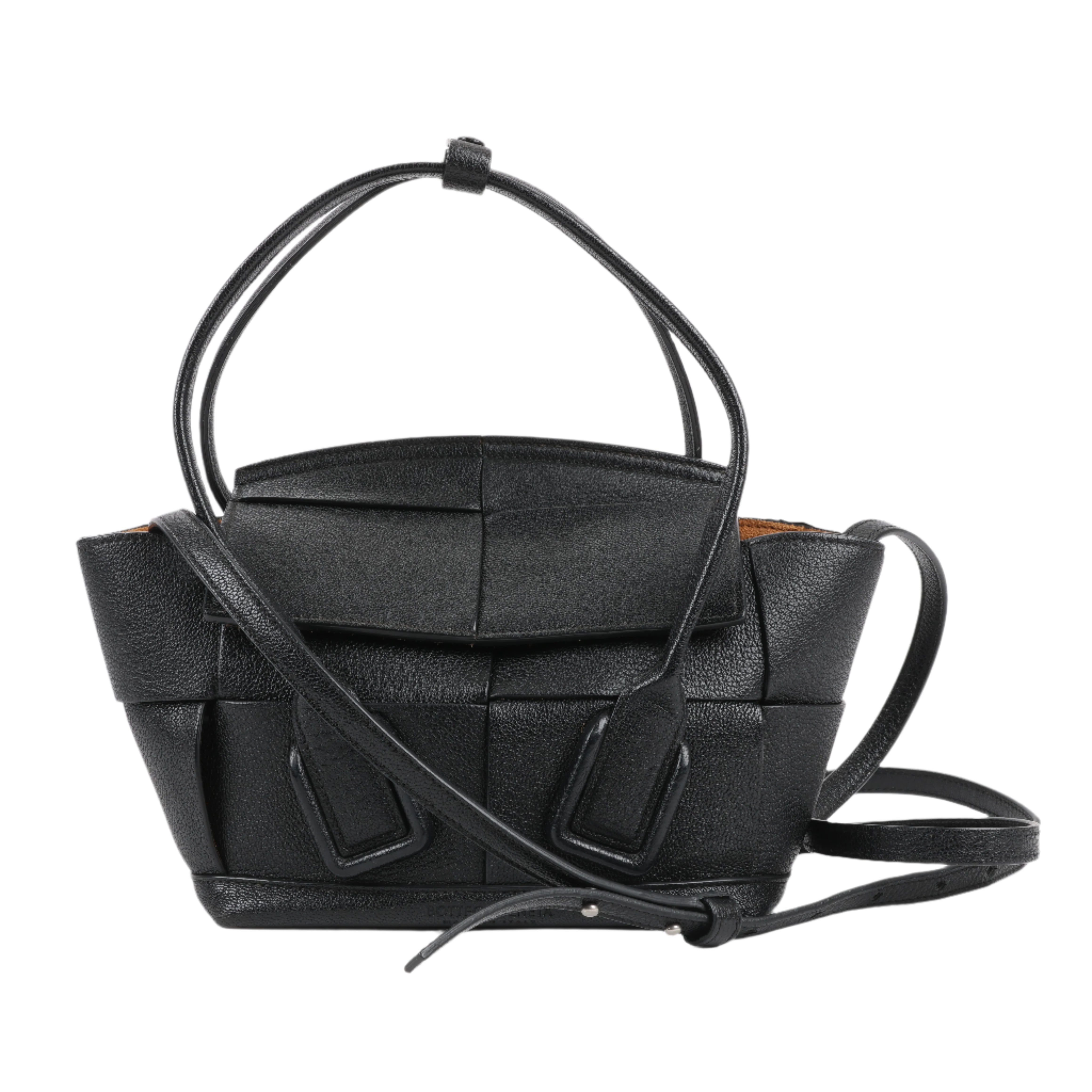 Brand: Bottega Veneta Model: ArcoSize: MiniWidth: 21 cm Height: 19 cmExterior Condition: ExcellentInterior Condition: Very goodCondition Details: The exterior leather is clean and beautiful in excellent condition. The handles and strap are clean and firm in good condition. The interior leather is in good condition except minor rubbings and stains. Top width is 29 cm.Colour: BlackInterior Colour: BrownHardware Colour: SilverMaterial: LeatherComes With: Sholder strap