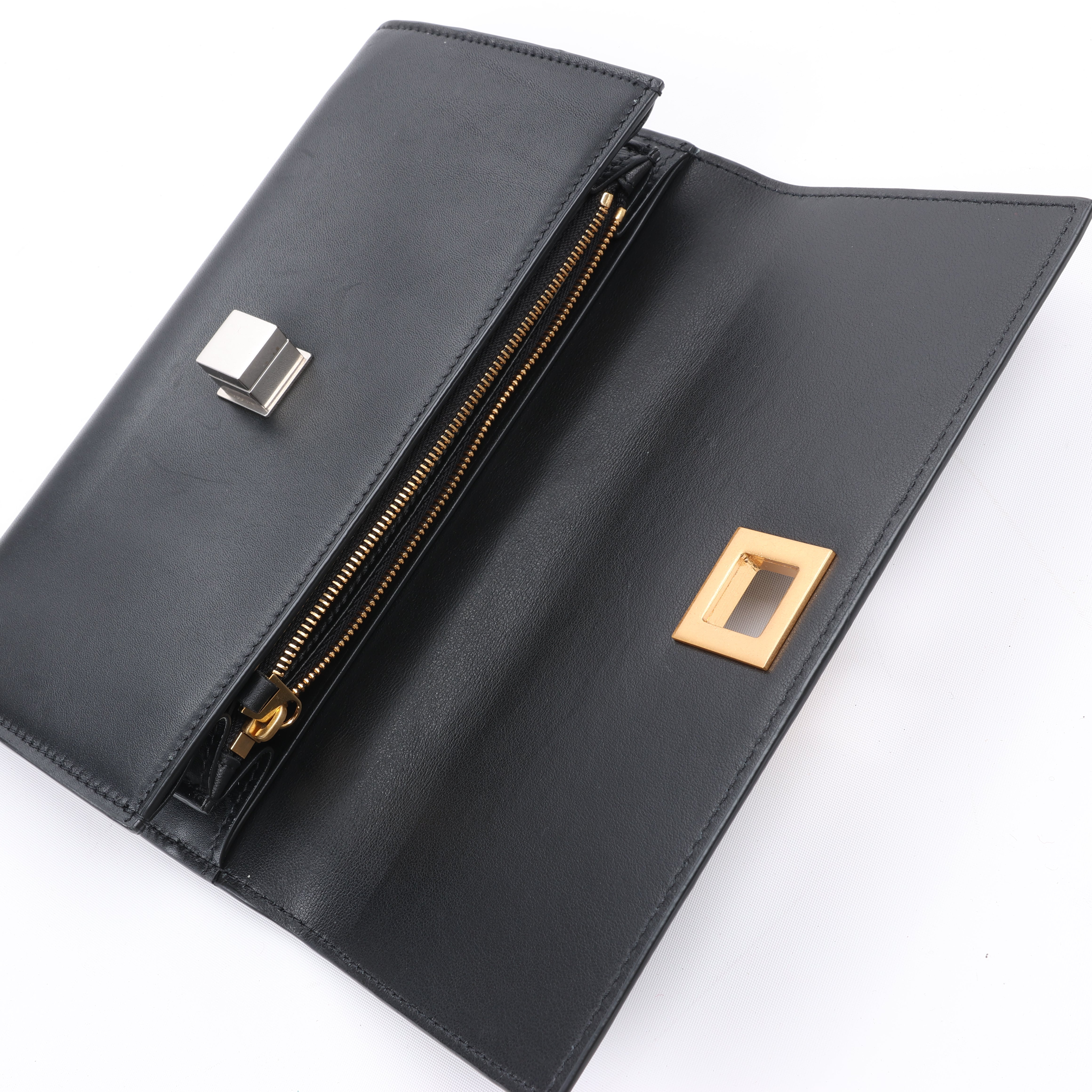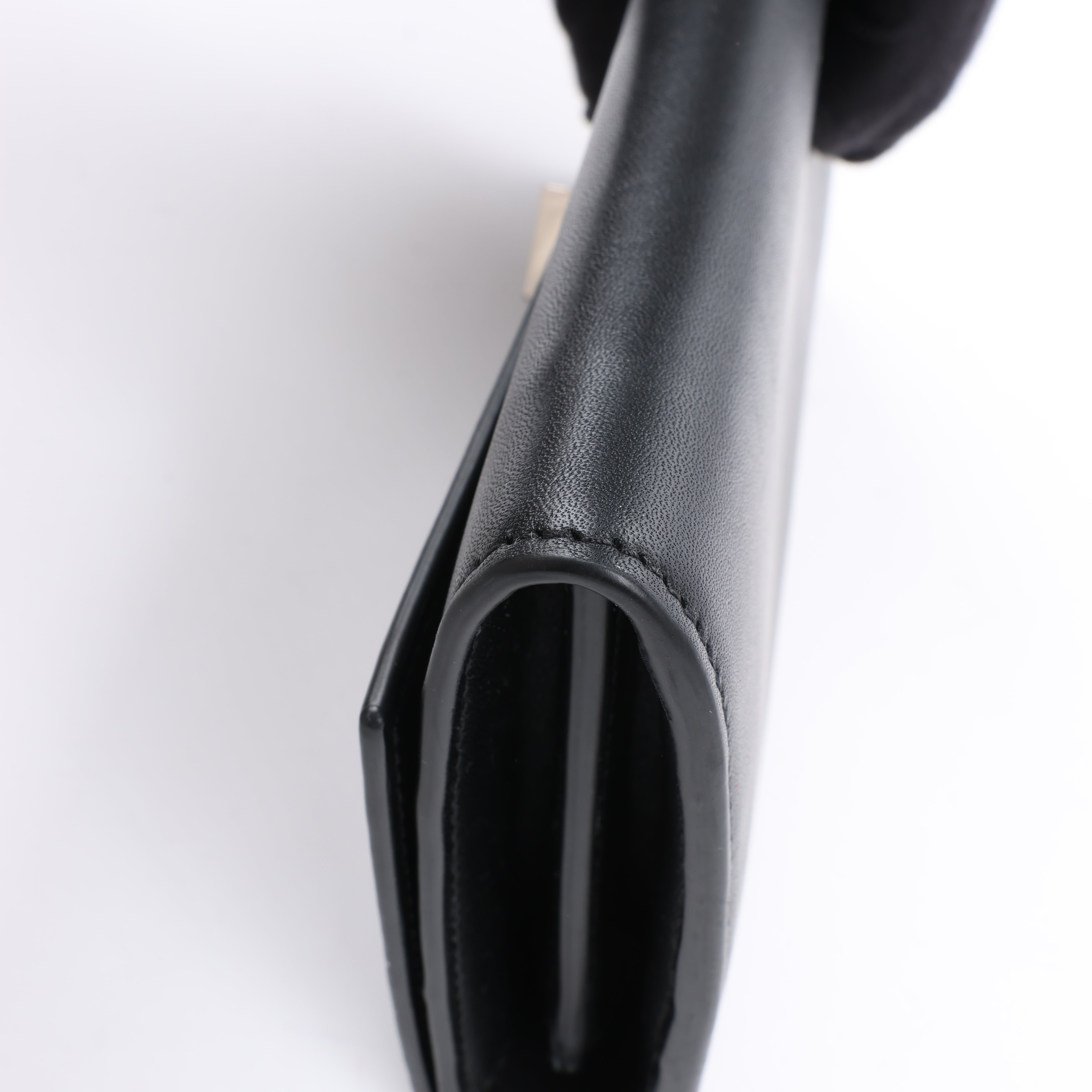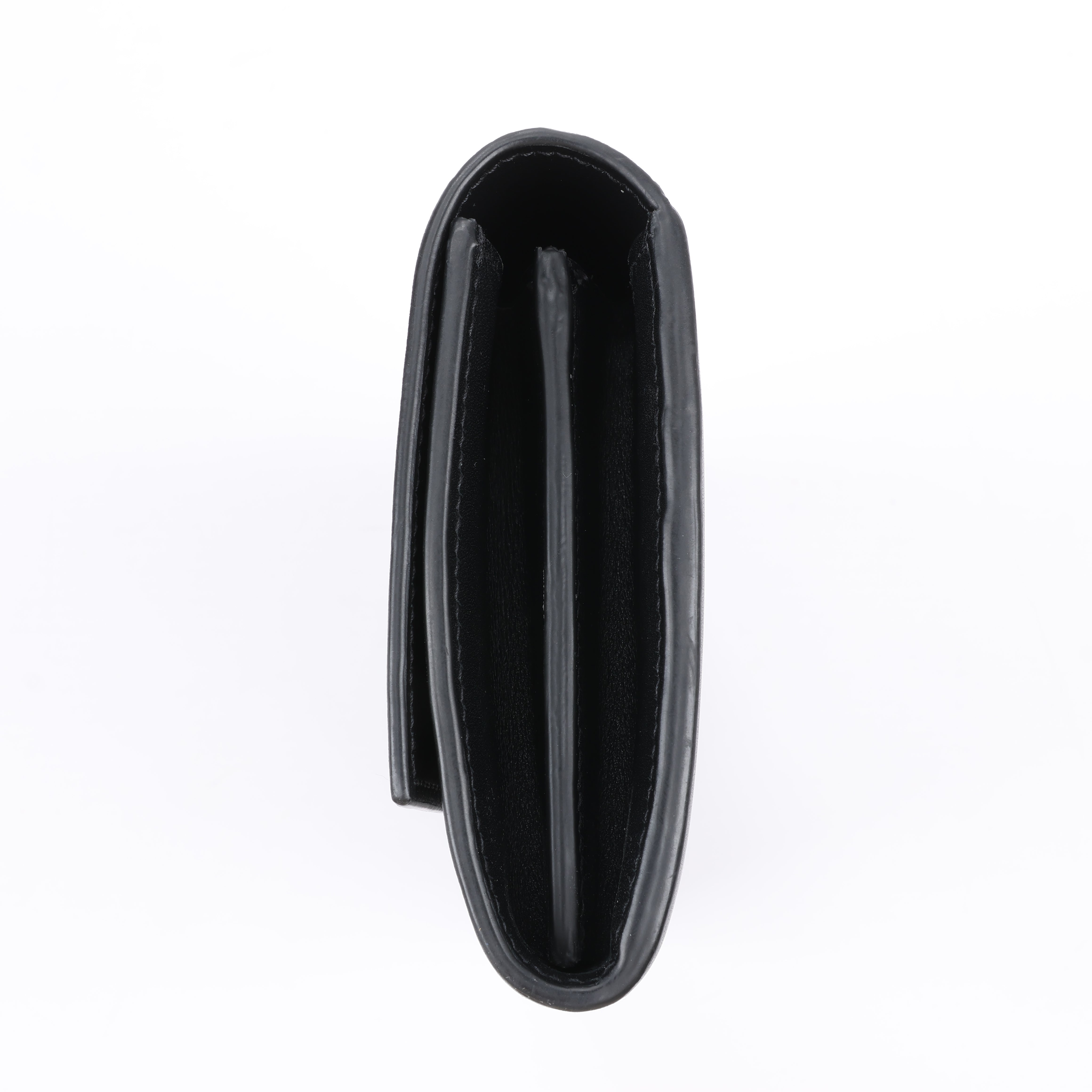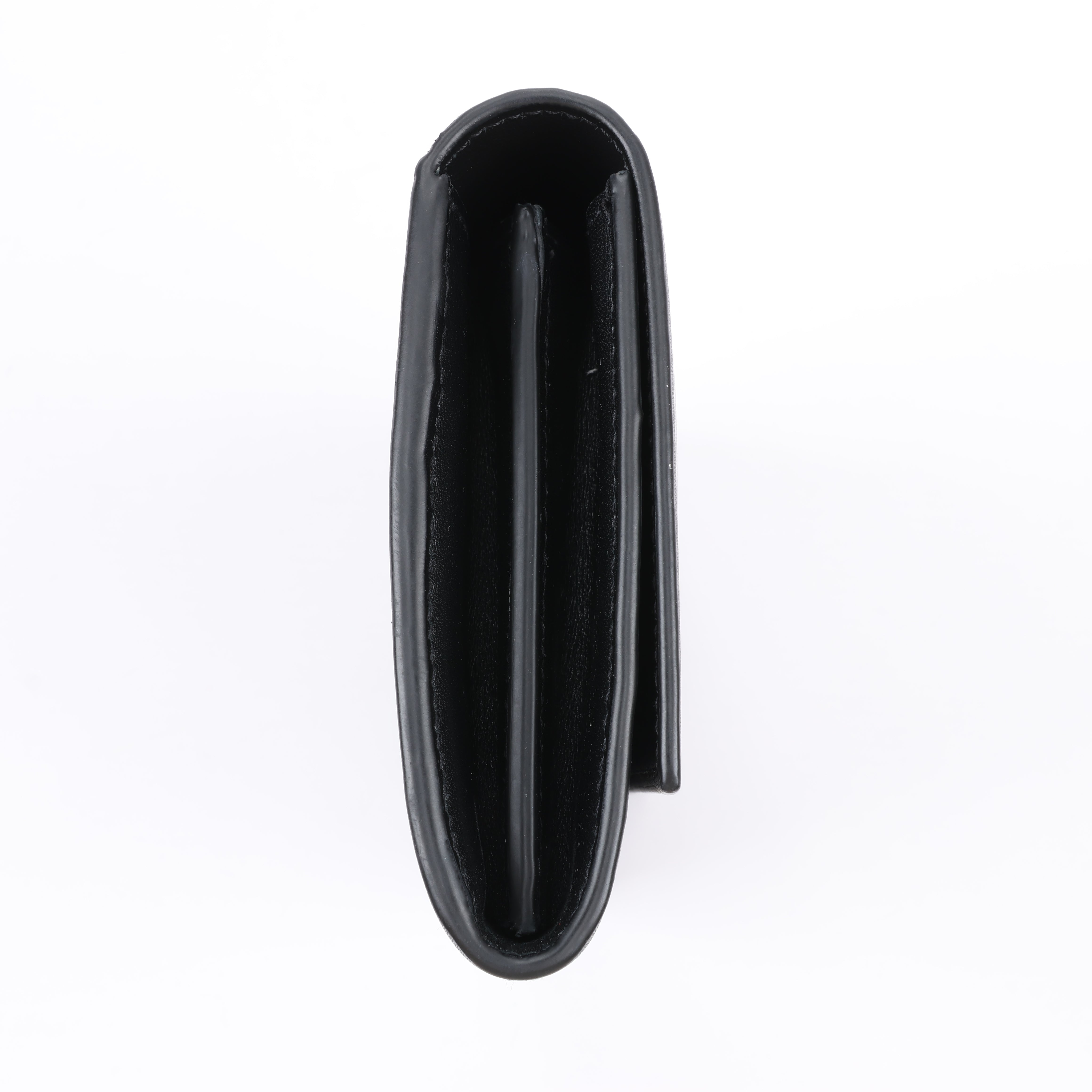 The Bottega Veneta Black Smooth Leather Continental Wallet offers sleek elegance with its minimalist design. Crafted from smooth black leather, it features a distinctive metal clasp closure and a well-organized interior for cards and essentials.