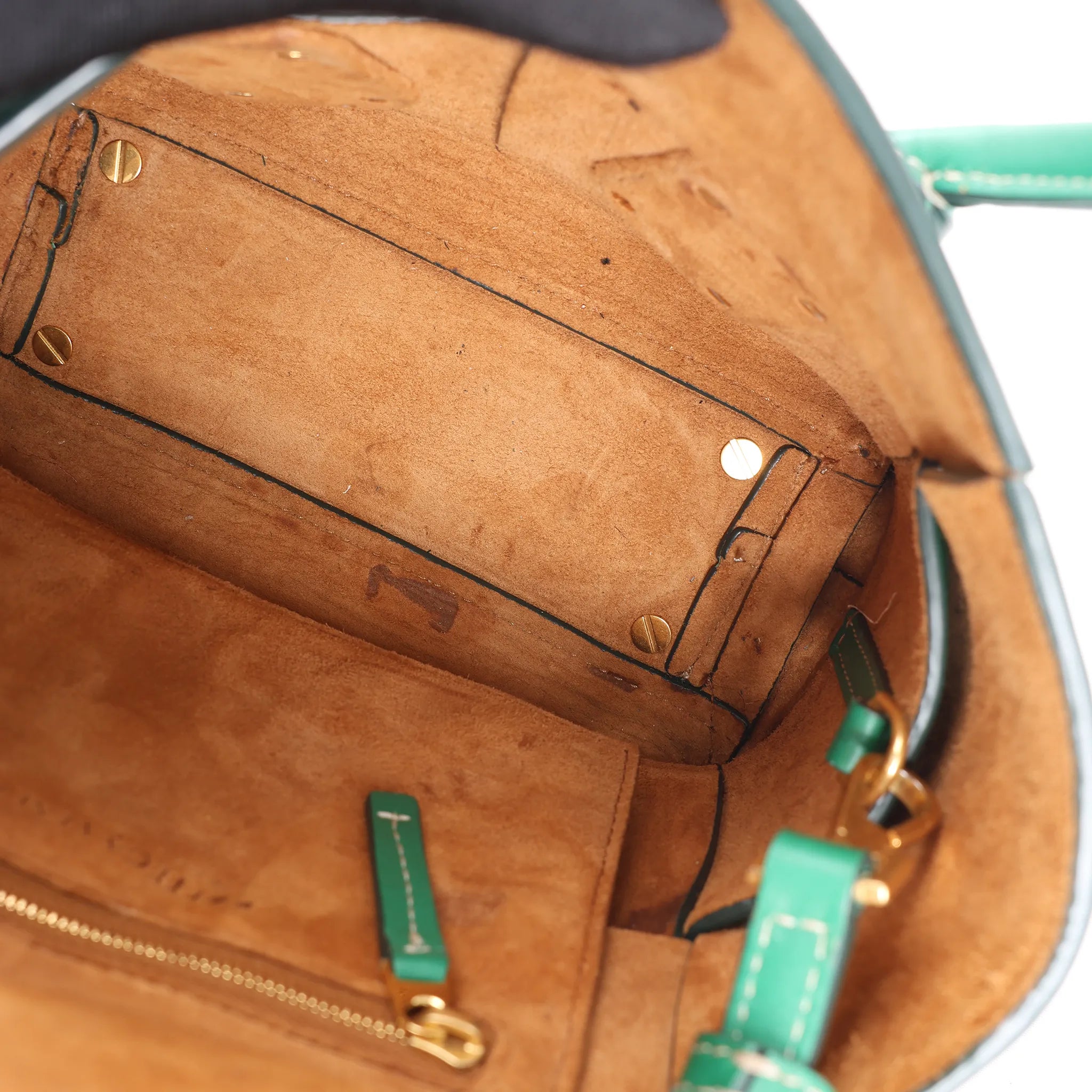 Brand: Bottega Veneta Model: ArcoSize: MiniWidth: 17 cm Height: 14.5 cmExterior Condition: ExcellentInterior Condition: Very goodCondition Details: The exterior leather is clean and beautiful in great condition with rubbings and scratches here and there. The handles and strap are clean and firm in good condition. The interior leather is in good condition except rubbings and stains. Top width is 28 cm.Colour: GreenInterior Colour: BrownHardware Colour: GoldMaterial: LeatherComes With: Sholder strap