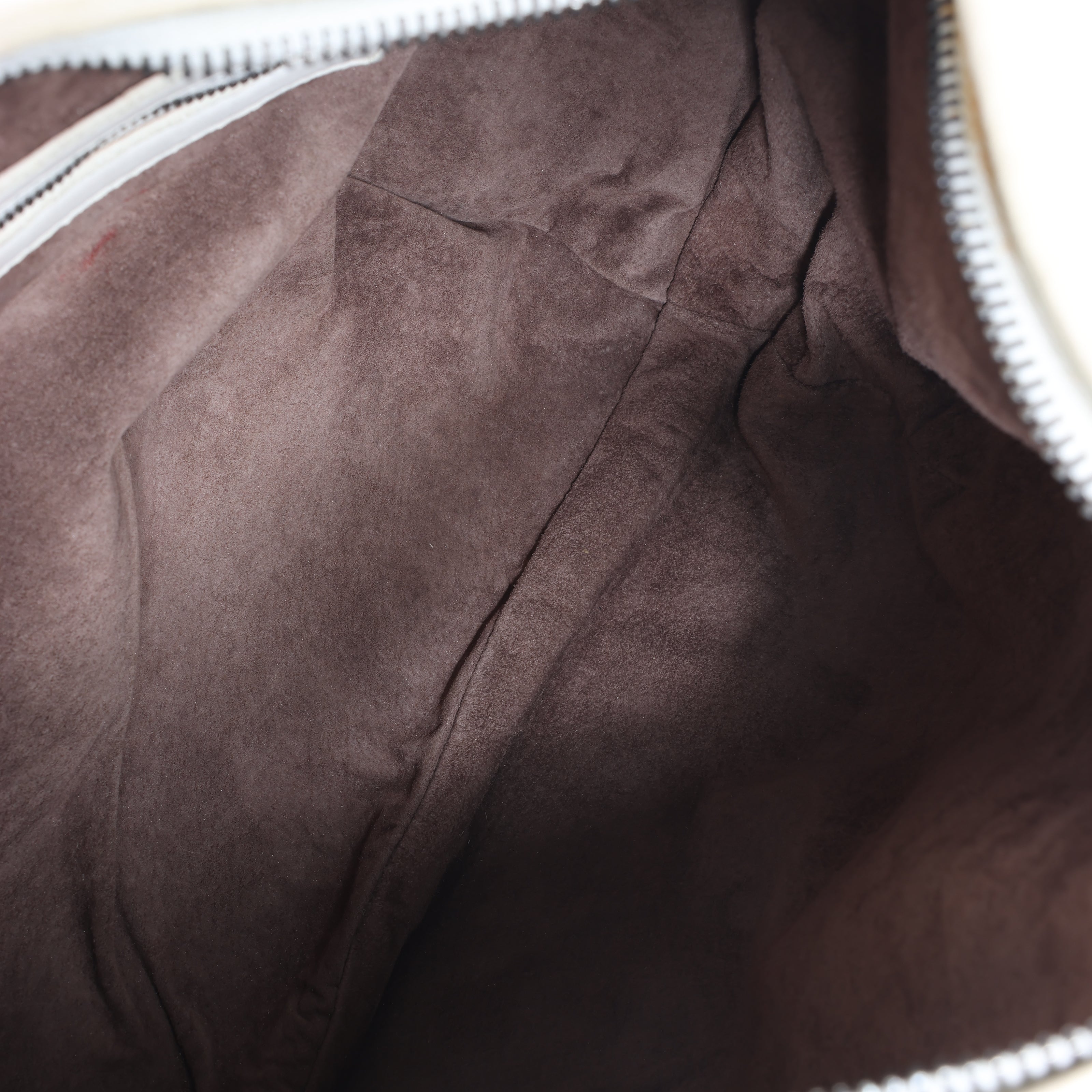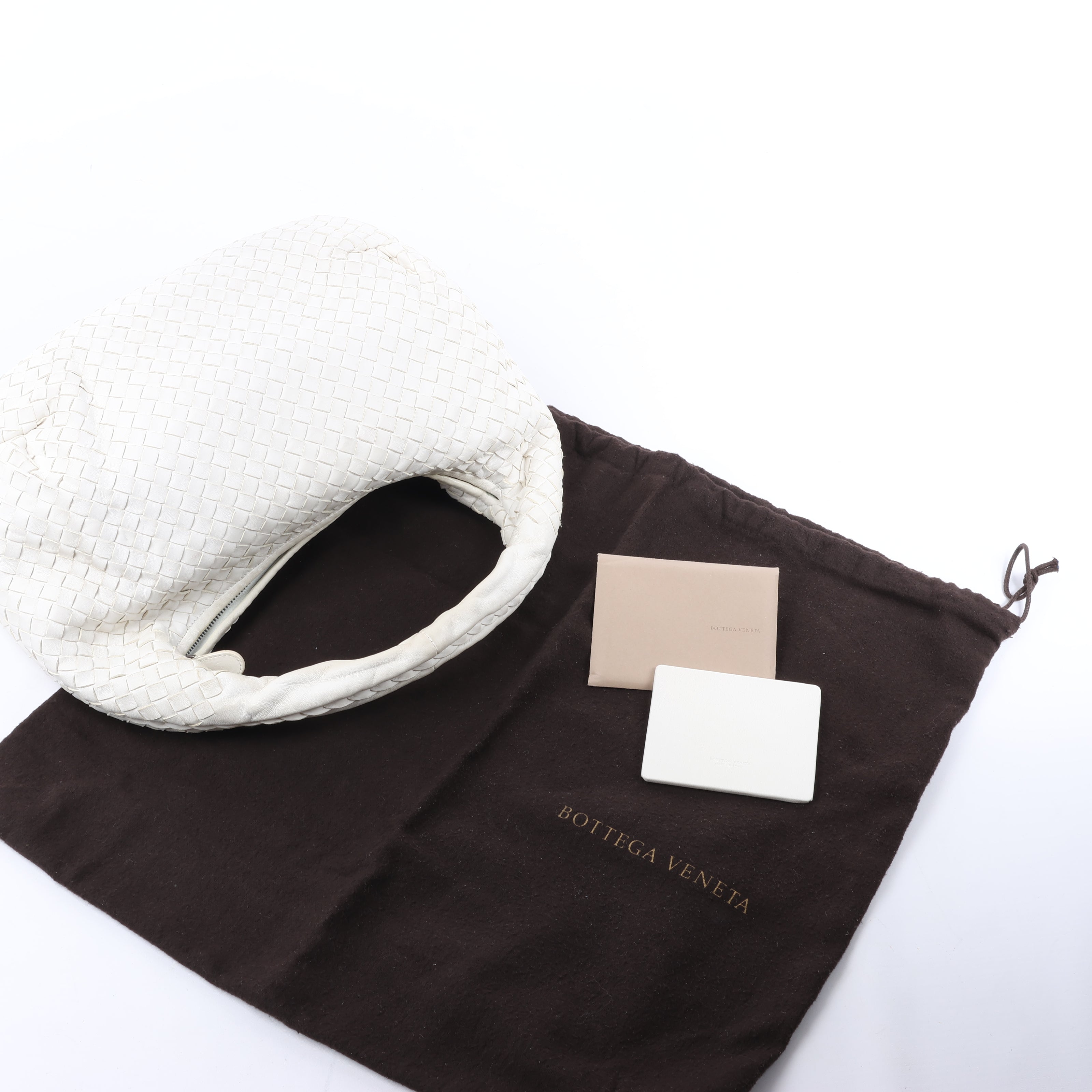 Brand: Bottega Veneta Model: VenetaSize: -Width: 32 cmHeight: 28 cmExterior Condition: ExcellentInterior Condition: ExcellentCondition Details: The exterior leather is beautiful in excellent condition, but has some orange stains. The handle is in great condition. The hardware is crisp. The interior is in great condition.Colour: WhiteInterior Colour: TaupeHardware Colour: SilverMaterial: LeatherComes With: Mirror, dustbag