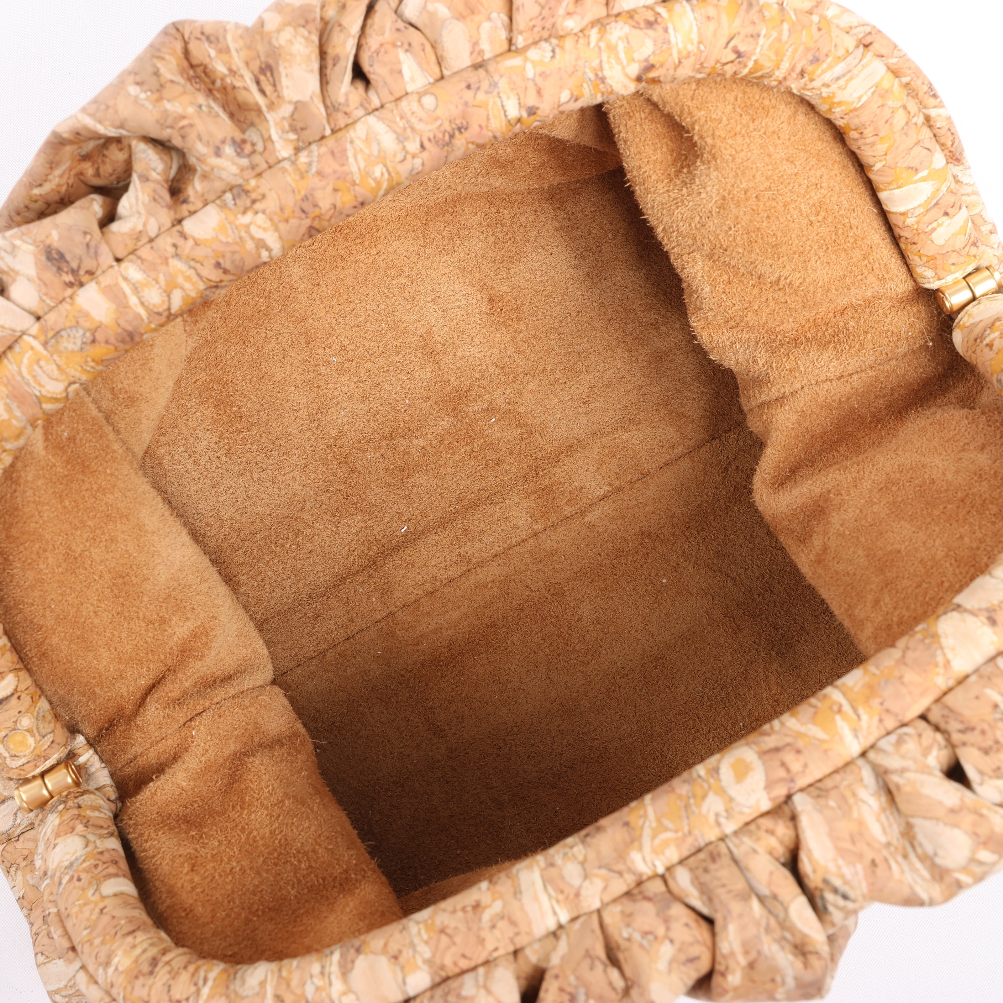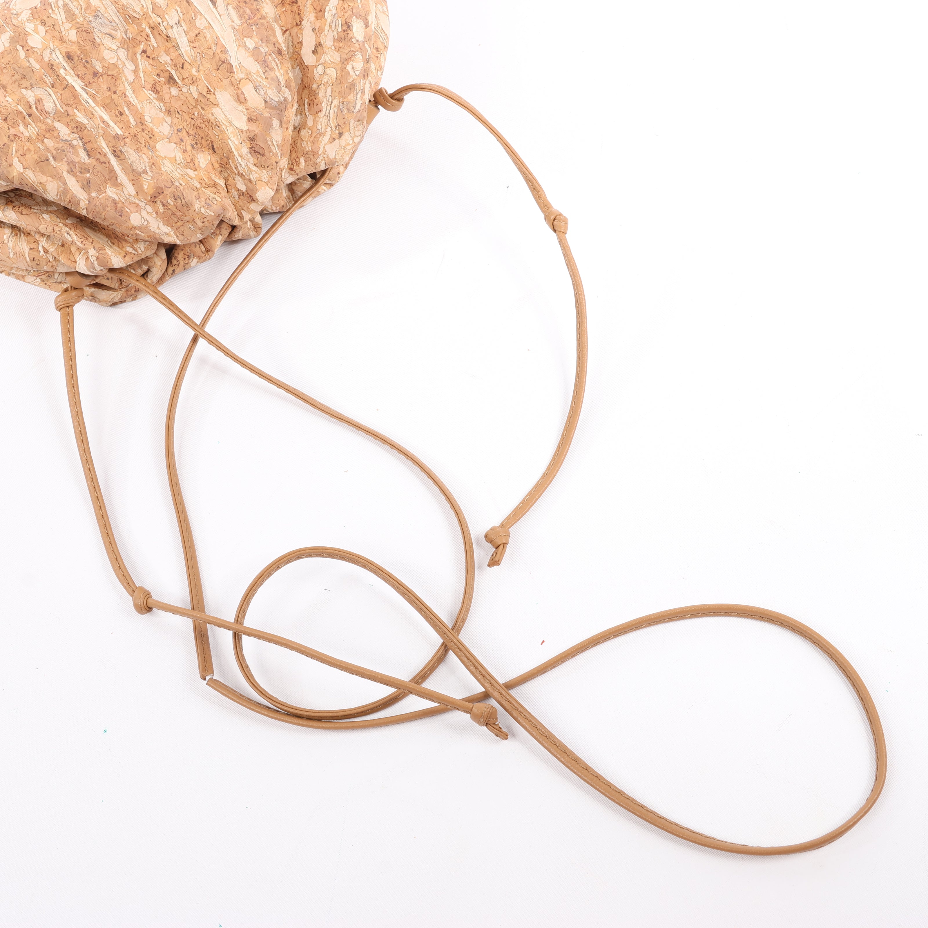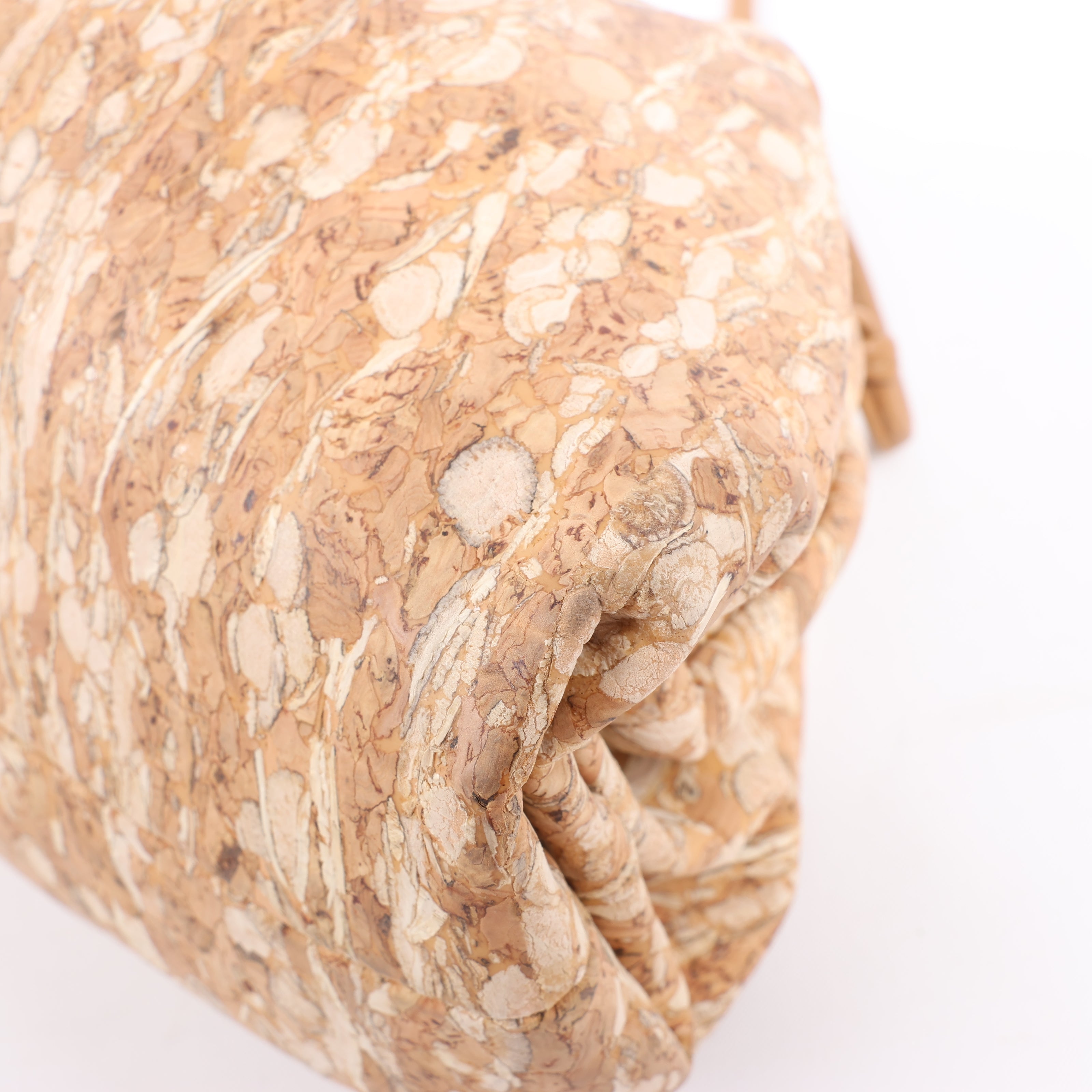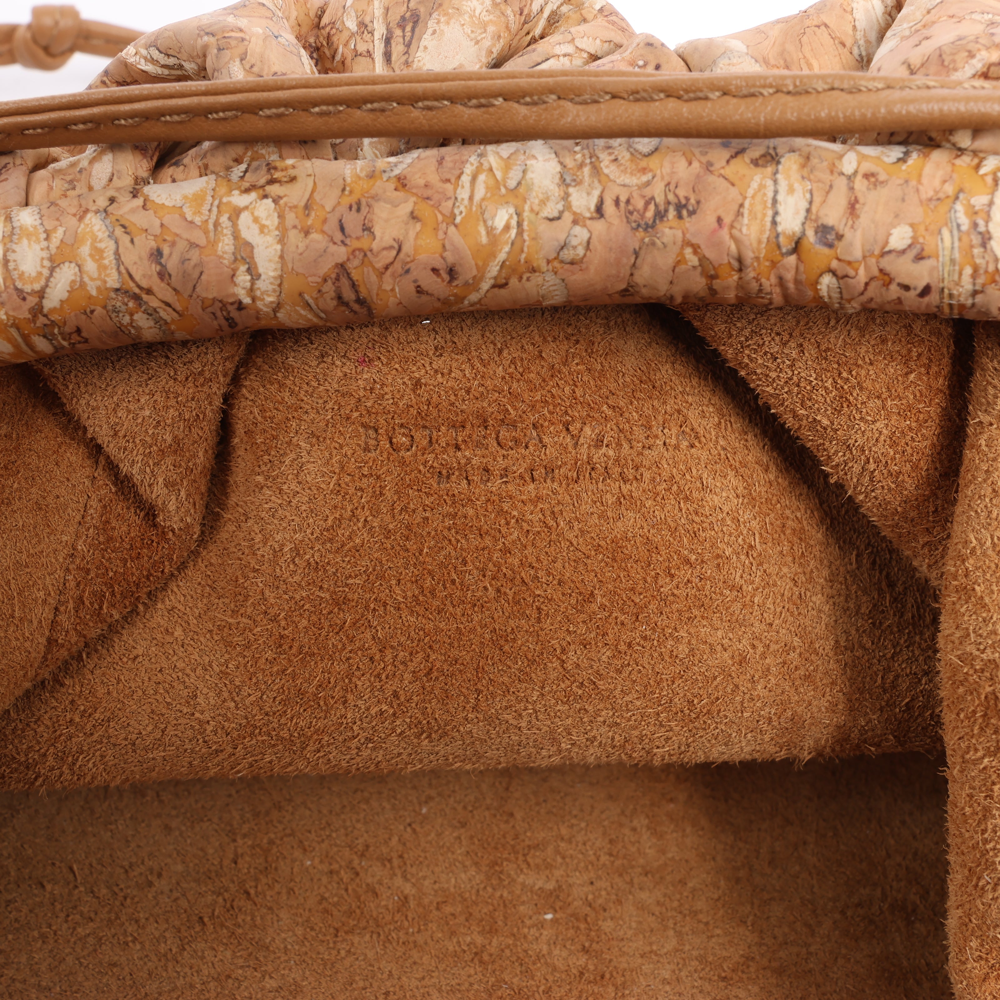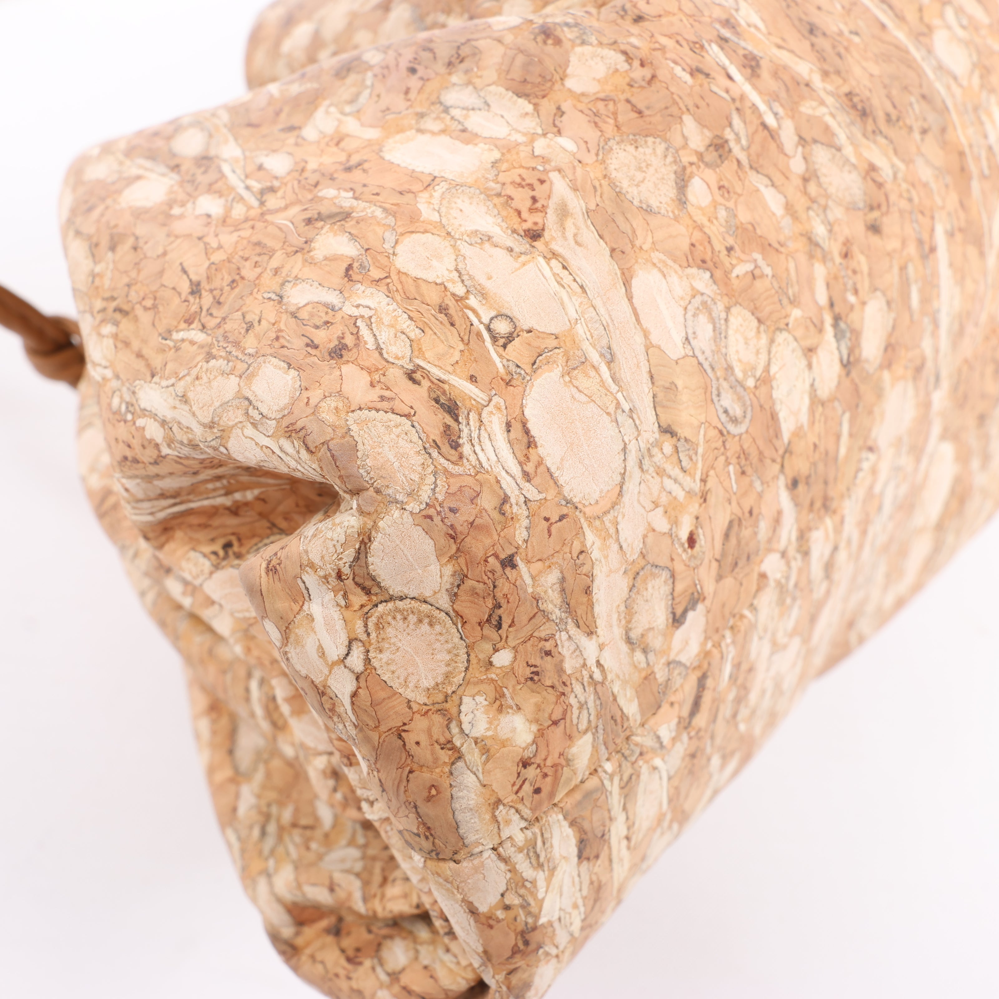 Bottega Veneta Mini The Pouch 20 Crossbody in unique cork material. A chic, lightweight statement with natural textures and a supple gathered silhouette—perfect for effortless luxury on the go.