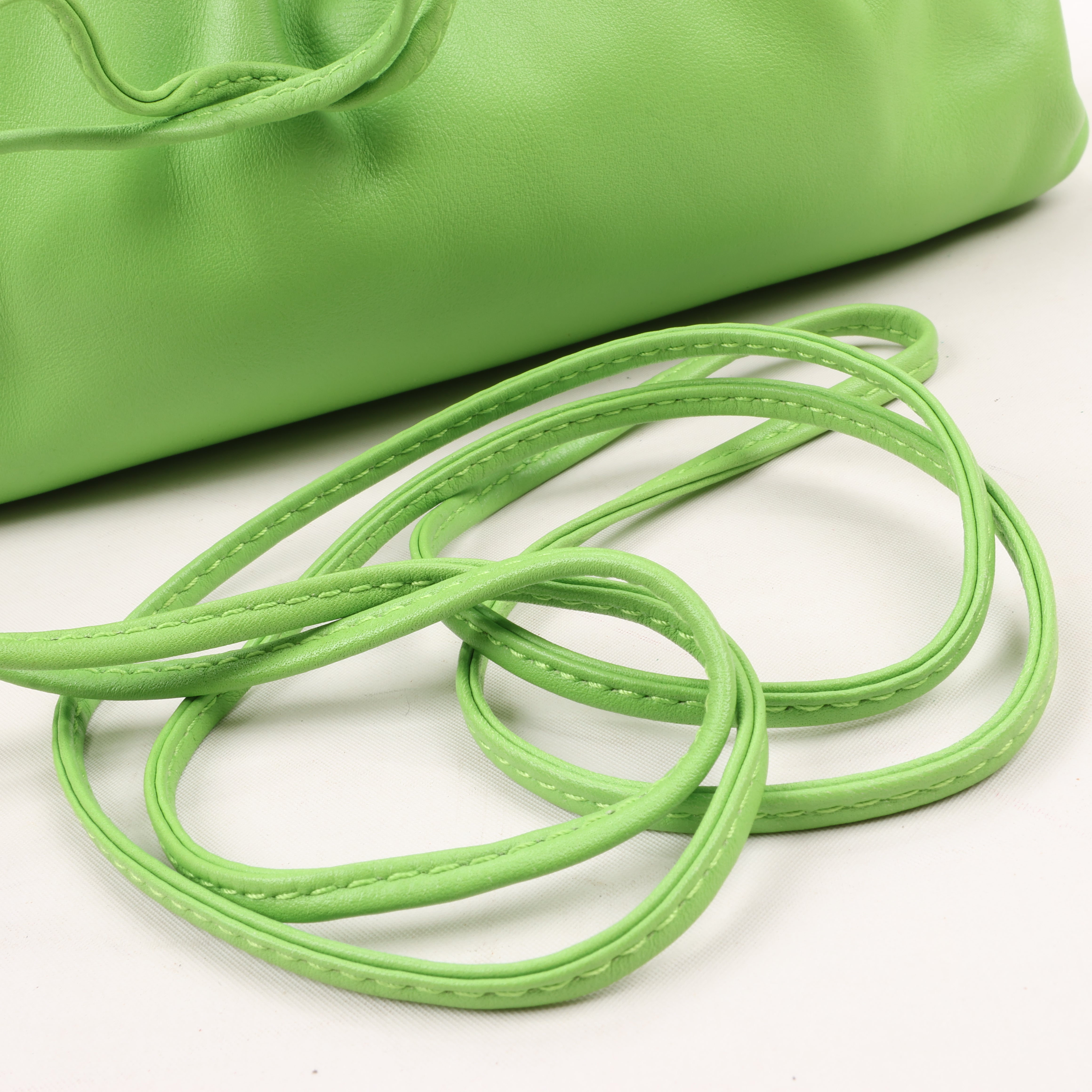 The Bottega Veneta Mini The Pouch Leather Crossbody Bag in Acid Green combines modern minimalism with a bold color statement. Crafted from supple leather, its slouchy silhouette offers a chic, versatile accessory with a crossbody strap for hands-free elegance. Perfect for adding a pop of color to any outfit.