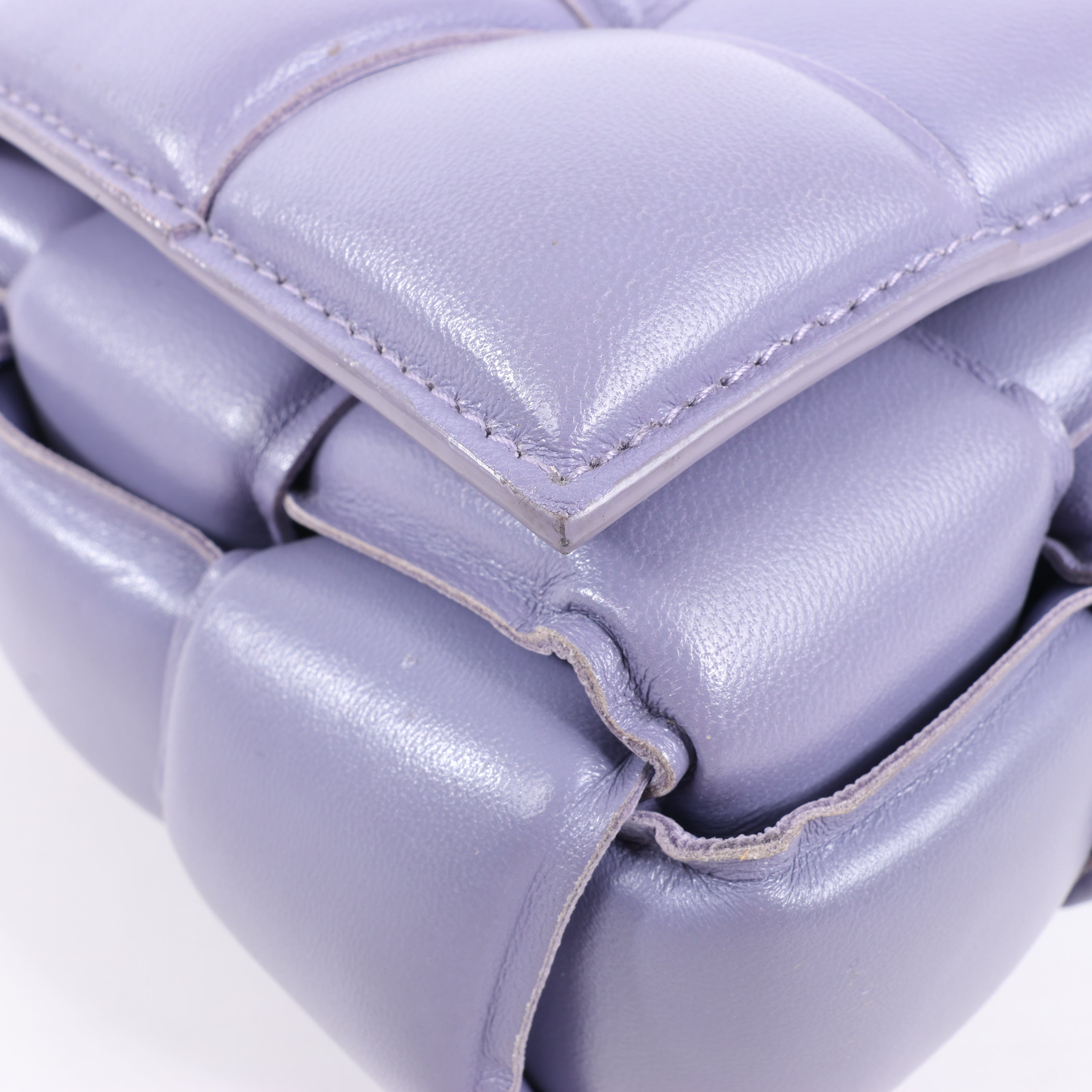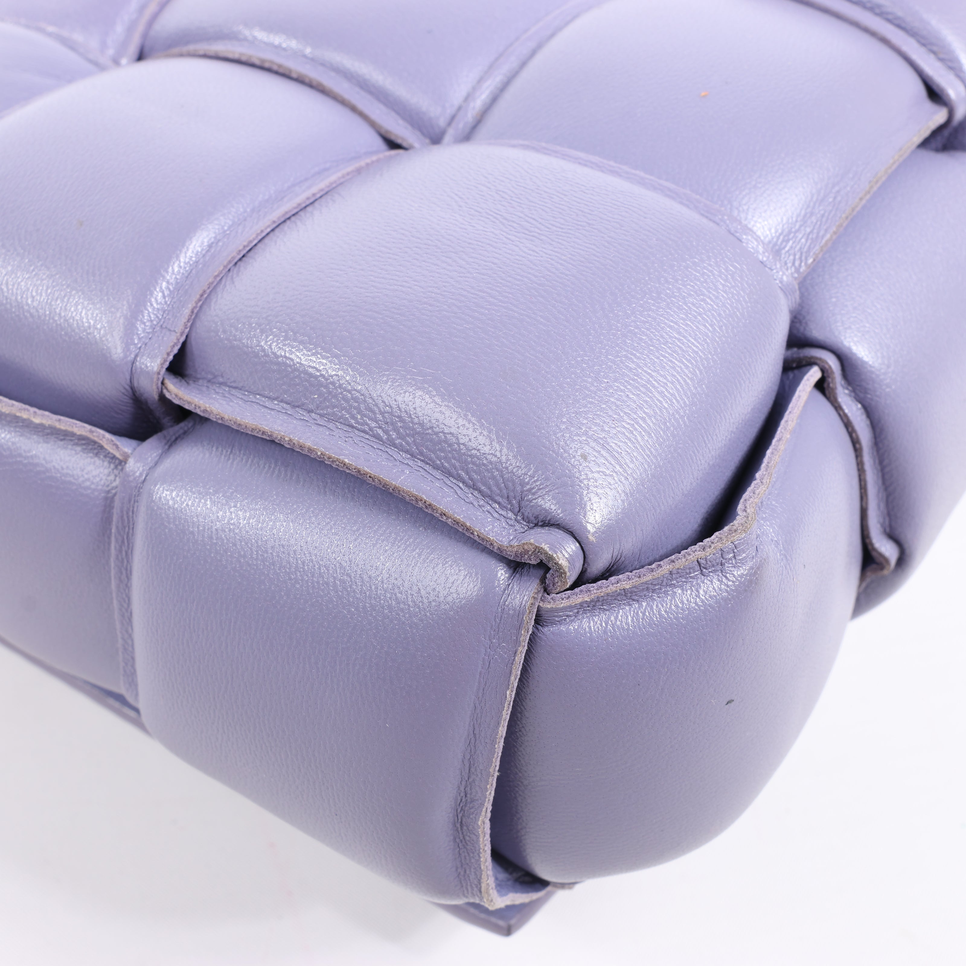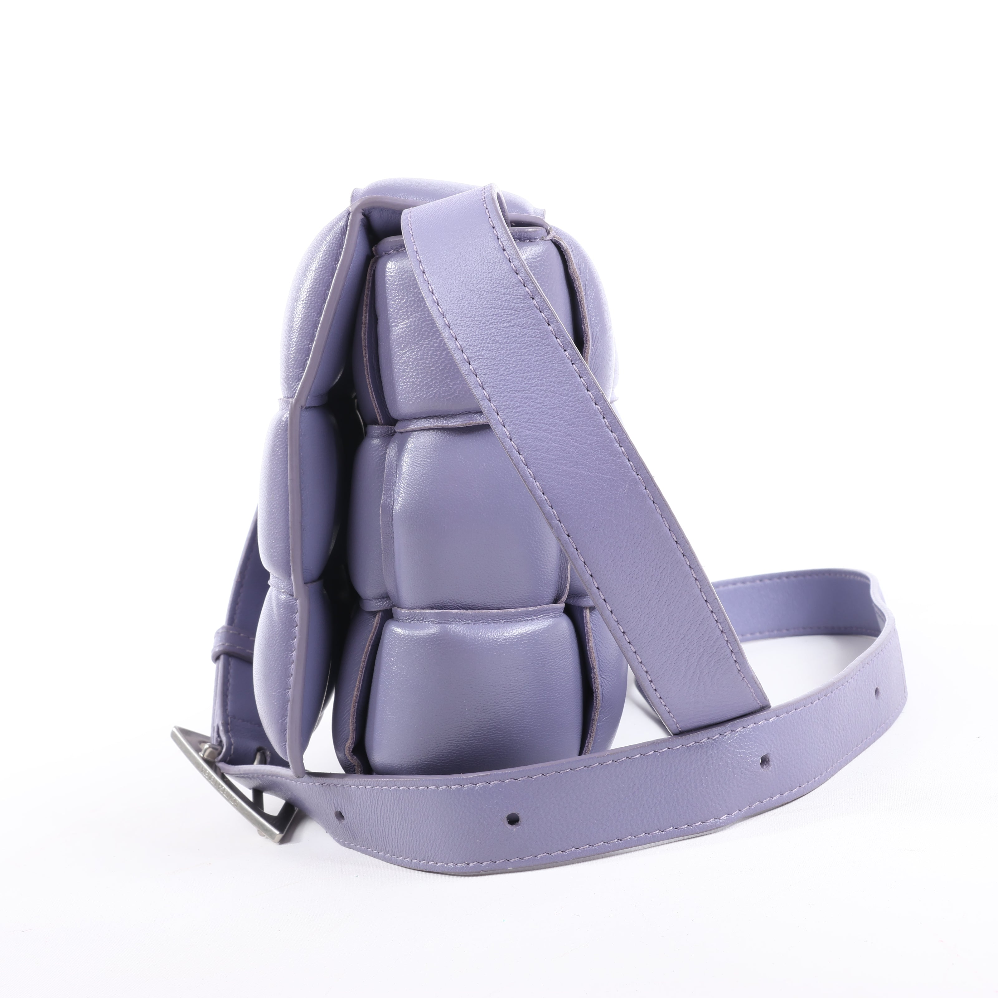 Brand: Bottega Veneta Model: Padded Cassette Size: -Width: 23 cmHeight: 15 cmExterior Condition: ExcellentInterior Condition: Excellent Condition Details: The exterior leather is clean and beautiful. The strap is in good condition, except some creases. The hardware is bright and crisp The interior is clean and in great condition.Colour: PurpleInterior Colour: PurpleHardware Colour: SilverMaterial: LeatherComes With: -