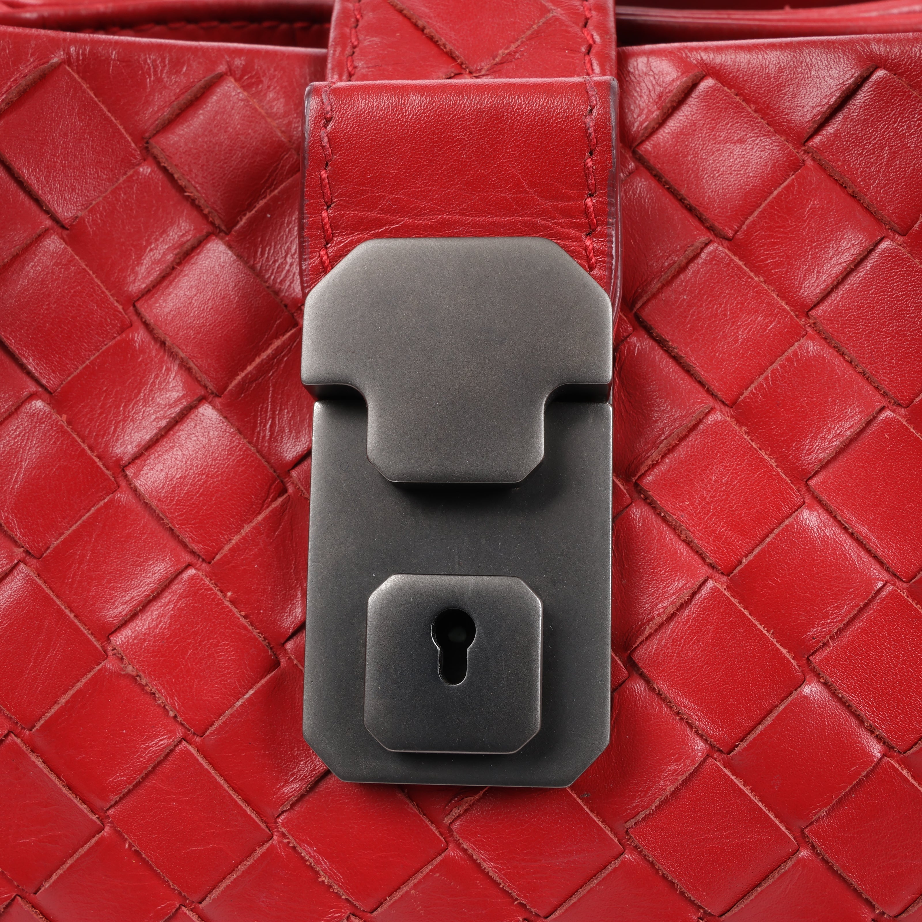 Bottega Veneta Intrecciato Roma Leather Handbag in Red Secondhand