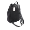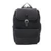 This backpack features a nylon body, a leather top handle, adjustable flat back shoulder straps, a front flap with buckle and drawstring closure, an exterior front flap pocket, and an interior zip pocket. Retail Price: 2900.00