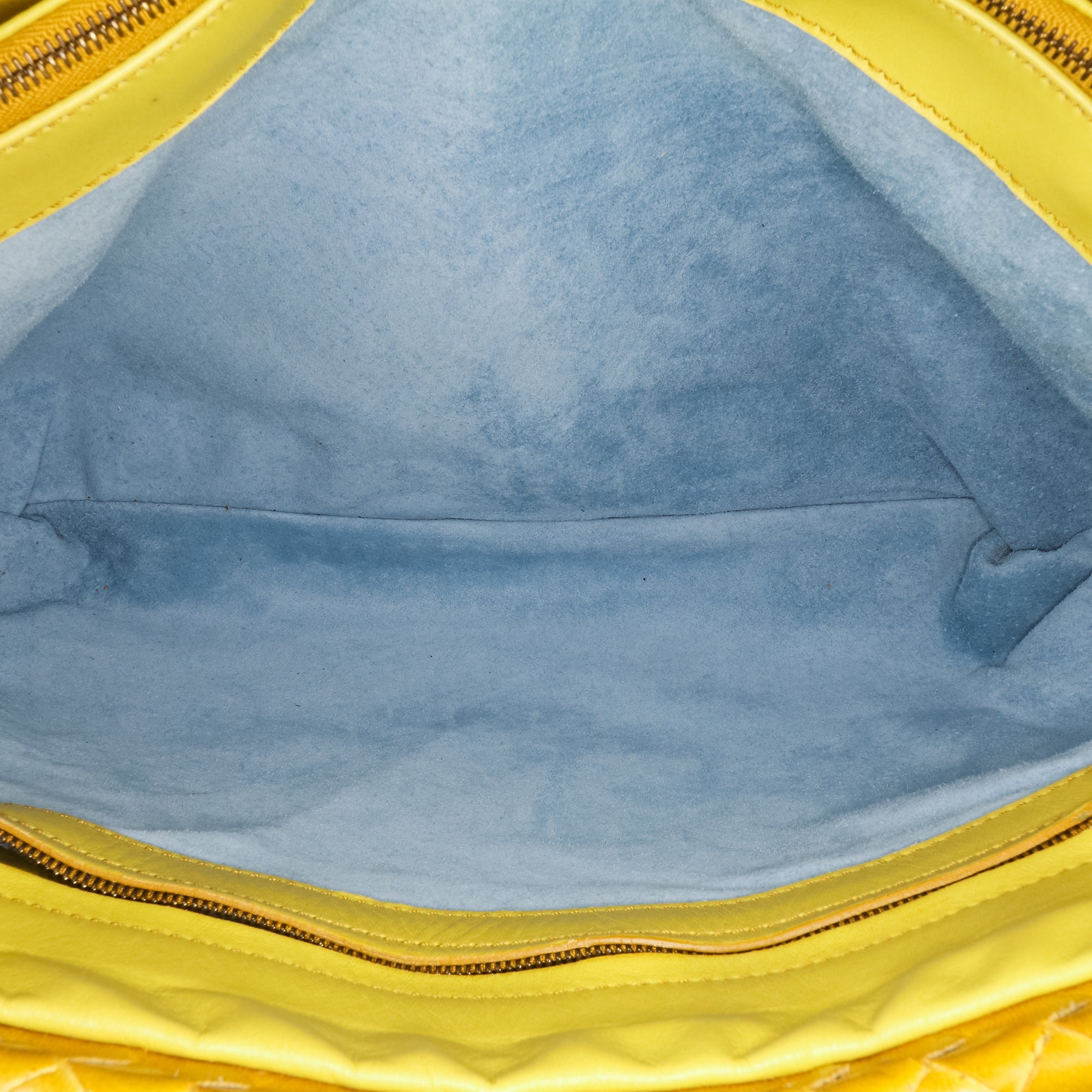 This tote bag features a woven leather body, flat leather straps, an open top, an interior zip compartment, and interior zip and slip pockets. Retail Price: 3650.00