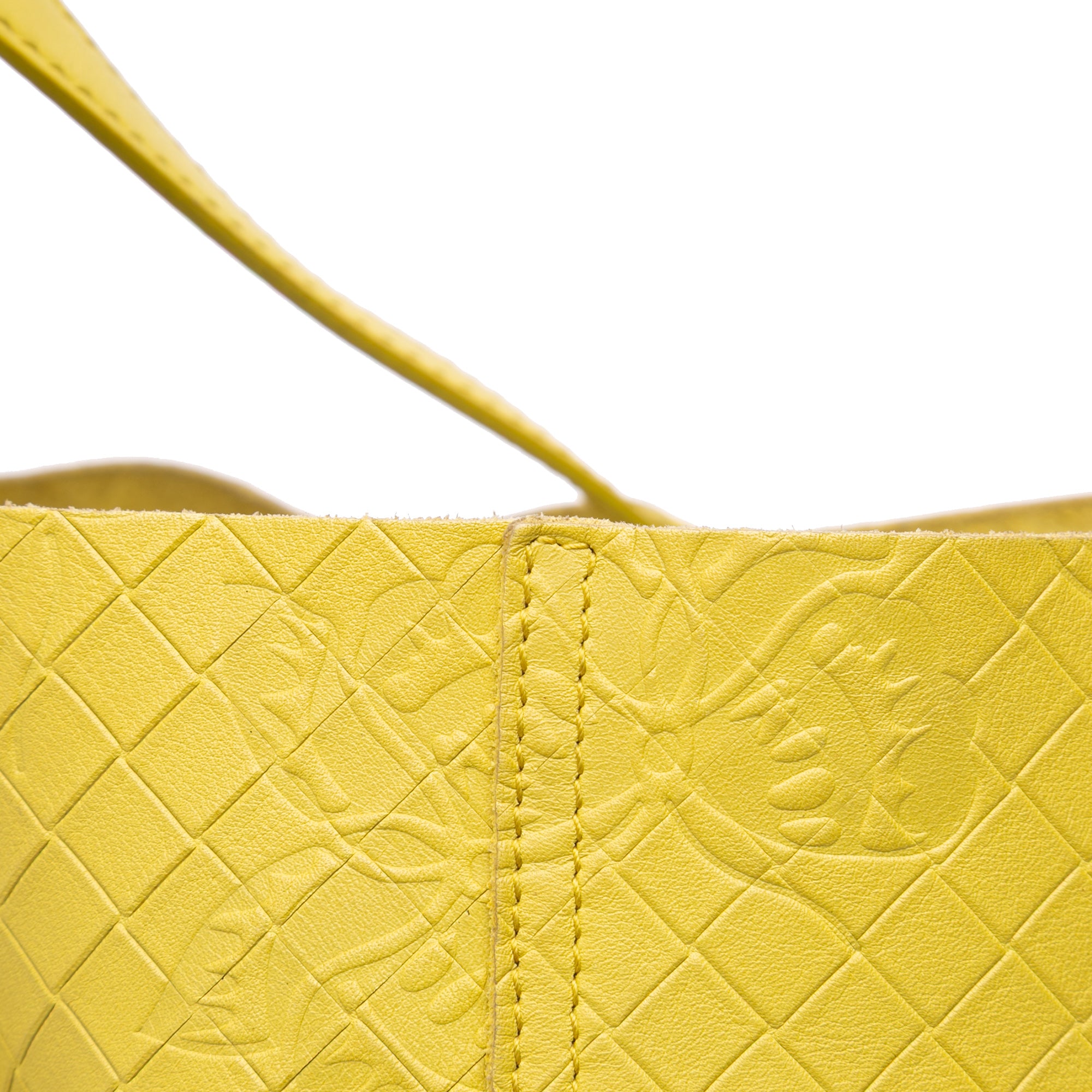 This tote bag features an embossed leather body, flat leather shoulder straps, and an open top. Retail Price: 1320.00