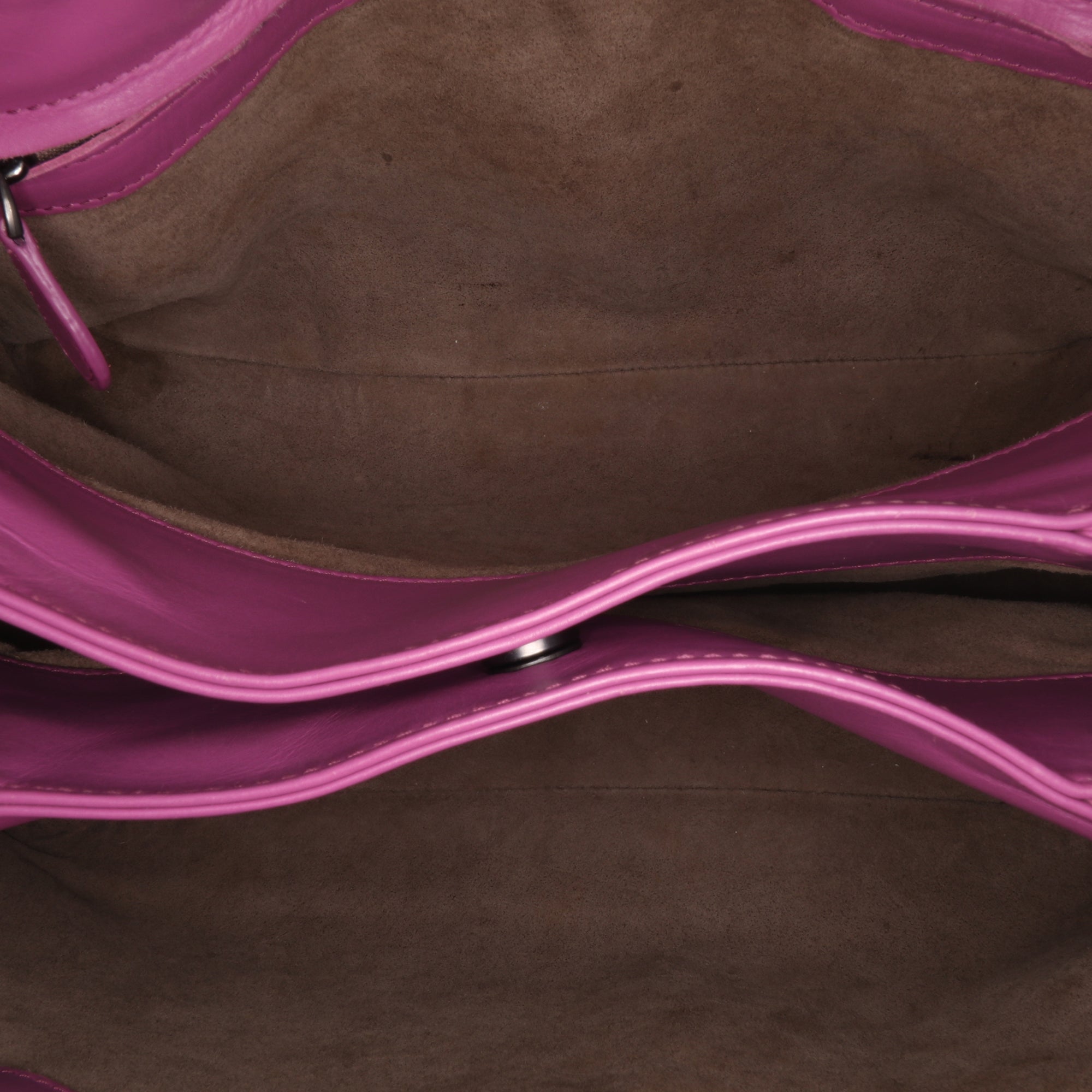 The Roma features a woven nappa leather body, rolled leather handles, detachable flat leather strap, a top strap with a push lock and magnetic closure, interior compartments, and interior zip and slip pockets. Retail Price: 3293.00