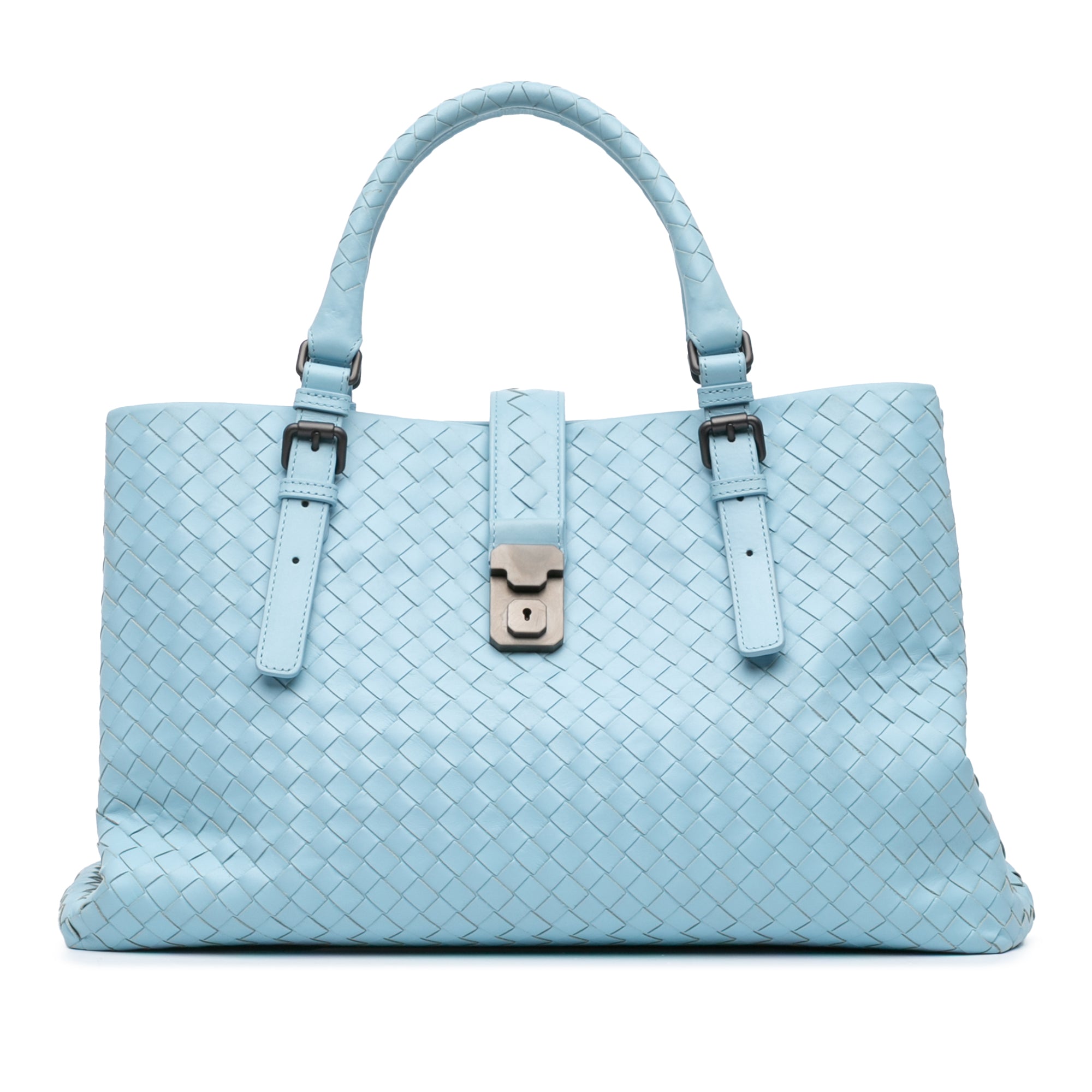 The Roma features a woven leather body, rolled handles, a top strap with a push lock and magnetic closure, interior compartments, and an interior zip pocket. Inclusion: Dust bag. Retail Price: 3900.00