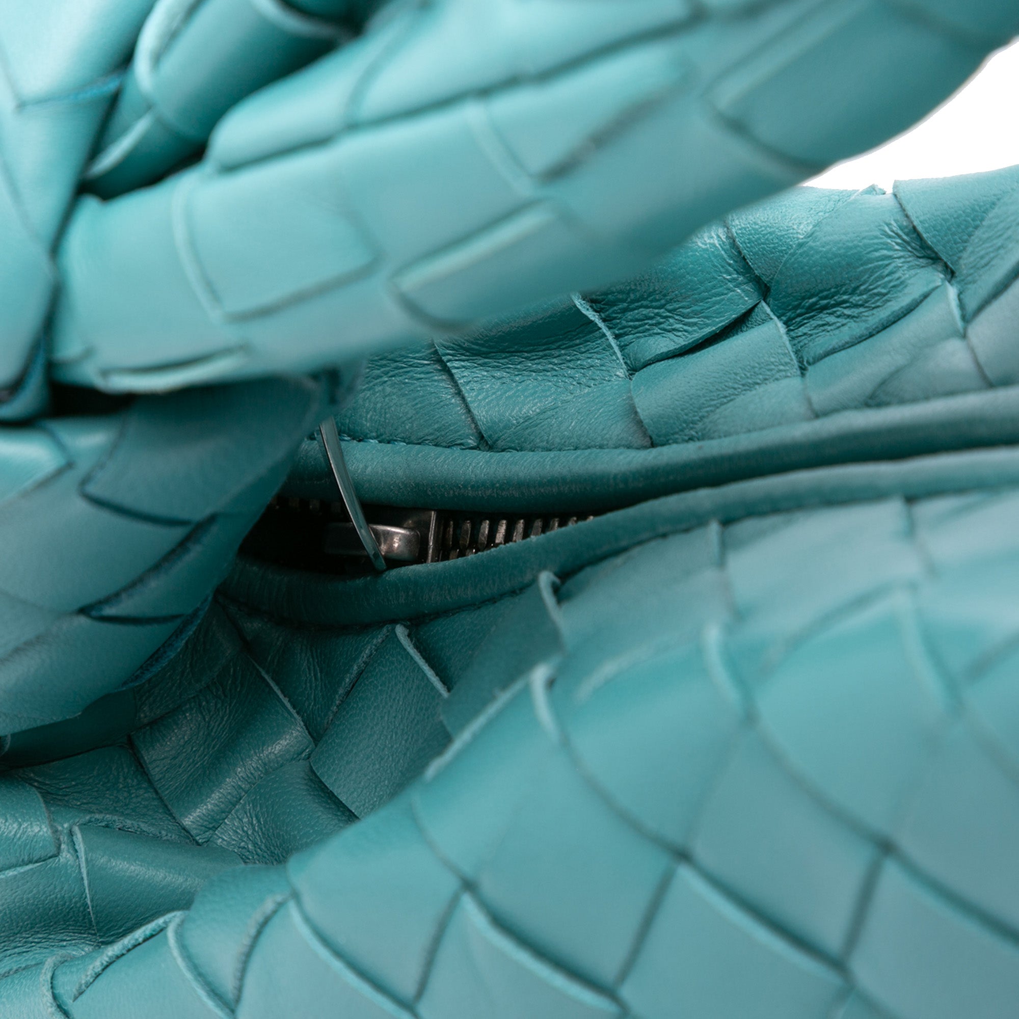The Intrecciato Jodie features a woven leather body, a woven shoulder strap, and a top zip closure. Retail Price: 2650.00