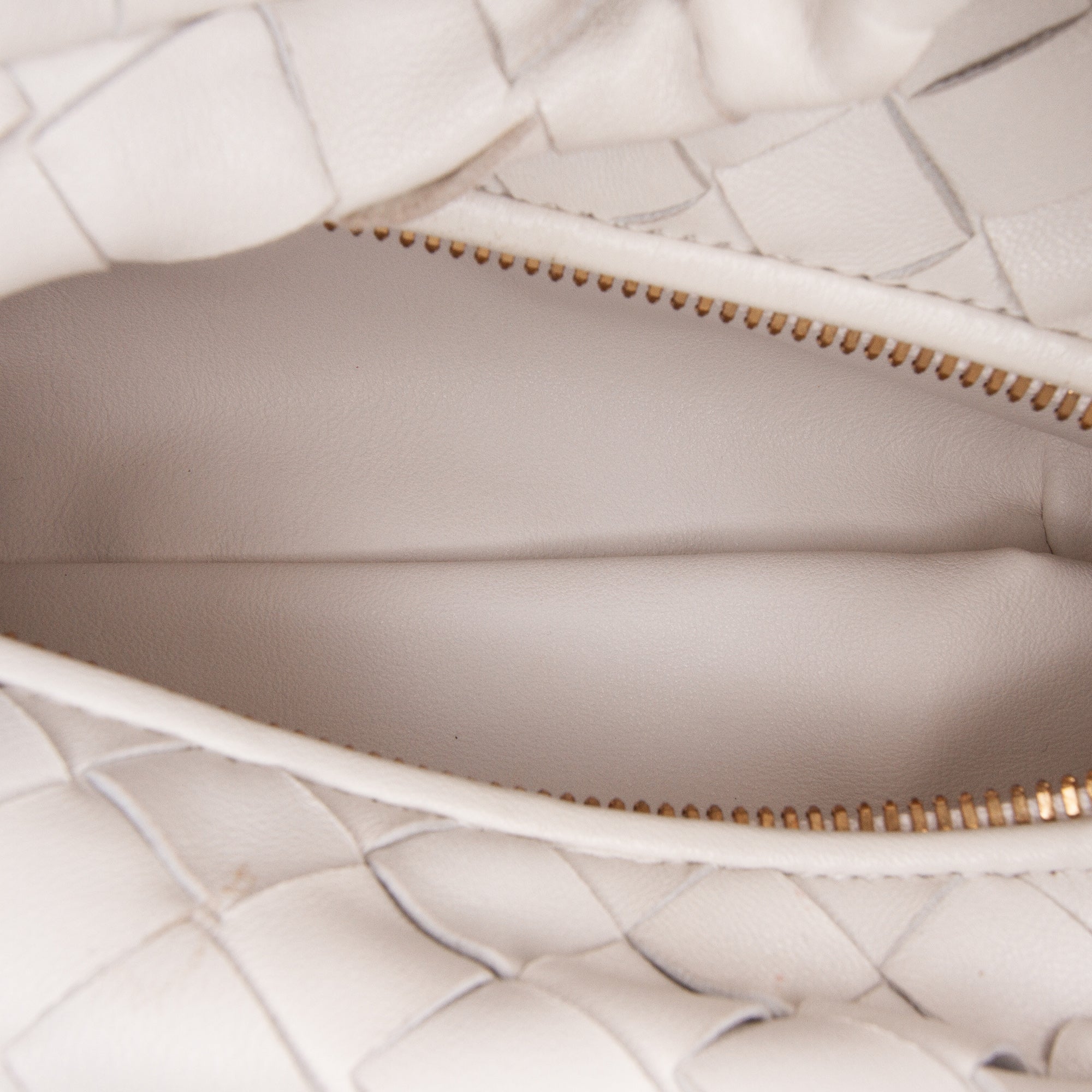 The Intrecciato Jodie features a woven leather body, a woven leather handle, and a top zip closure. Retail Price: 2650.00