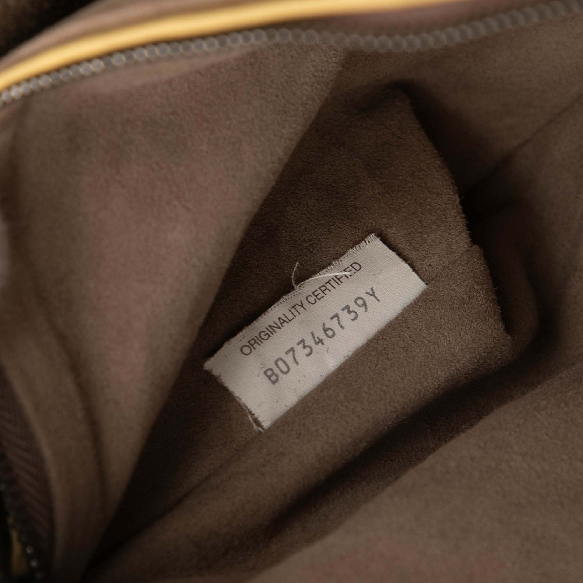 This crossbody features a woven leather body with grommet details, flat leather straps, a top zip closure, and interior zip and slip pockets. Retail Price: 3750.00