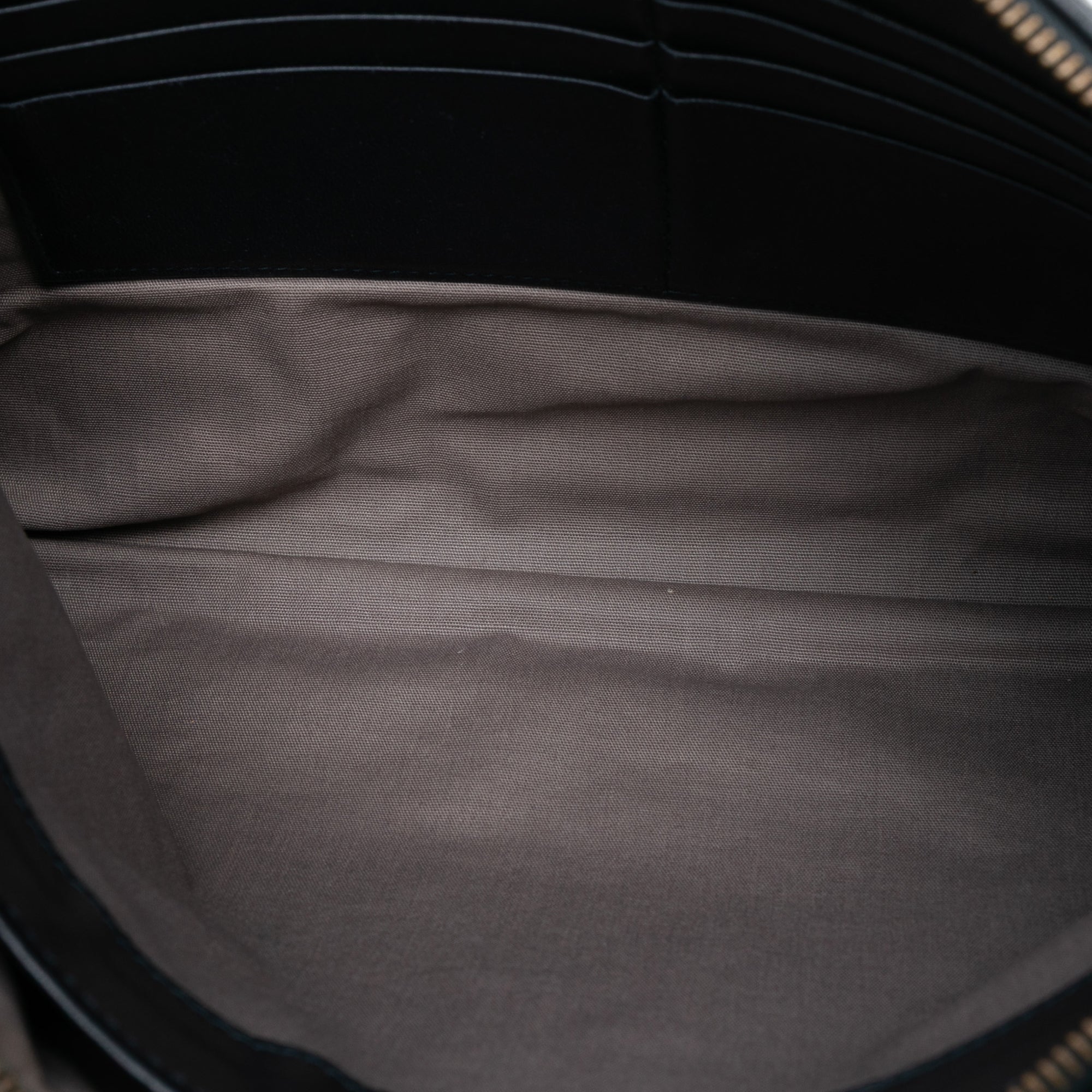 This clutch bag features a woven leather body, a top zip closure, and interior slip pockets. Retail Price: 1300.00