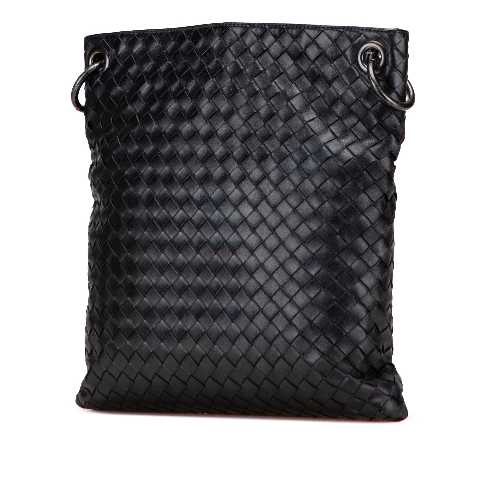 This crossbody bag features a woven leather body, an adjustable flat shoulder strap, an open top, and an interior zip pocket. Inclusion: Dust bag. Retail Price: 1450.00