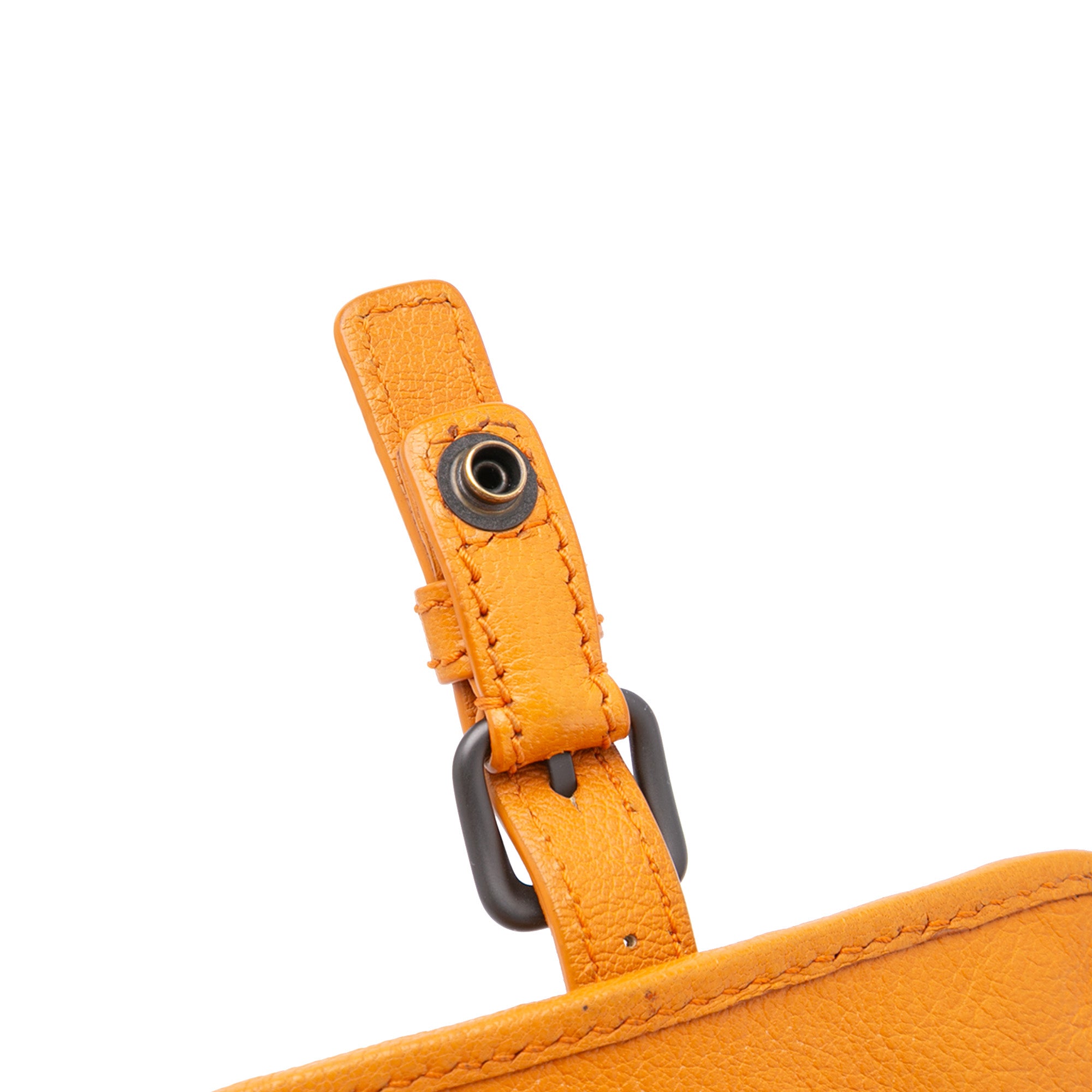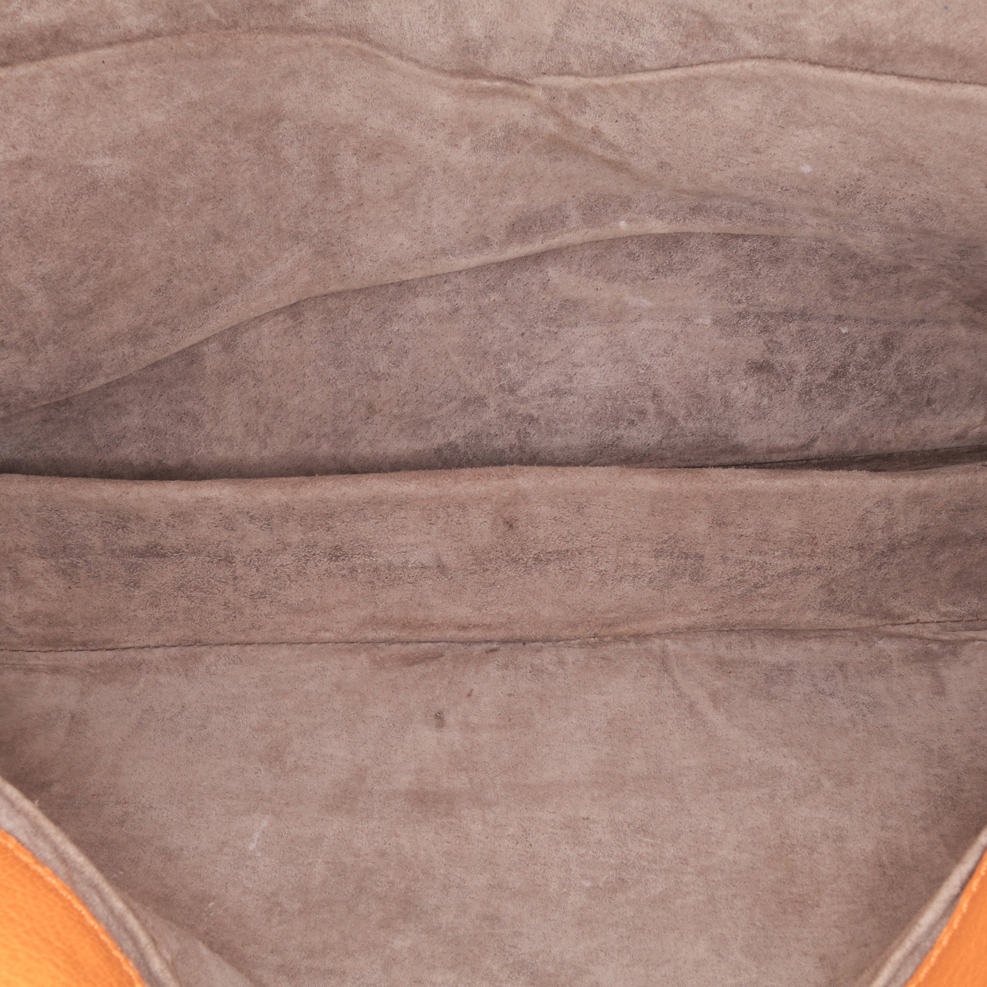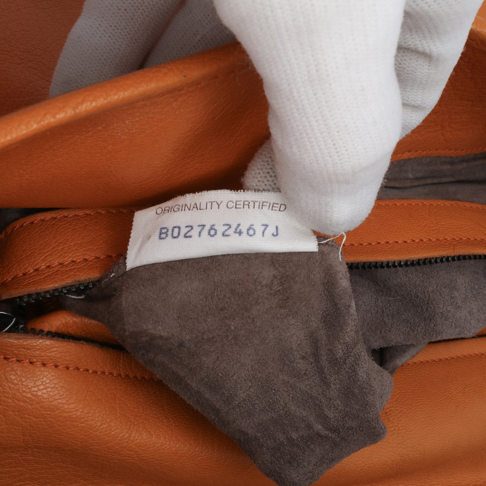 This shoulder bag features a woven leather body, a flat leather shoulder strap, a front flap with buckle closures, an exterior back zip pocket, and interior zip and slip pockets. Retail Price: 1650.00