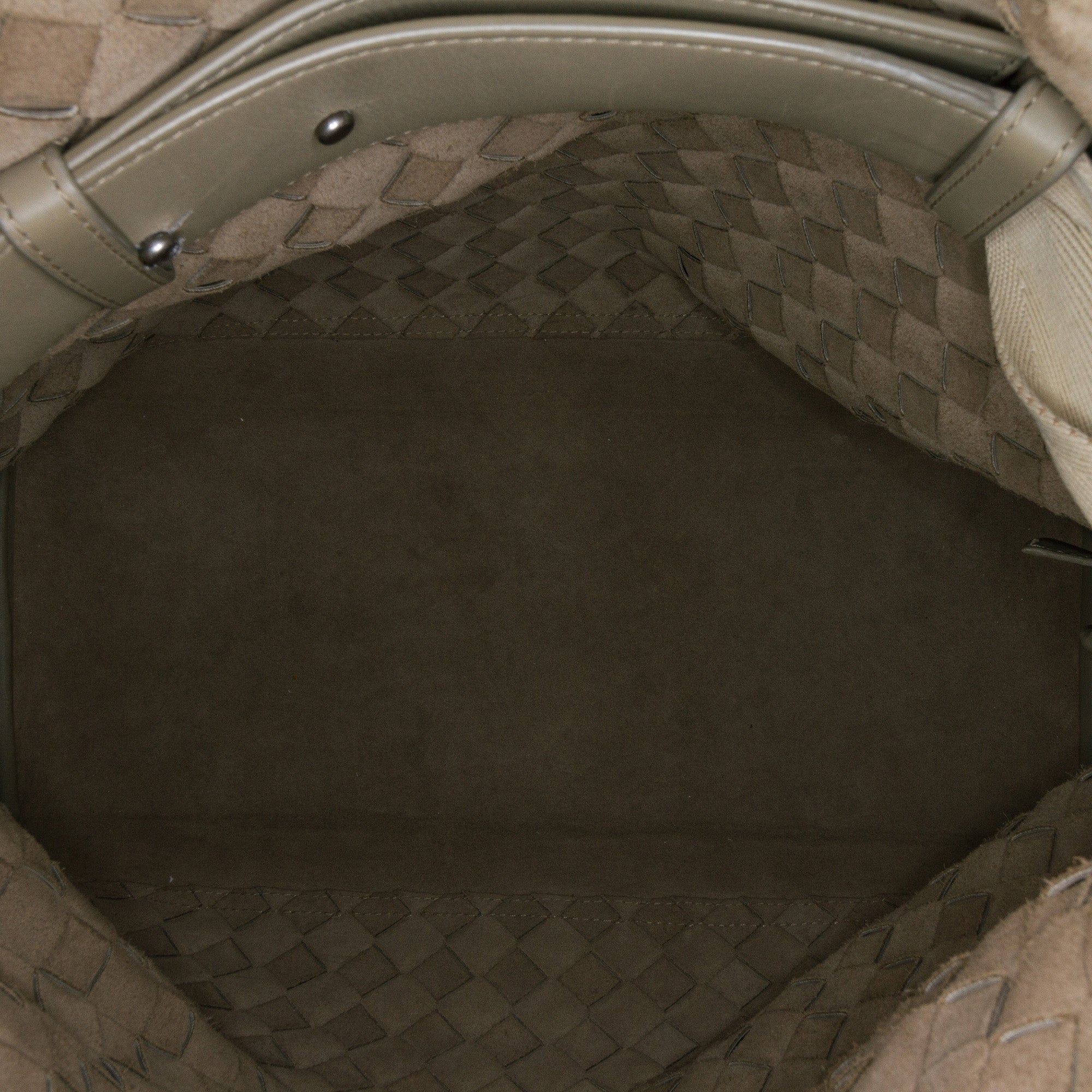 This crossbody bag features a woven nappa leather body, an adjustable flat shoulder strap, an open top with a fold-over closure, and an interior slip pocket.. Retail Price: 3800.00