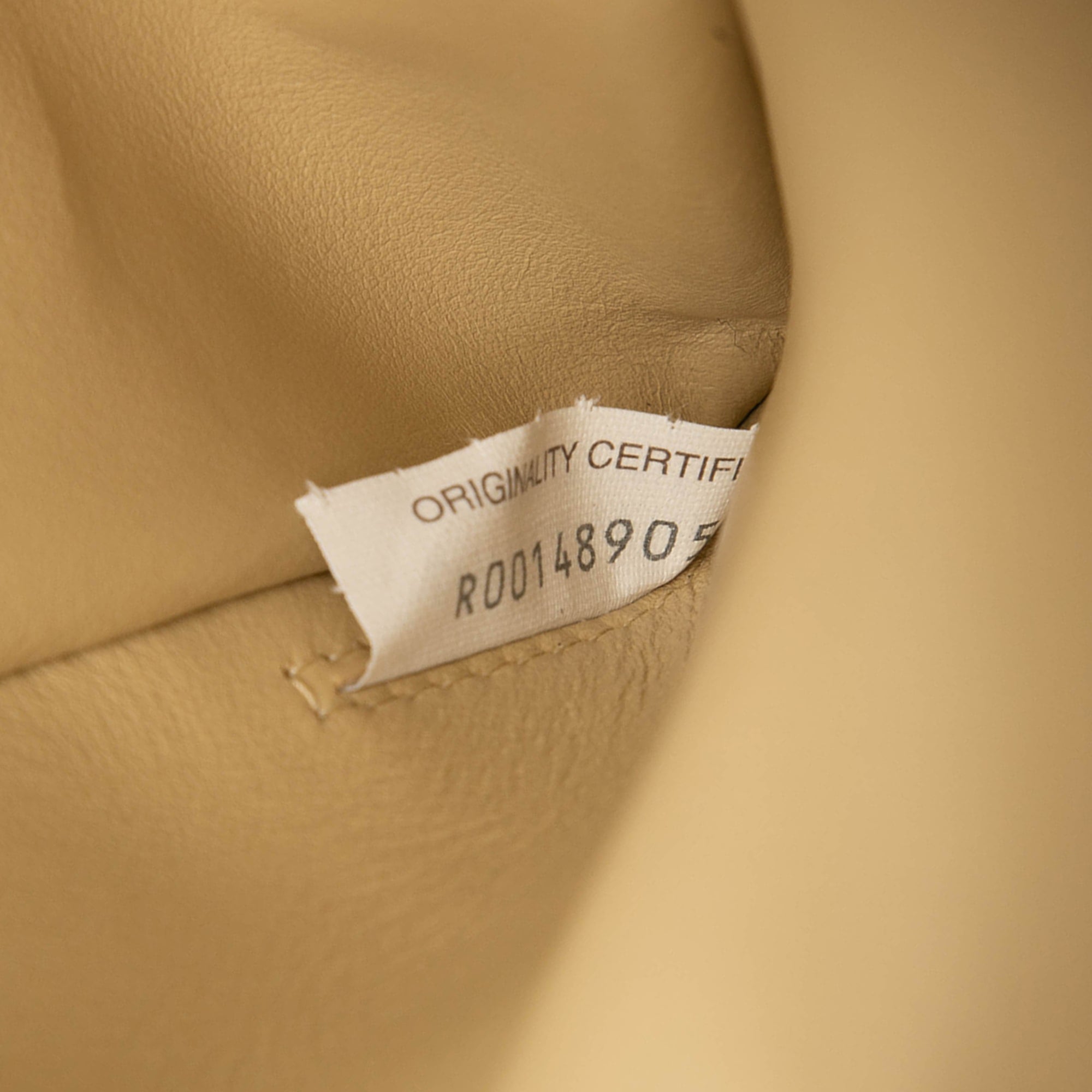 This shoulder bag features a woven nappa leather body, a flat leather strap, a flap with magnetic snap closures, and interior compartments. Inclusion: Dust bag. Retail Price: 2770.00