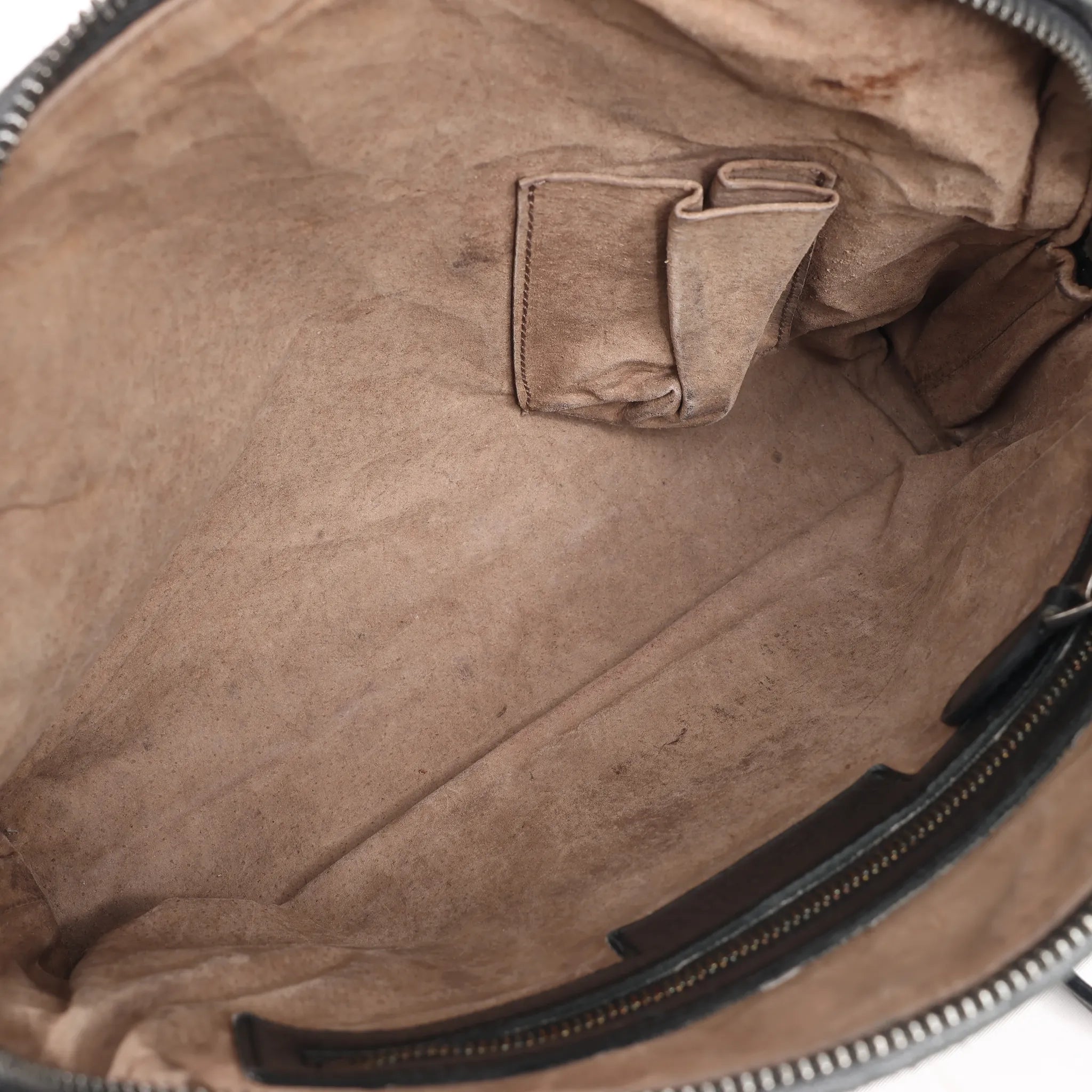 Brand: Bottega Veneta Model: Nodini Size: -Width: 23 cmHeight: 20 cmExterior Condition: Very goodInterior Condition: Very goodCondition Details: The exterior leather is very good condition, with some rubbings. The strap is in good condition with light crease, also has unglued part. The interior suede is in good condition, but have some usage signs as stains.Colour: BlackInterior Colour: TaupeHardware Colour: Dark SilverMaterial: LeatherComes With: -