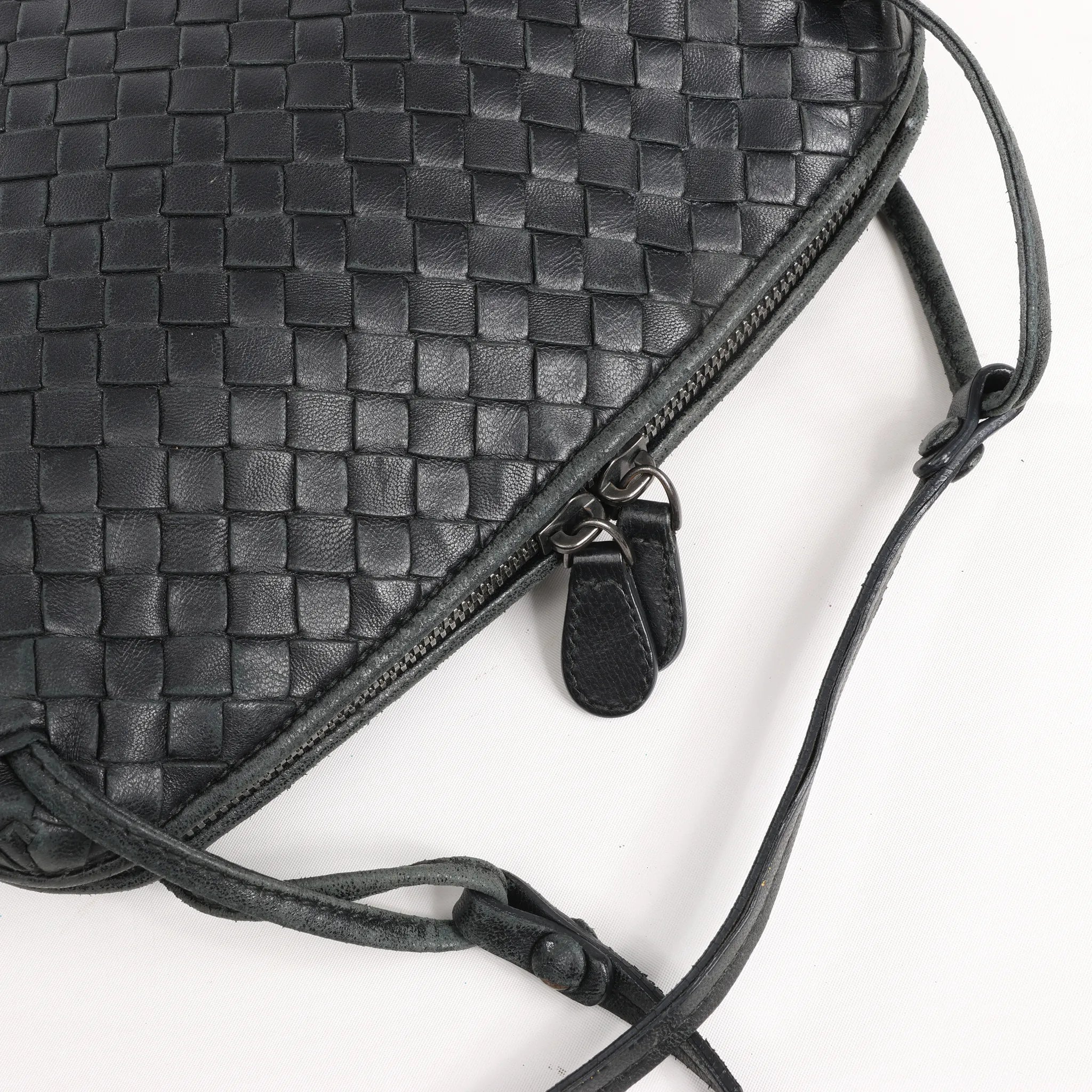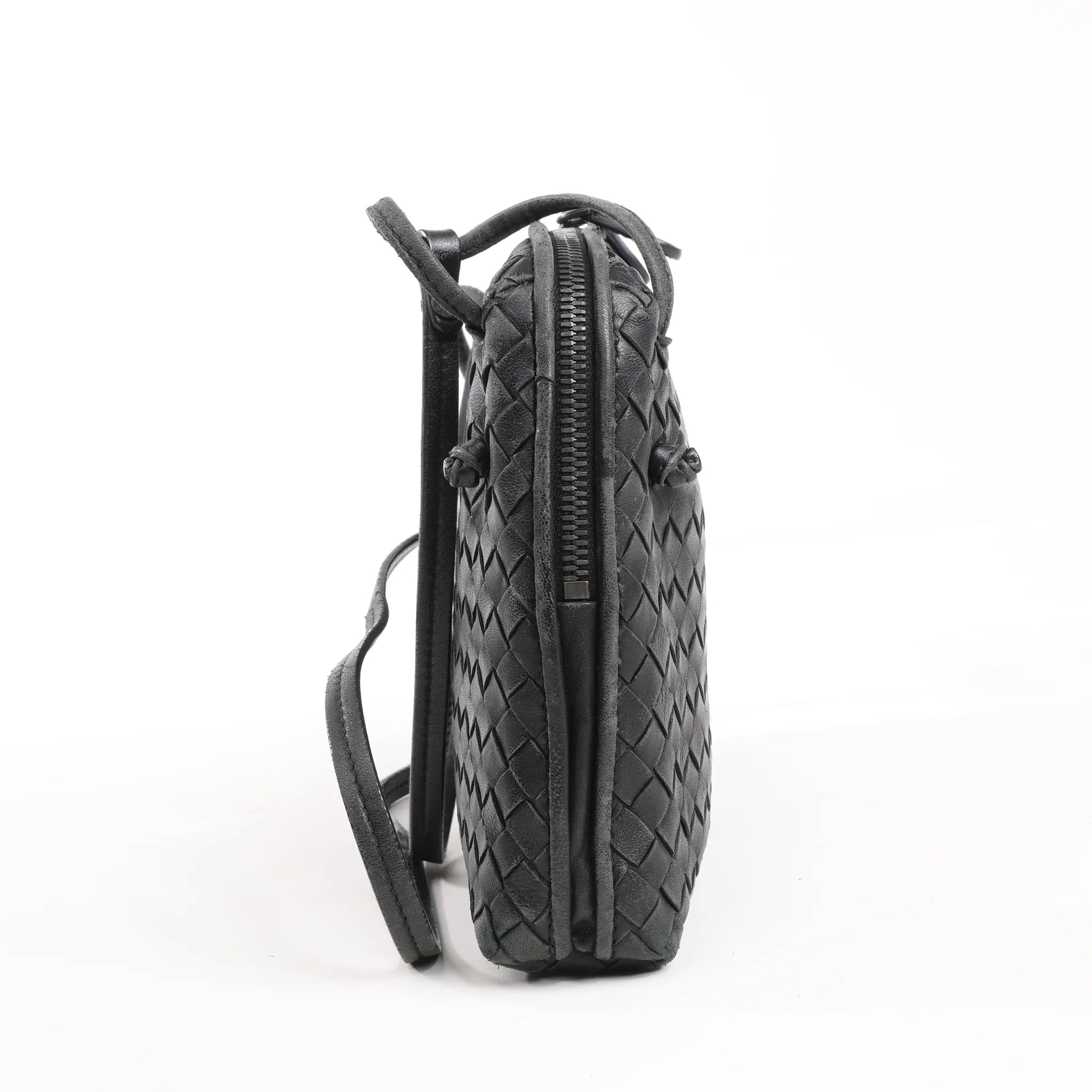 Bottega Veneta Nodini Intrecciato Leather Crossbody Bag in Black