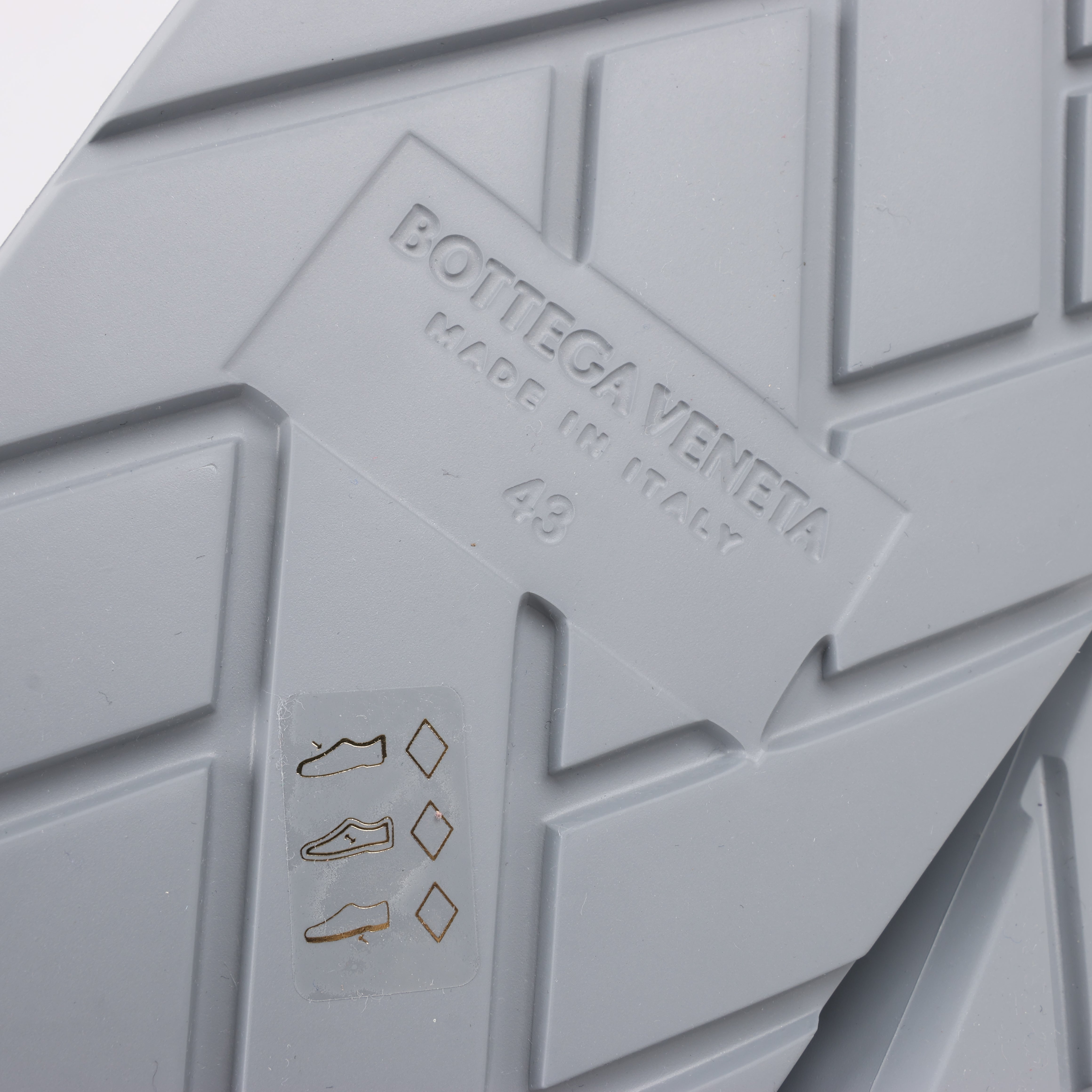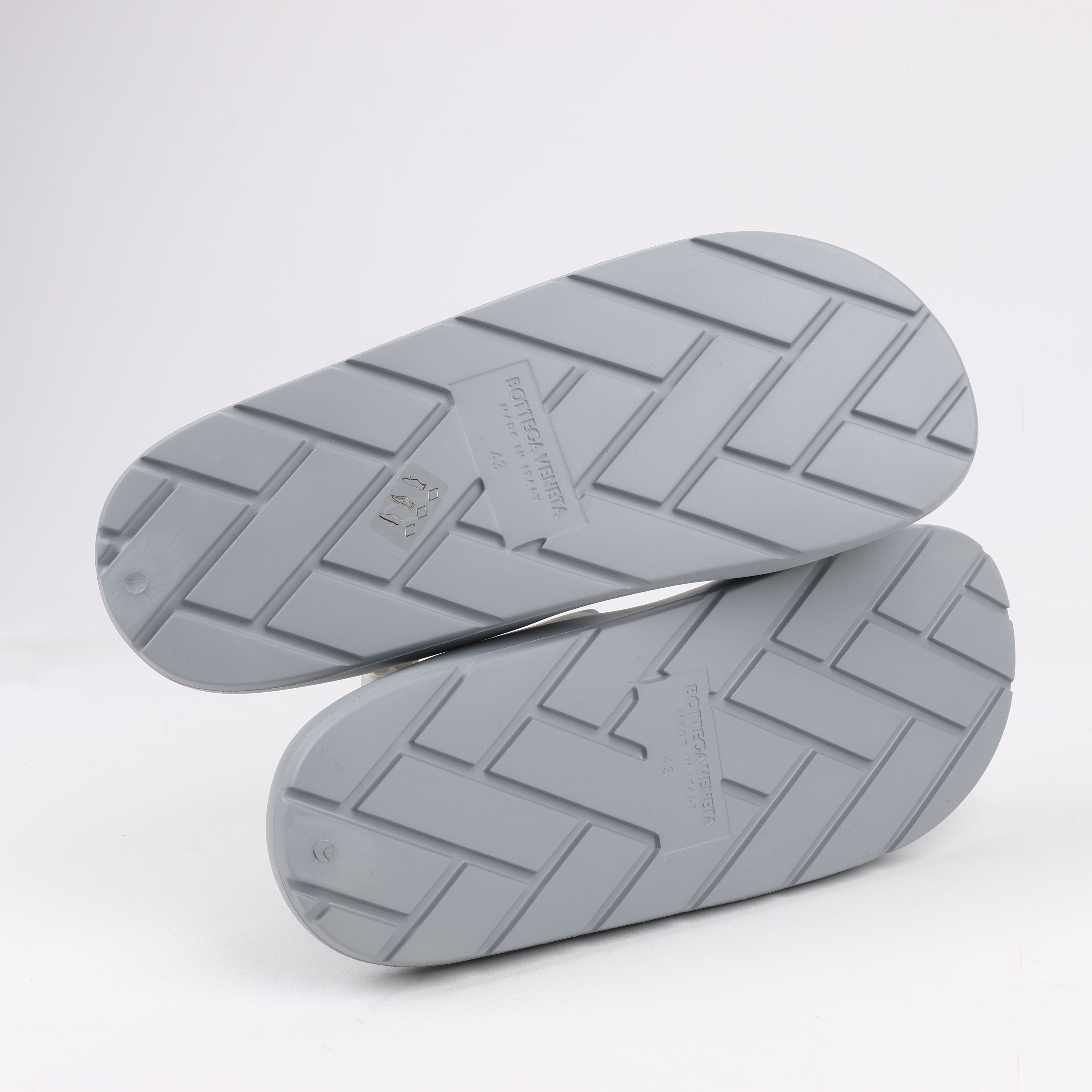 Brand: Bottega VenetaSize: 43 EUApprox. lenght: 29 cmCondition: Never wornCondition Details: -Colour: GreyMain material: RubberProduct Code: -Manufactured In: ItalyComes With: Dustbags