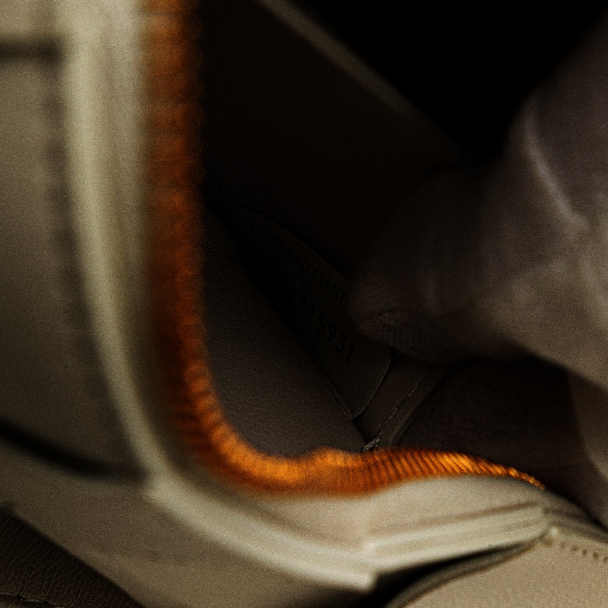 This shoulder bag features a woven lambskin leather body, a flat leather shoulder strap, a top zip closure, and an interior slip pocket. Inclusion: Dust bag, box. Retail Price: 2600.00