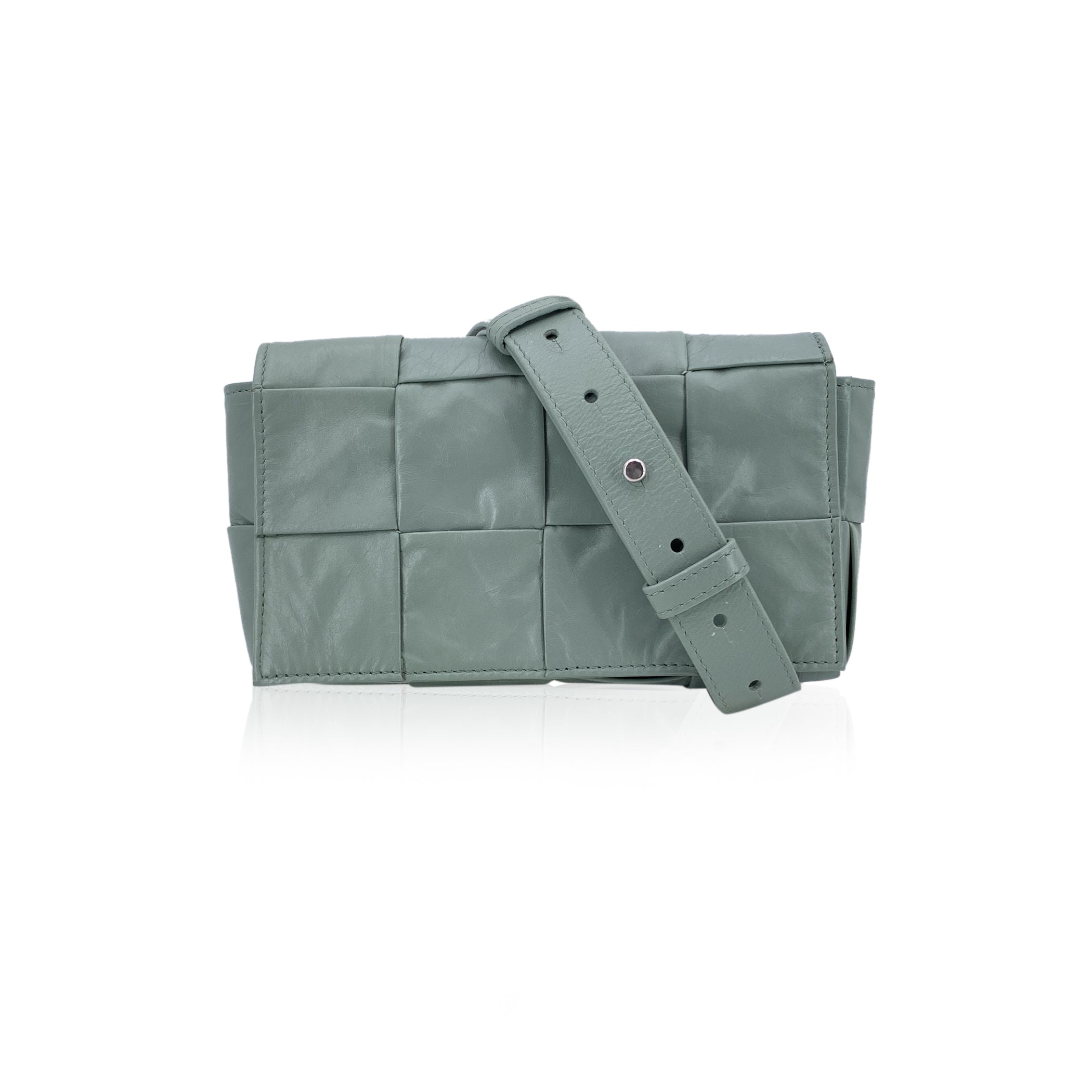 This Beautiful Bag Will Come With a Certificate Of Authenticity Provided By Entrupy. The Certificate Will Be Provided At No Further Cost Sleek, Modern, And Unmistakably Bottega - The Cassette Belt Bag In Sage Green Leather Is a Refined Take On Everyday Essentials. Showcasing The House's Signature Intrecciato Weave, This Compact Piece Embodies Minimalist Luxury With a Tactile Edge. Designed For Versatility, It Features An Adjustable Strap (60-110 Cm), Allowing It To Be Worn Around The Waist Or Across The Body With Ease. The Interior Includes a Single Side Open Pocket, Offering Just Enough Space For Your Daily Must-haves. Perfectly Unisex And Effortlessly Stylish, This Belt Bag Is More Than An Accessory - It's a Quiet Statement Of Taste, Craftsmanship, And Modern Functionality.