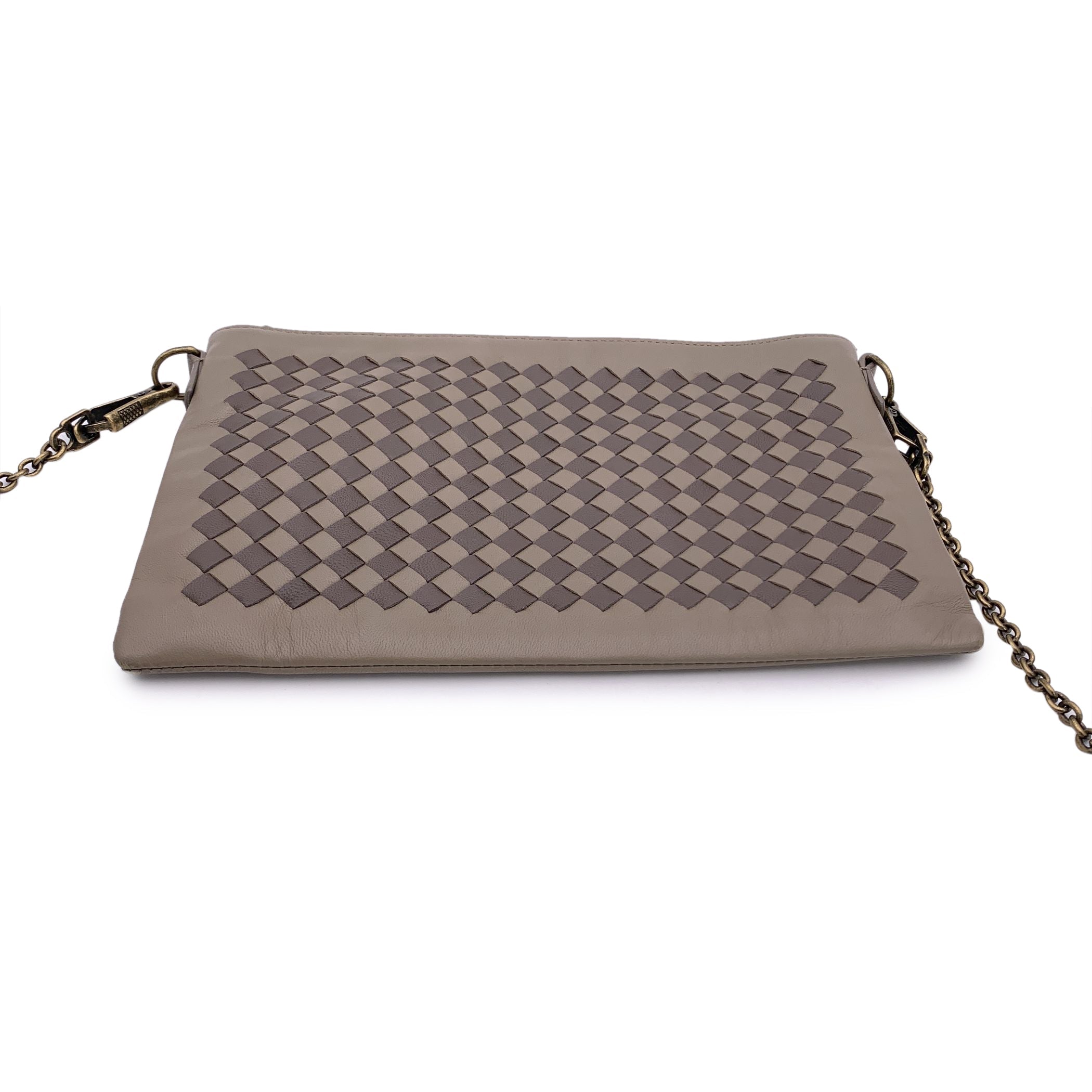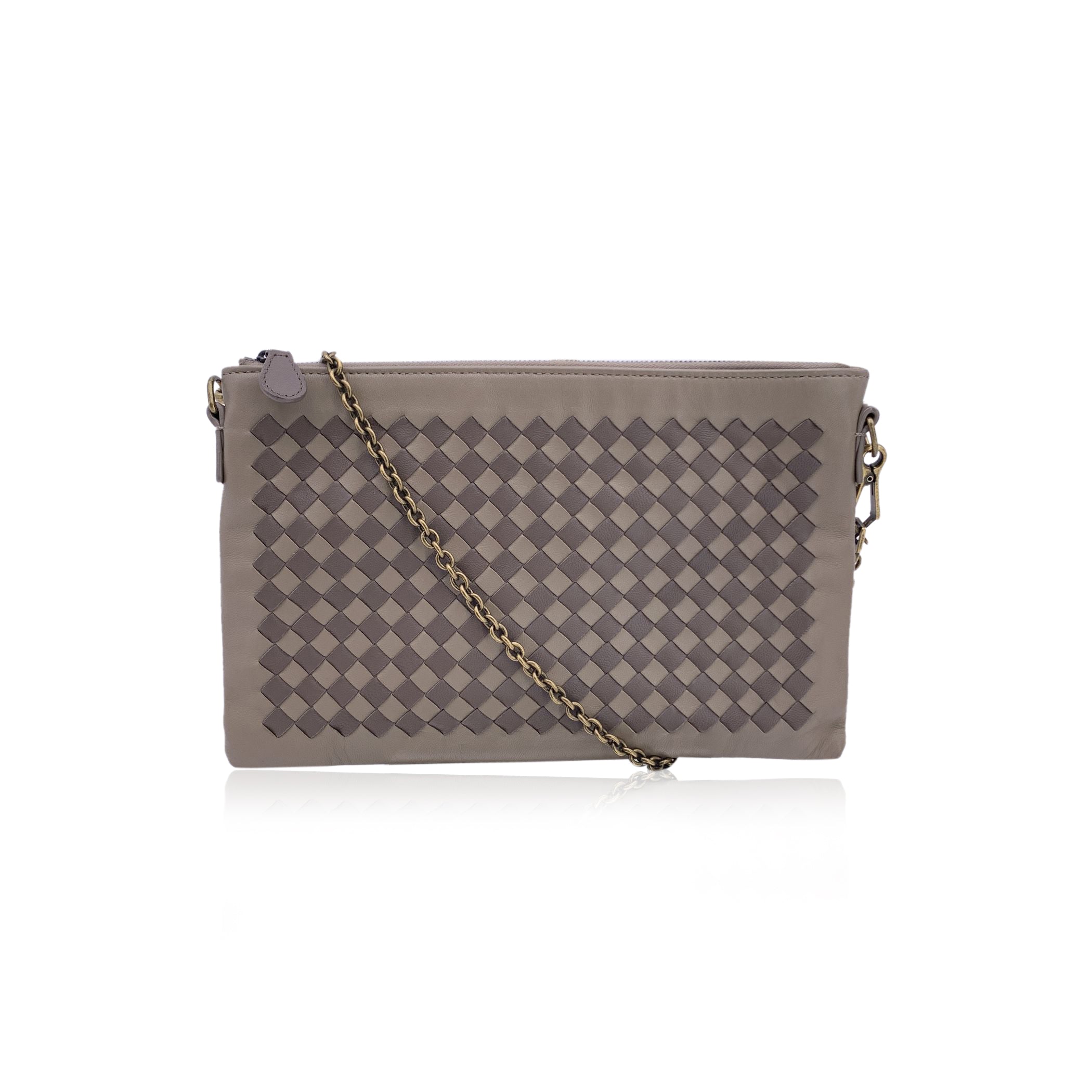 Elegant In Its Simplicity And Rich In Texture, This Bottega Veneta Taupe Leather Zip Pouch Bag Is a Refined Expression Of The House's Iconic Craftsmanship. The Front Features Bottega's Signature Intrecciato Woven Leather, a Tactile Nod To Artisanal Tradition, Contrasted Beautifully By The Smooth Leather Body. The Bag Opens With a Sleek Upper Zipper Closure, Revealing a Plush Brown Suede Interior Thoughtfully Designed With Six Open Side Pockets And One Larger Slip Pocket-perfectly Organized For Essentials. A Removable Gold-tone Chain Strap Adds a Touch Of Versatility And Understated Glamour. Inside, The 'Bottega Veneta - Made In Italy' Engraving Stands As a Quiet Testament To Its Heritage-proof That Timeless Design Never Shouts, It Whispers.