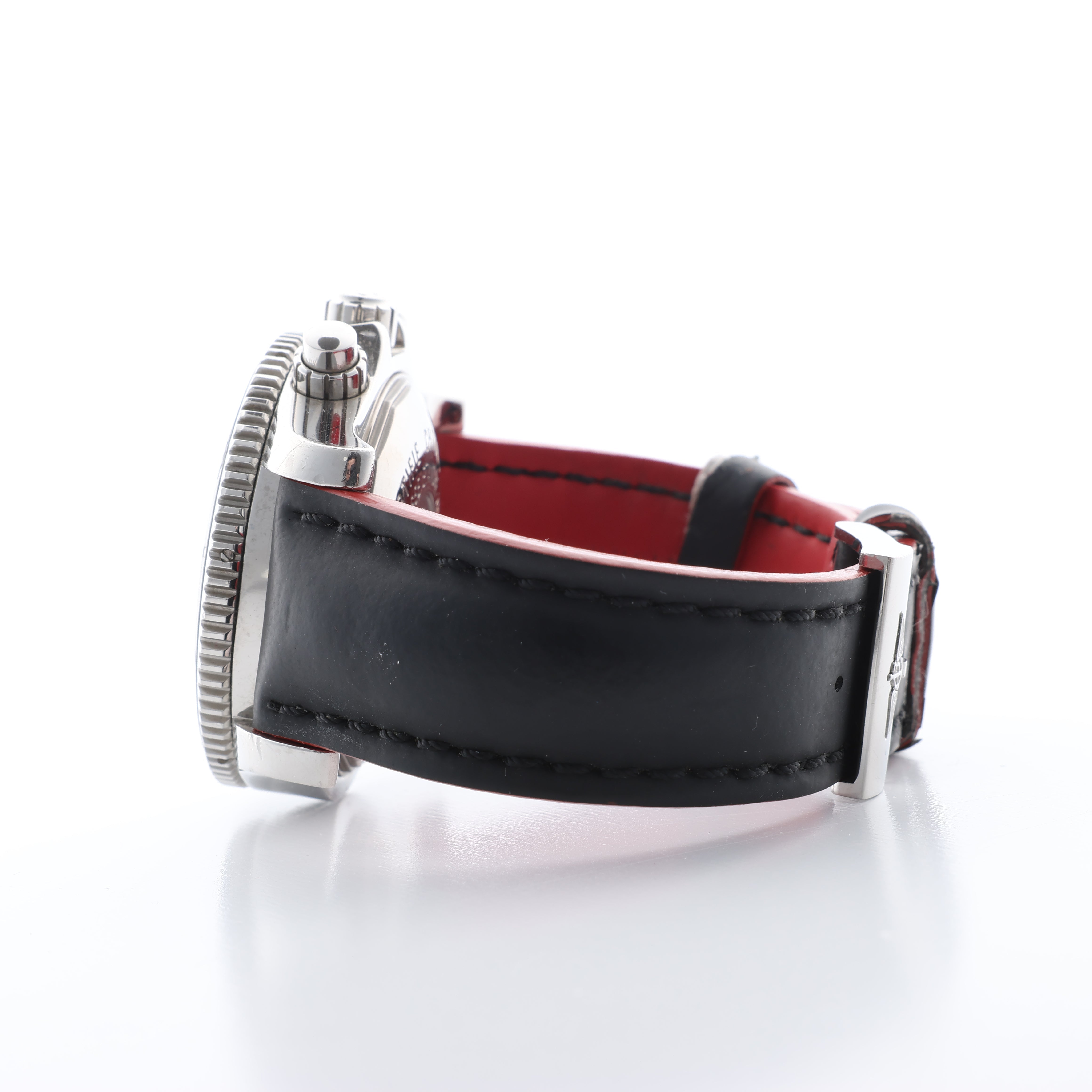 Brand: Breitling Model: SuperoceanReference: A73310 Condition: ExcellentCondition Details: In great condition with minor signs of wear as scratches on stainless steel and creases on strap. Has just been checked and serviced.Dial Colour: BlackCase Material: Stainless Steel Starp Colour: Black x RedStrap material: RubberMovement: QuartzFace Width: 46 mmApprox. max circumference: 195 mm Comes With: Original box, papers, certificate