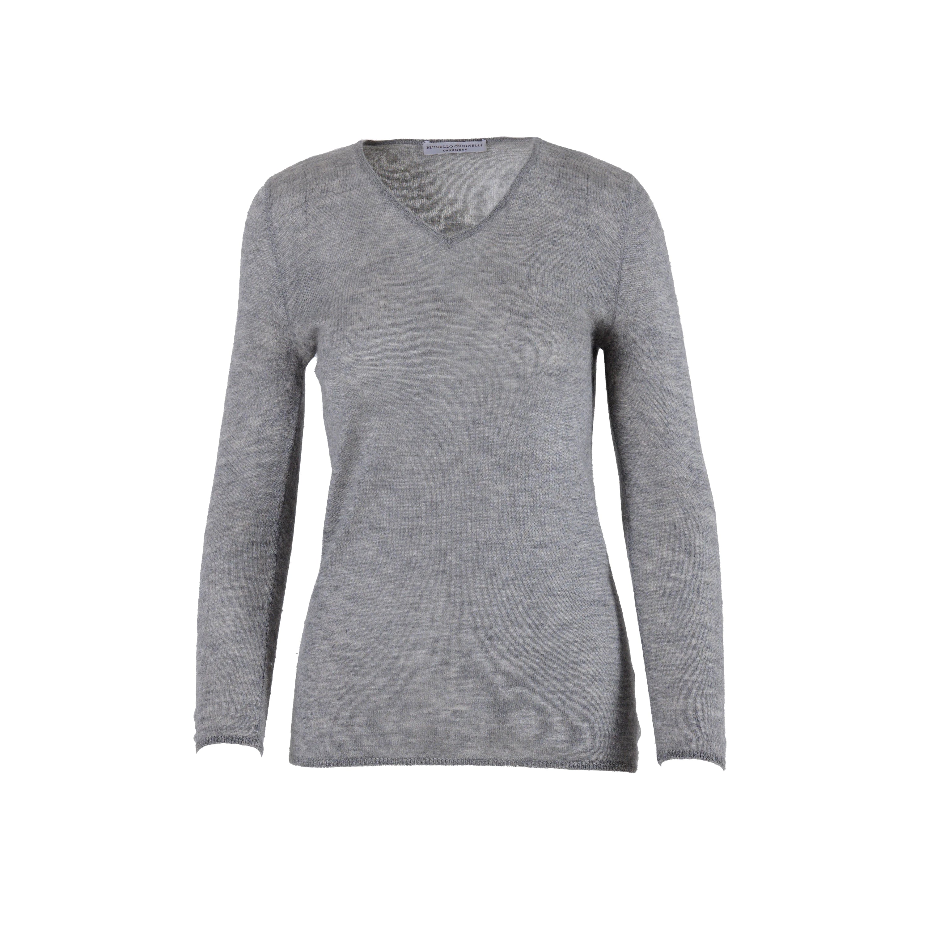 Secondhand Brunello Cucinelli Grey Cashmere V-Neck Sweater - '10s