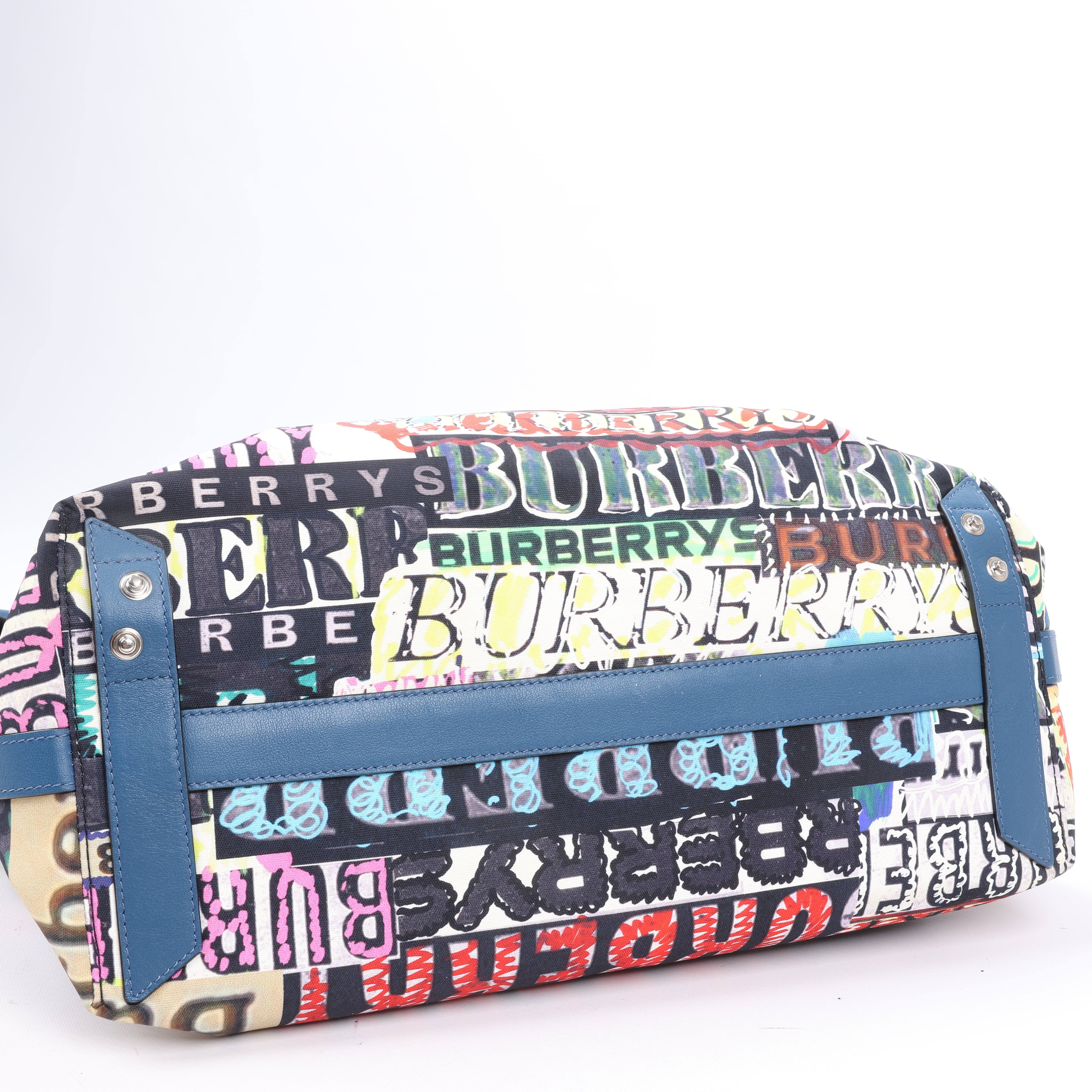 The Burberry Graffiti Logo Printed Messenger Bag Multicolor is a bold, statement accessory. Featuring a vibrant graffiti print with the iconic Burberry logo, it offers a spacious interior, adjustable strap, and front zip pocket, combining street-style edge with practical functionality.