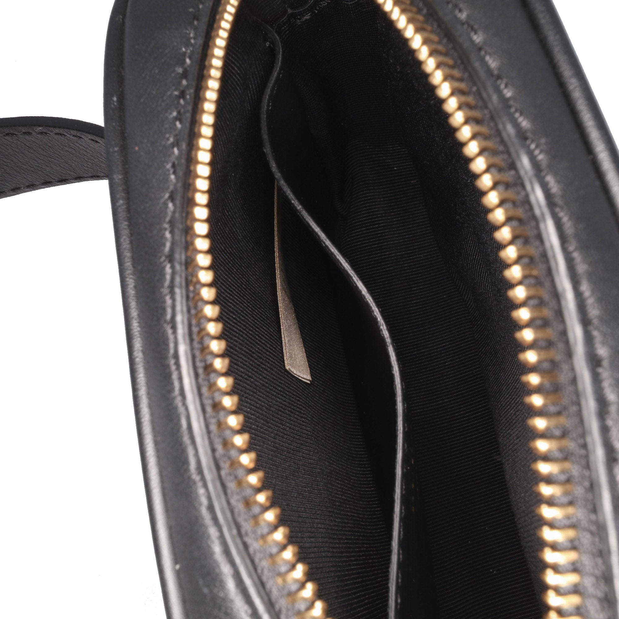 This belt bag features a canvas body with leather trim and gold tone hardware, a flat leather wrist strap, a detachable flat leather shoulder strap, a top zip closure, and an interior slip pocket. Inclusion: Dust bag. Retail Price: 725.00