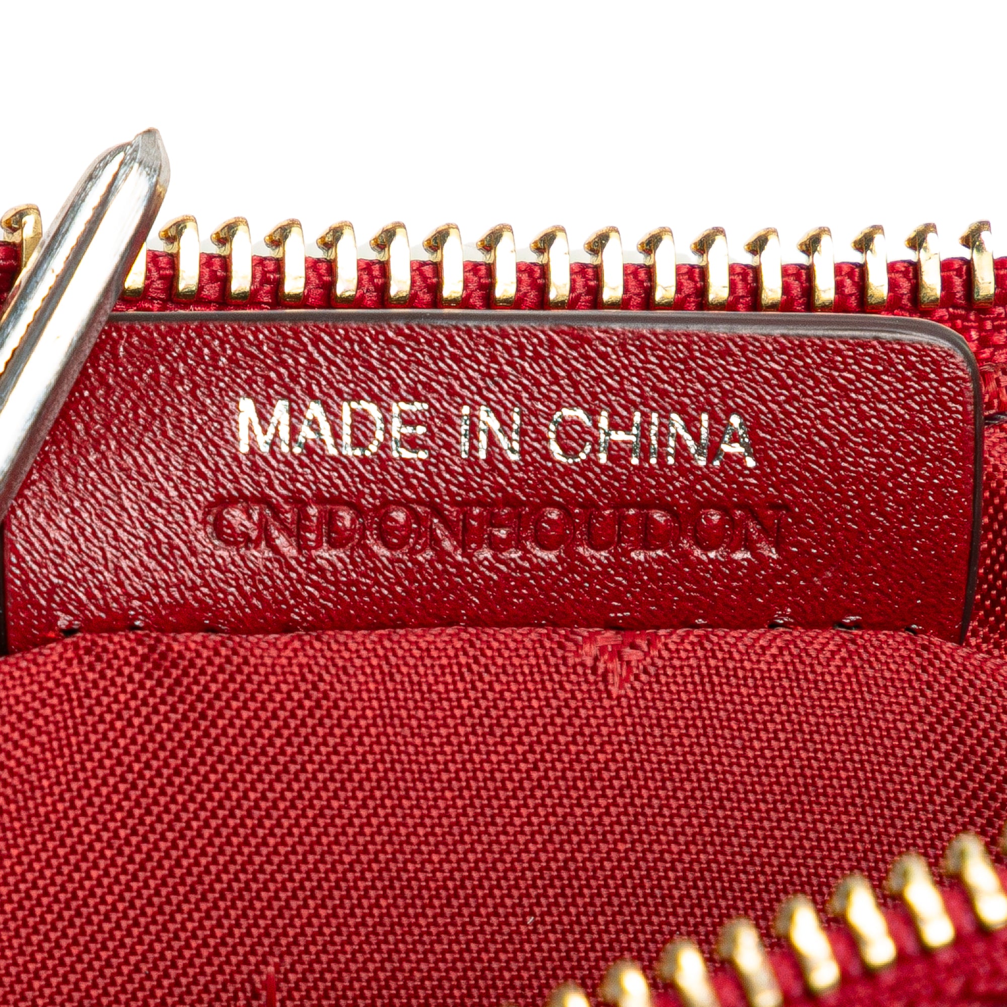 This crossbody features a haymarket check canvas body with leather trim, a detachable flat leather strap, and a top zip closure. Retail Price: 1295.00